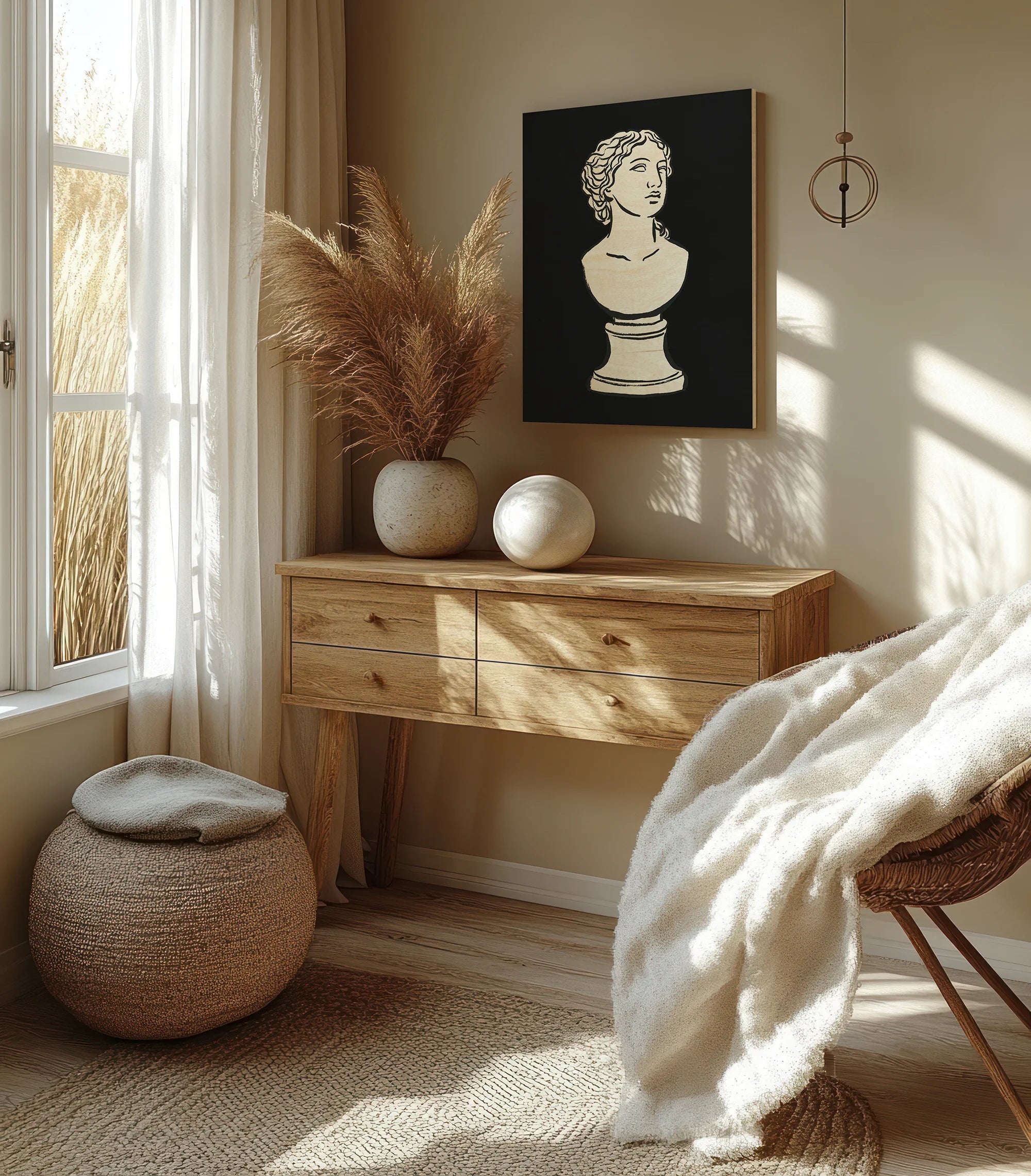 Greek Statuary I by Victoria Barnes is an abstract art print that adds depth and warmth to contemporary home décor. A versatile statement piece, perfect for living spaces, bedrooms, or creative interiors. Printed on premium 12mm Italian Poplar Plywood – finished & printed in Britain.