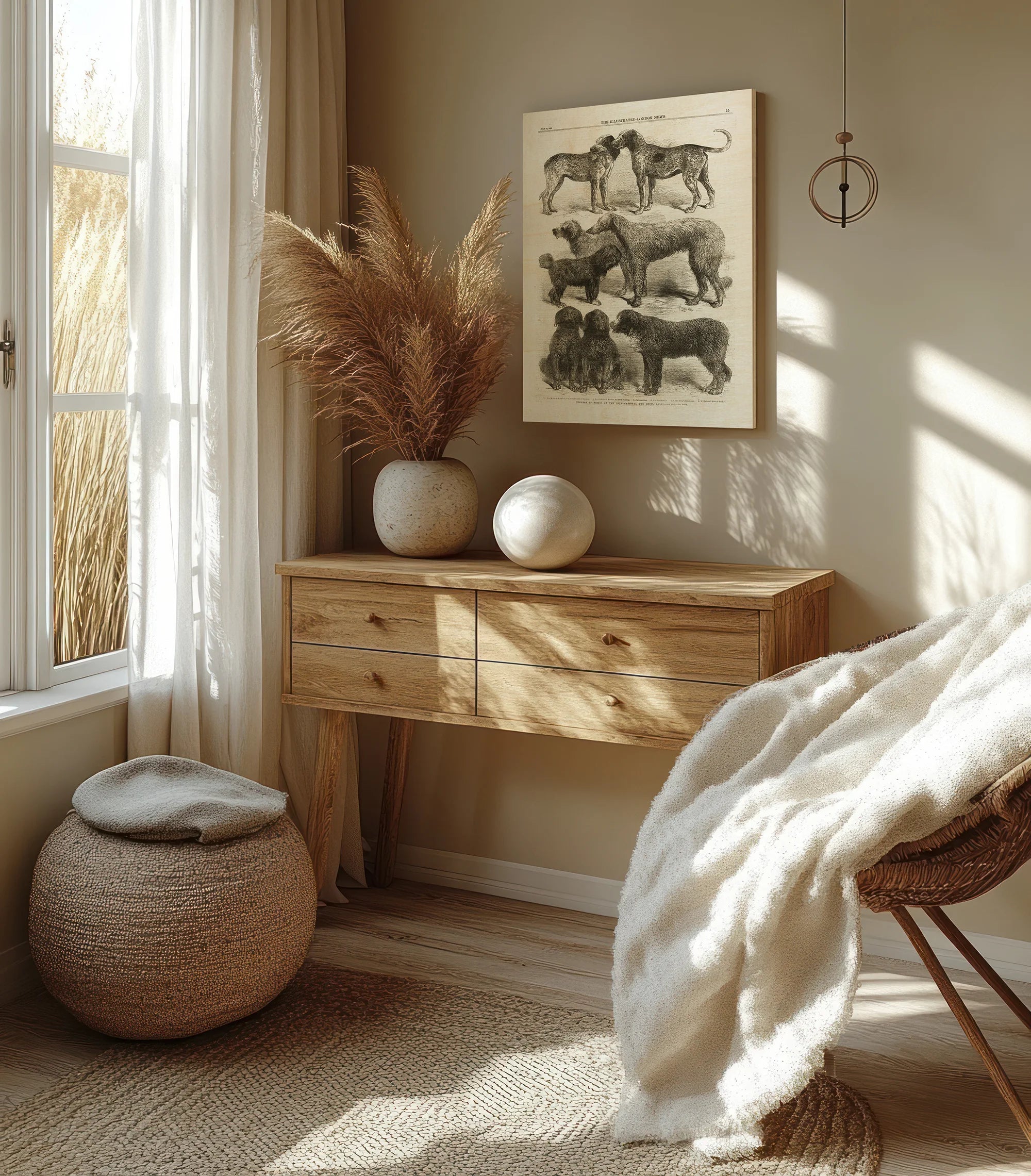 International Dog Show II by Vision Studio is an abstract art print that adds depth and warmth to contemporary home décor. A versatile statement piece, perfect for living spaces, bedrooms, or creative interiors. Printed on premium 12mm Italian Poplar Plywood – finished & printed in Britain.