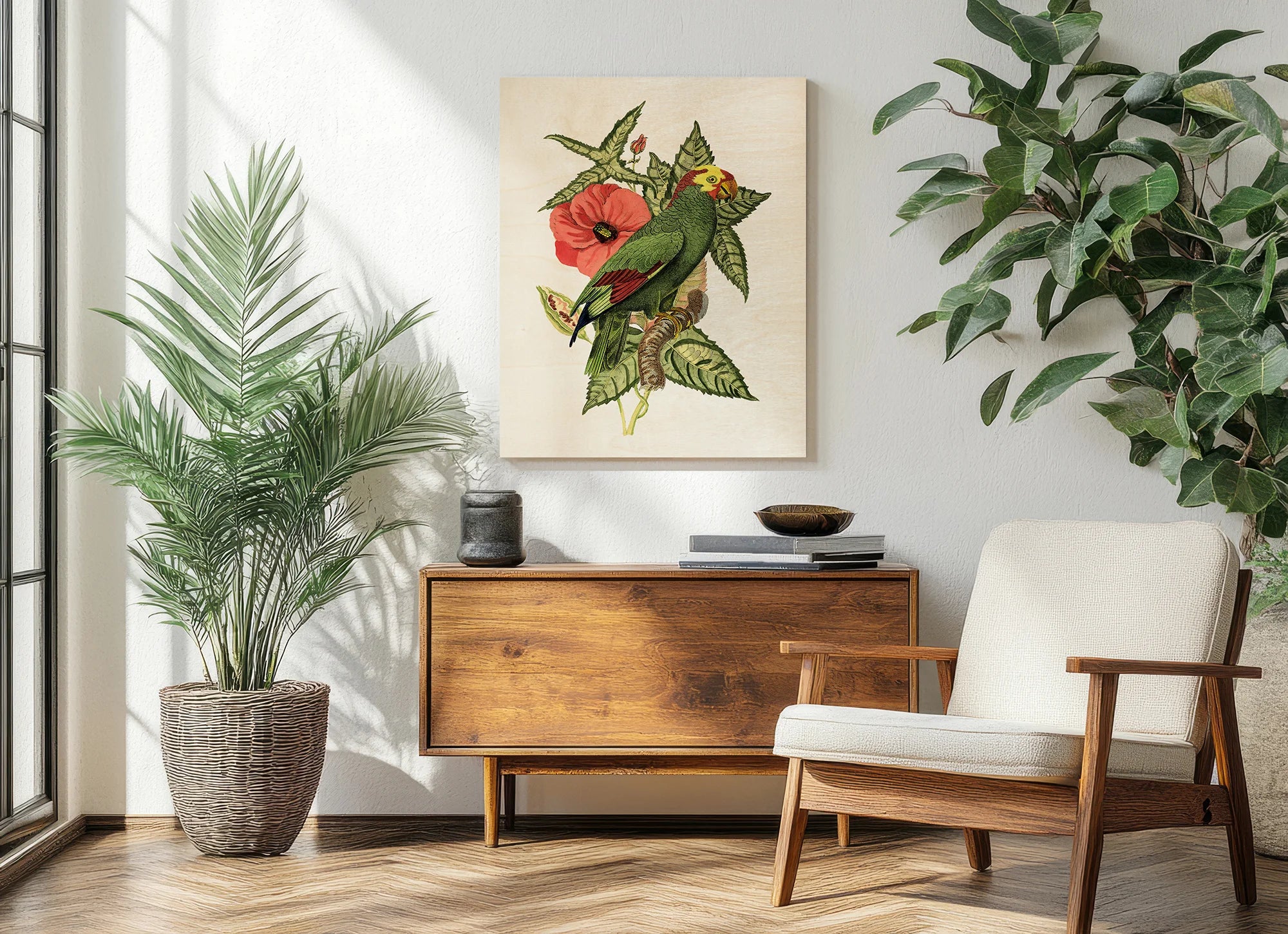 Tropical Birds and Botanicals I by Vision Studio is an abstract art print that adds depth and warmth to contemporary home décor. A versatile statement piece, perfect for living spaces, bedrooms, or creative interiors. Printed on premium 12mm Italian Poplar Plywood – finished & printed in Britain.