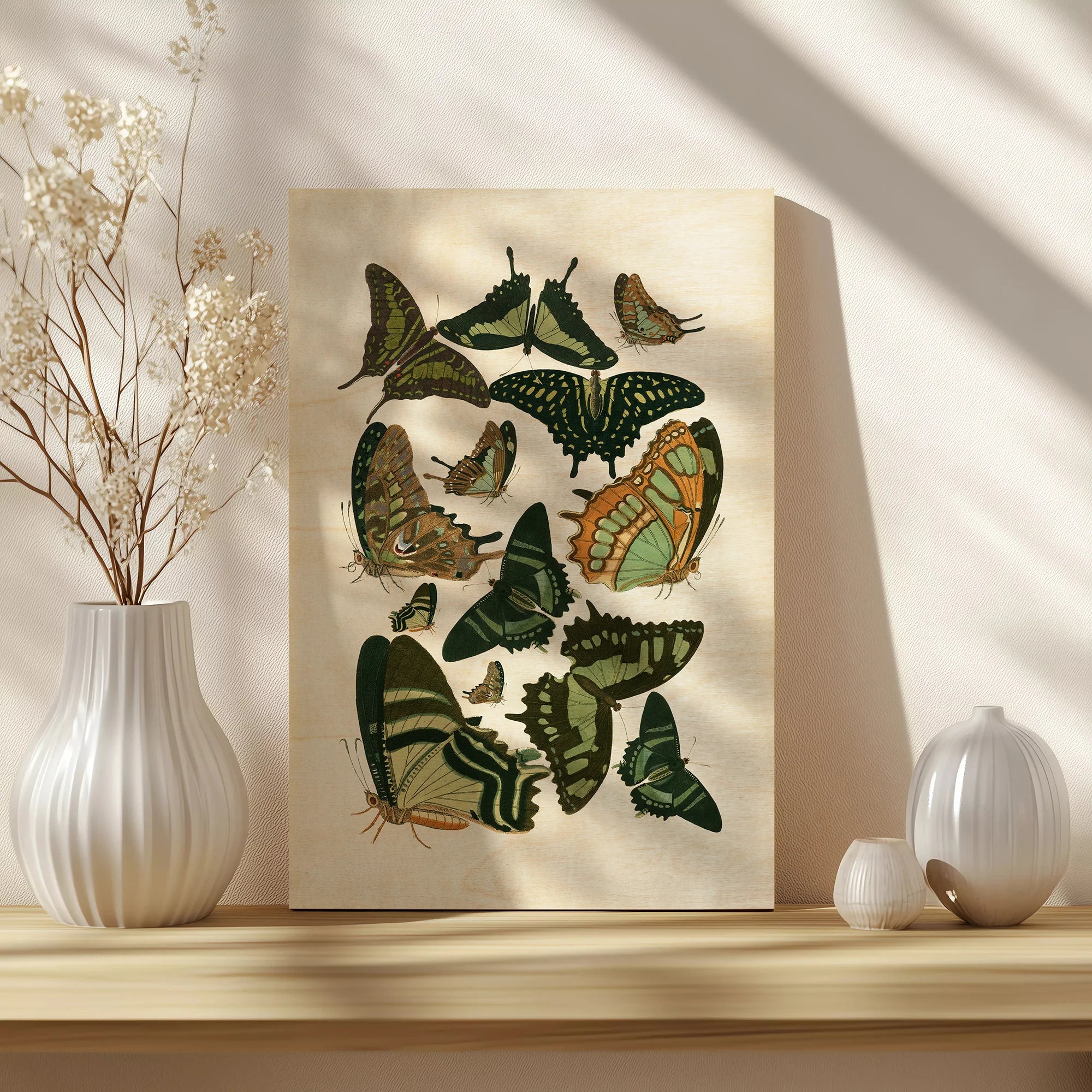 Green Butterfly Study by Vision Studio is an abstract art print that adds depth and warmth to contemporary home décor. A versatile statement piece, perfect for living spaces, bedrooms, or creative interiors. Printed on premium 12mm Italian Poplar Plywood – finished & printed in Britain.
