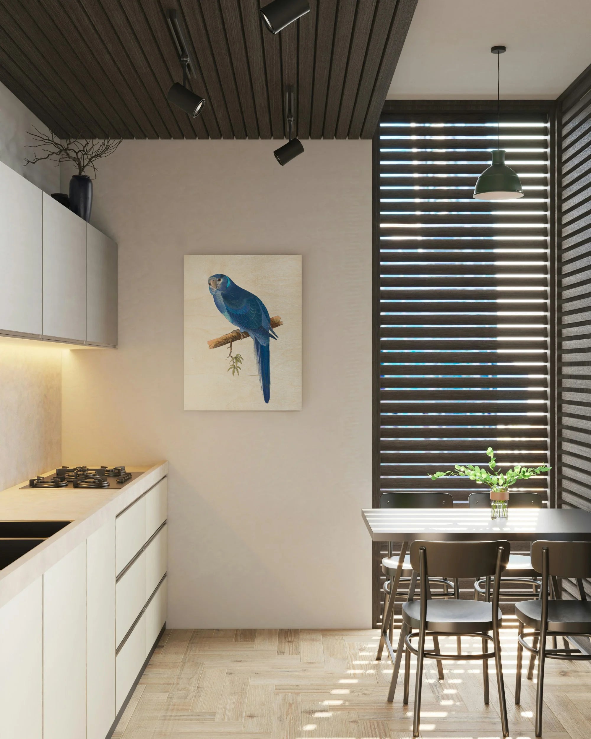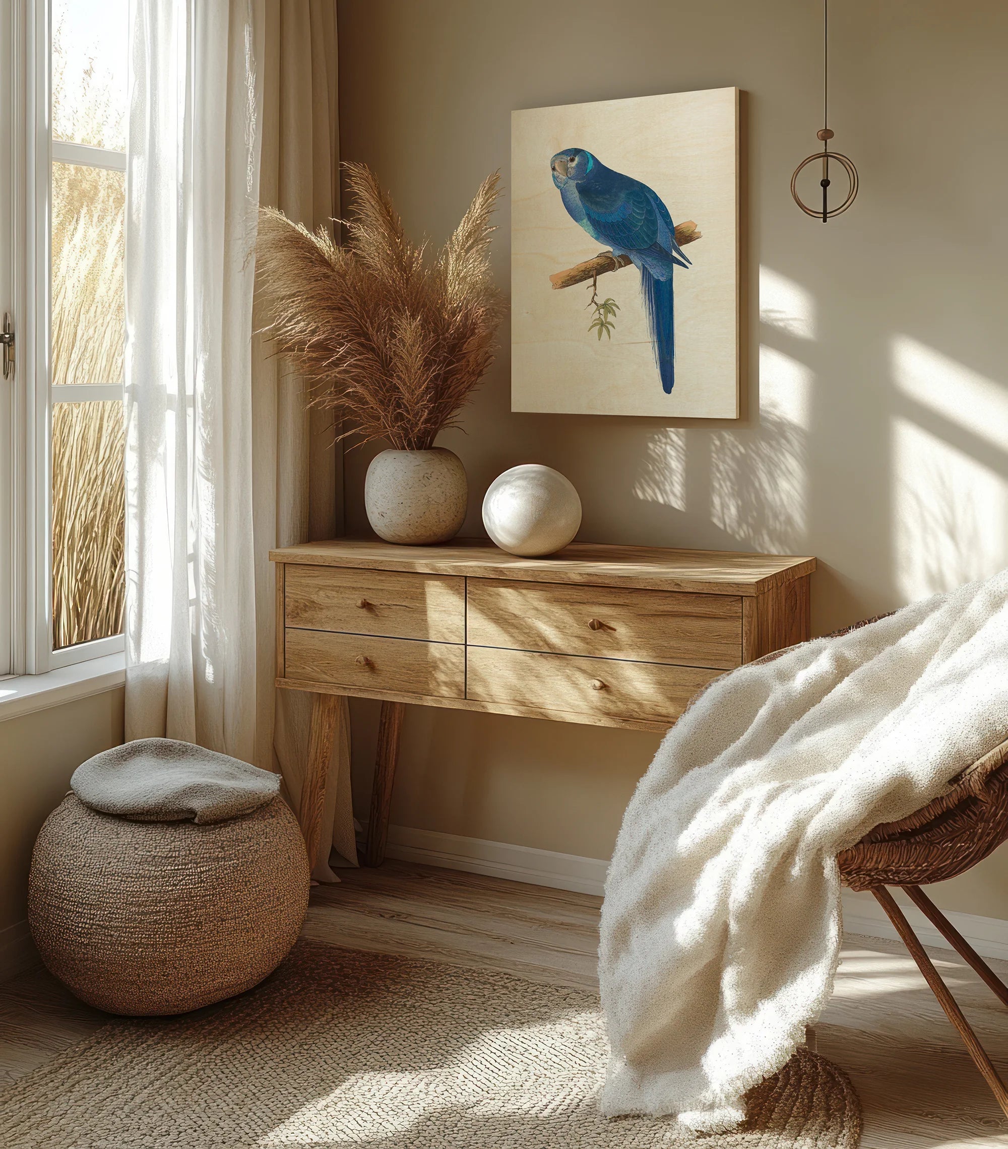Blue Parrots II by Vision Studio is an abstract art print that adds depth and warmth to contemporary home décor. A versatile statement piece, perfect for living spaces, bedrooms, or creative interiors. Printed on premium 12mm Italian Poplar Plywood – finished & printed in Britain.