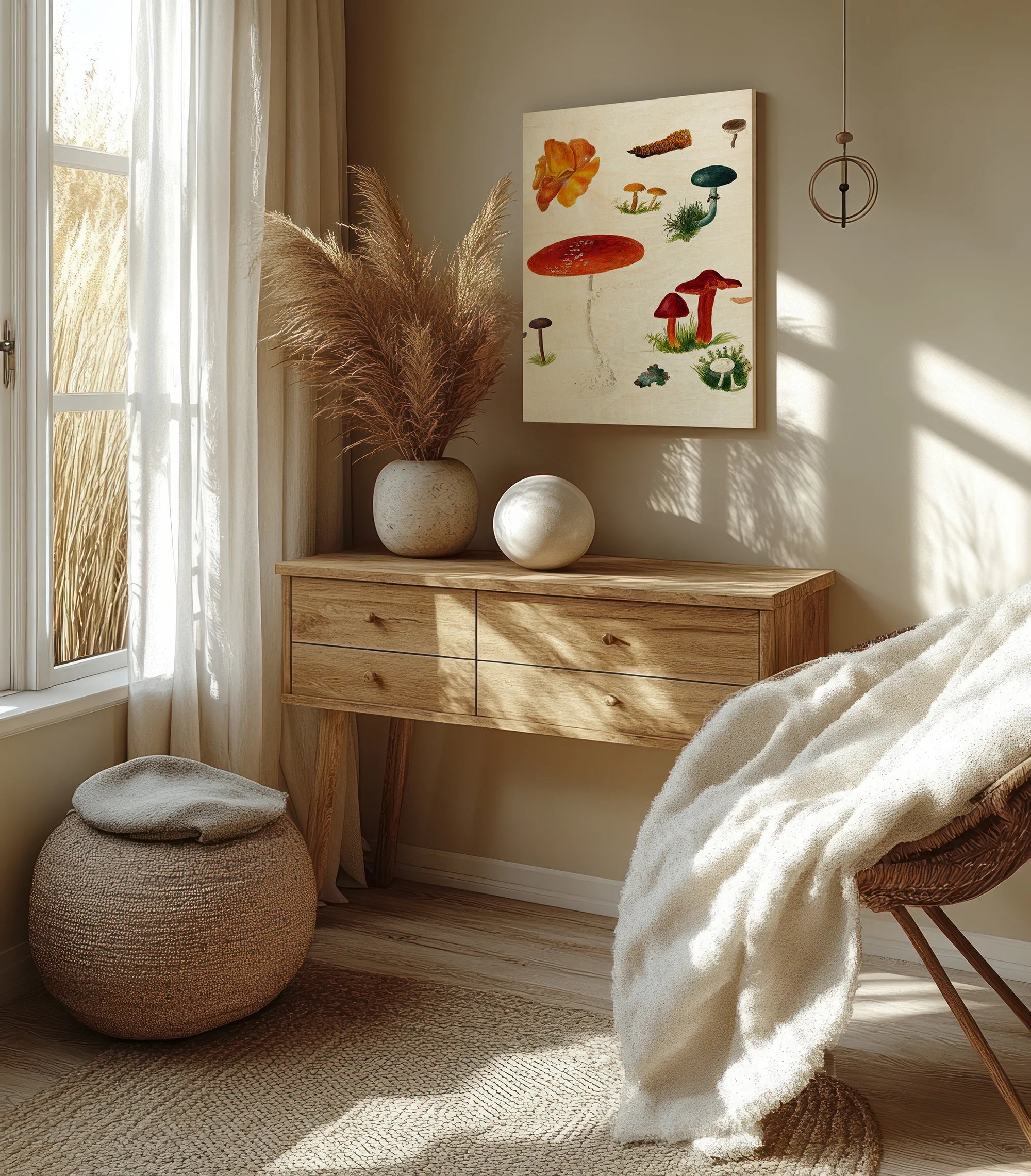Mushroom Species VIII by Vision Studio is an abstract art print that adds depth and warmth to contemporary home décor. A versatile statement piece, perfect for living spaces, bedrooms, or creative interiors. Printed on premium 12mm Italian Poplar Plywood – finished & printed in Britain.