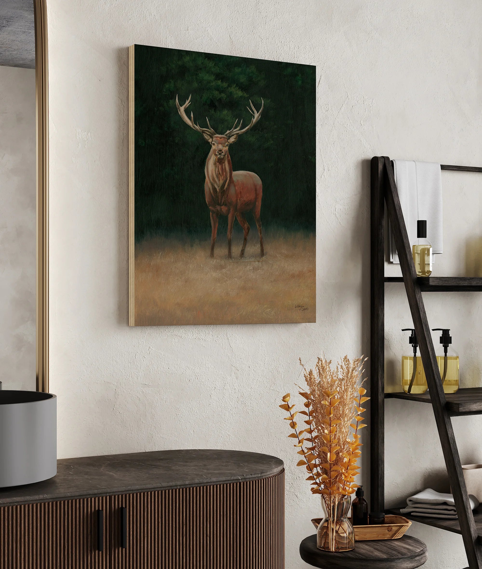 Stag Print by Wellington Studio is an abstract art print that adds depth and warmth to contemporary home décor. A versatile statement piece, perfect for living spaces, bedrooms, or creative interiors. Printed on premium 12mm Italian Poplar Plywood – finished & printed in Britain.
