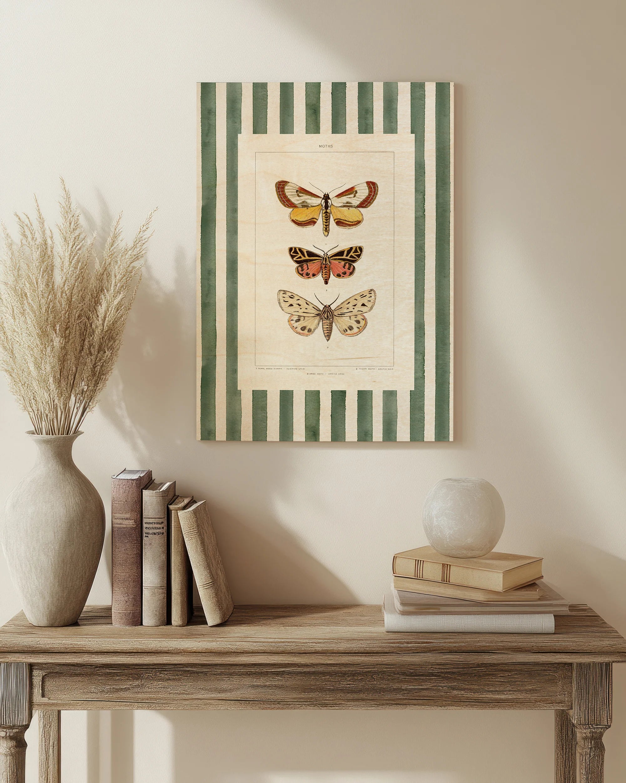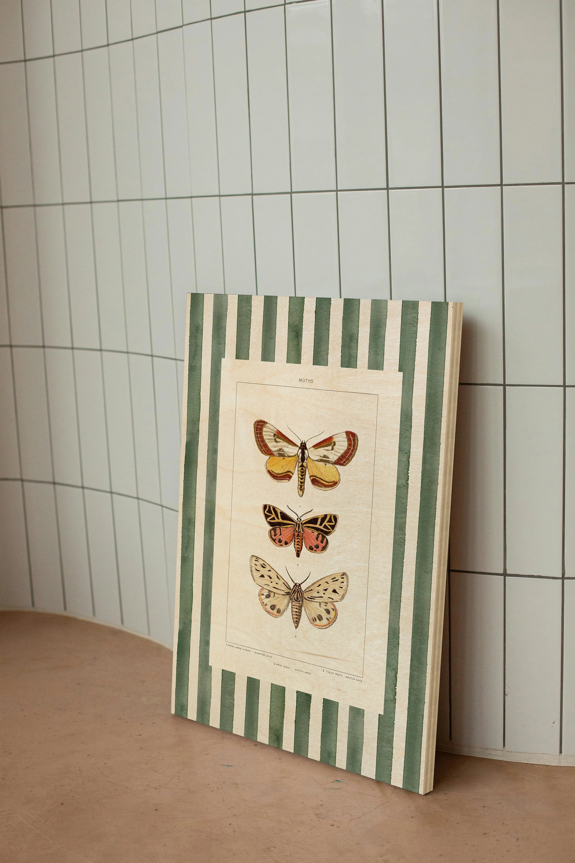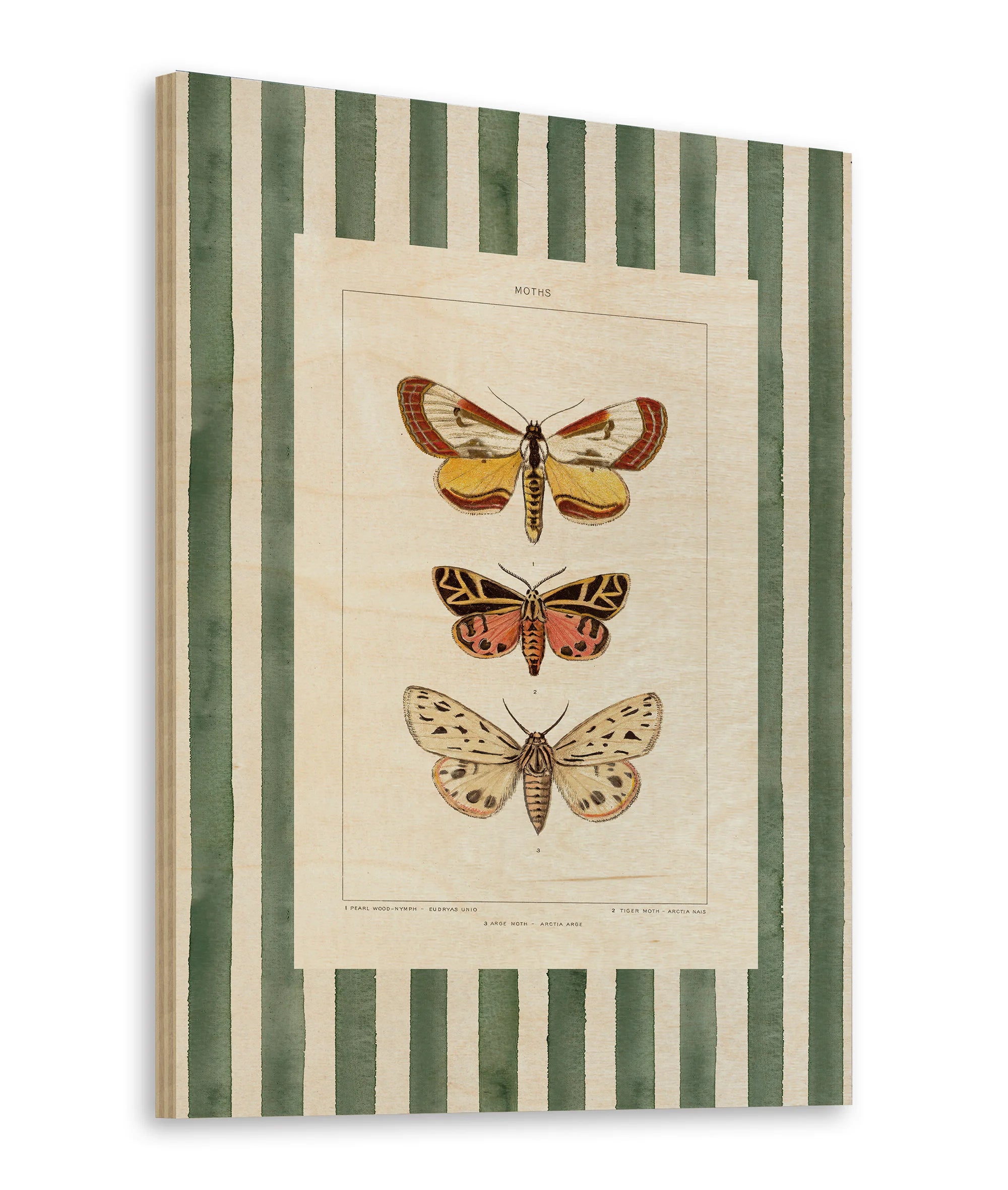 Vintage Moths Stripe II Print by Wild Apple Portfolio is an abstract art print that adds depth and warmth to contemporary home décor. A versatile statement piece, perfect for living spaces, bedrooms, or creative interiors. Printed on premium 12mm Italian Poplar Plywood – finished & printed in Britain.