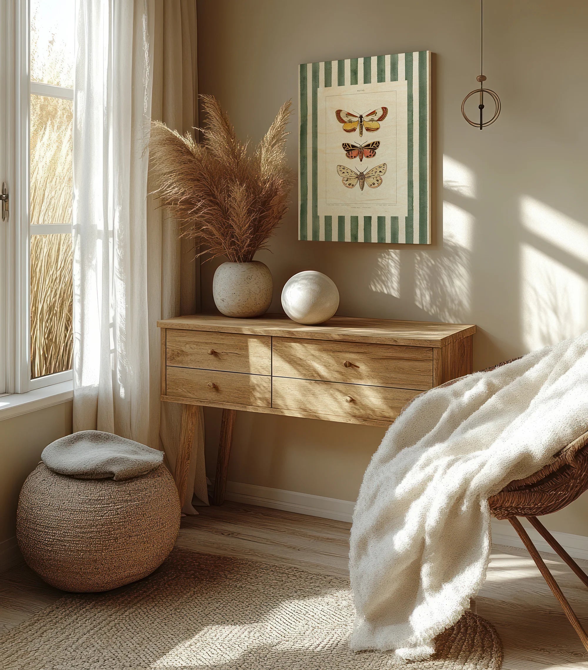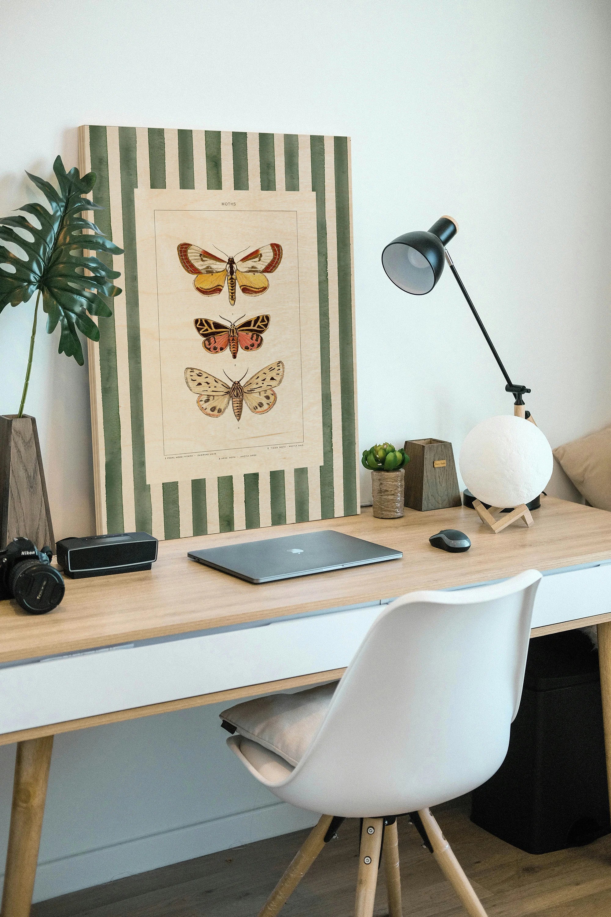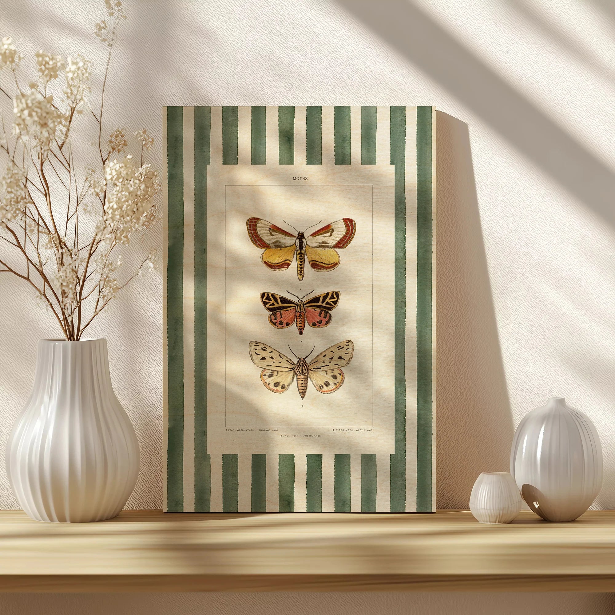 Vintage Moths Stripe II Print by Wild Apple Portfolio is an abstract art print that adds depth and warmth to contemporary home décor. A versatile statement piece, perfect for living spaces, bedrooms, or creative interiors. Printed on premium 12mm Italian Poplar Plywood – finished & printed in Britain.