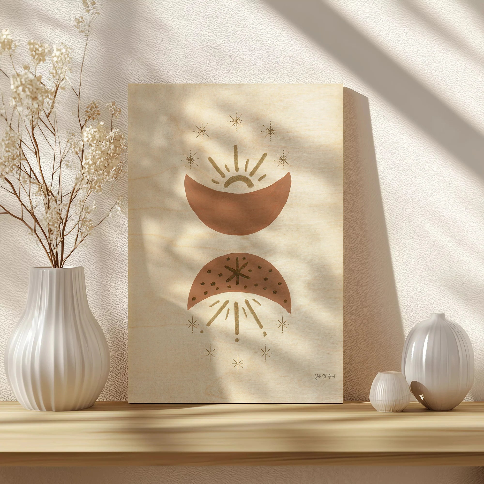 Serene Moon and Sun Beams Print by Yvette St. Amant is an abstract art print that adds depth and warmth to contemporary home décor. A versatile statement piece, perfect for living spaces, bedrooms, or creative interiors. Printed on premium 12mm Italian Poplar Plywood – finished & printed in Britain.