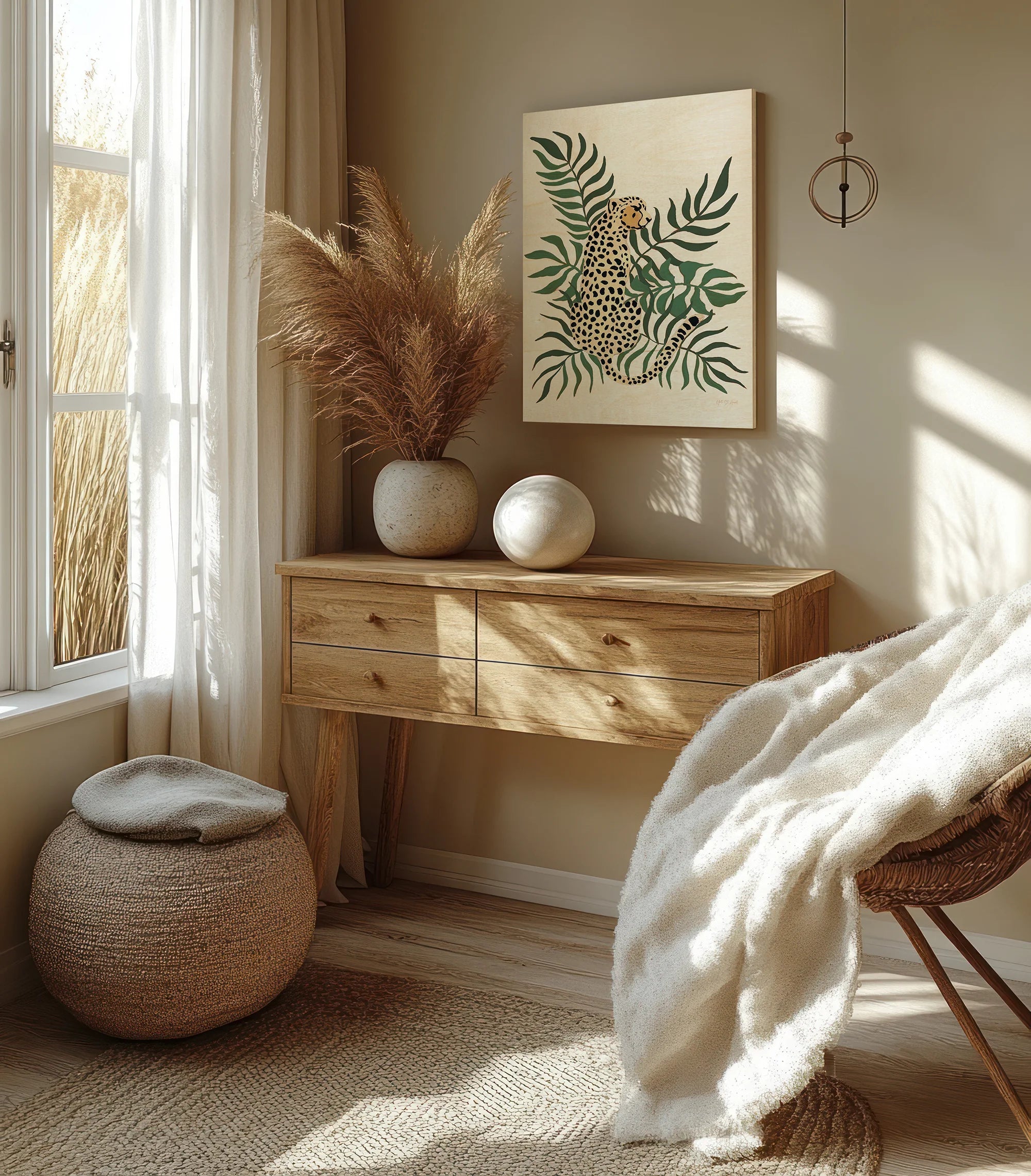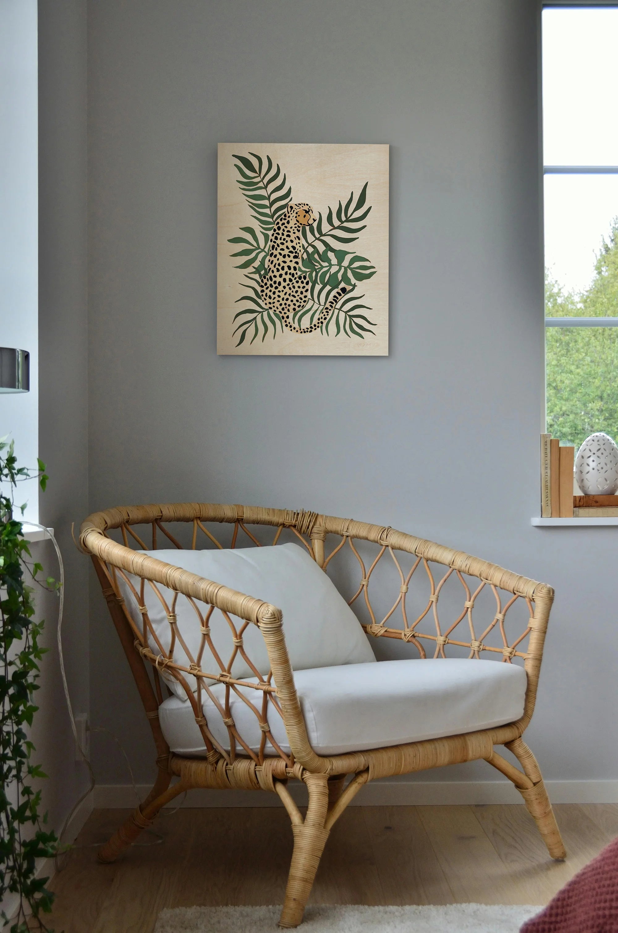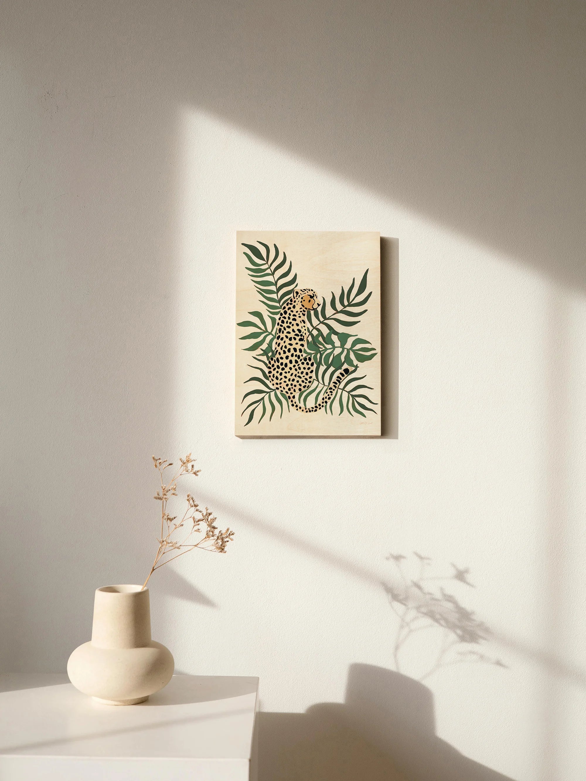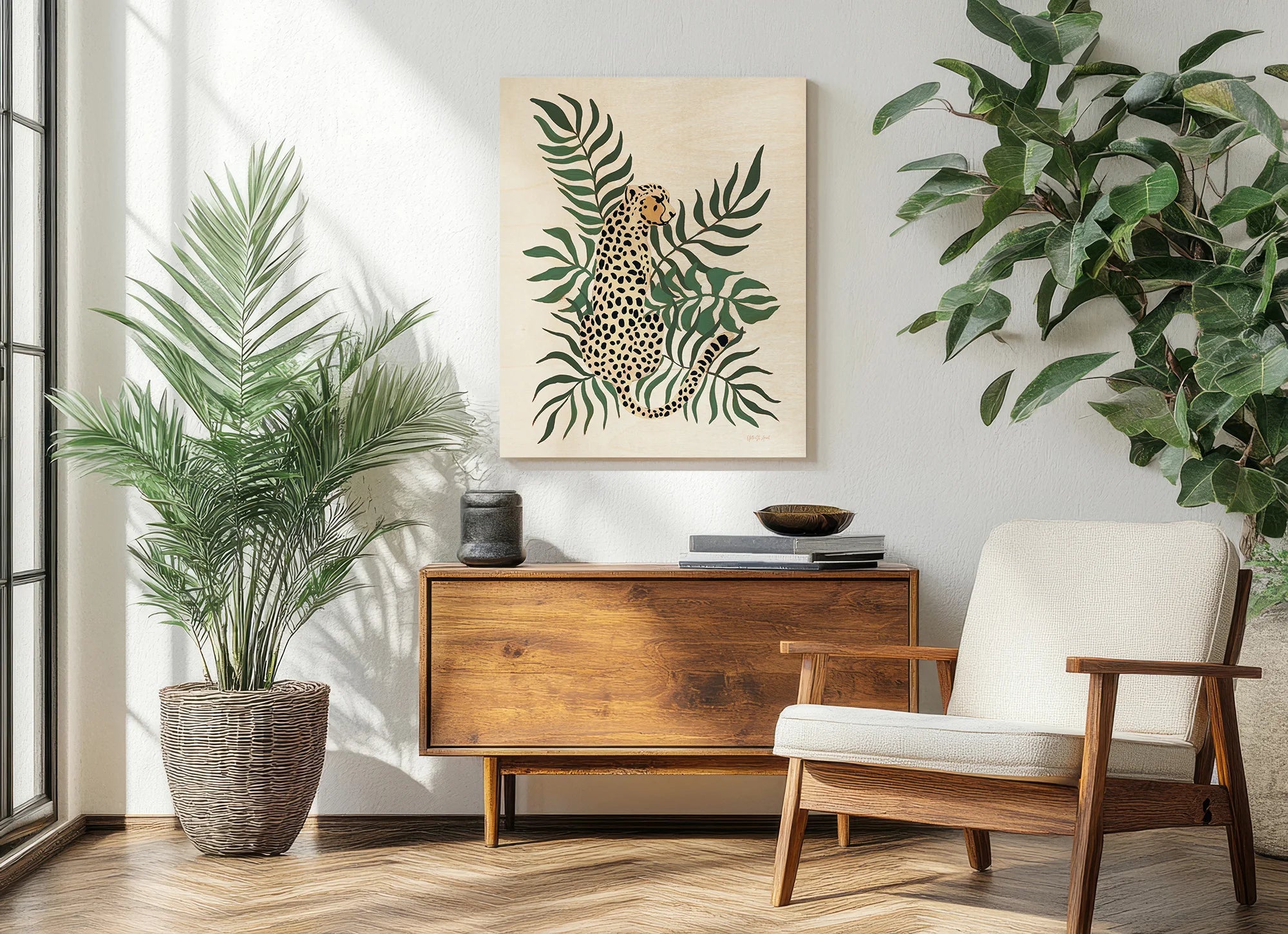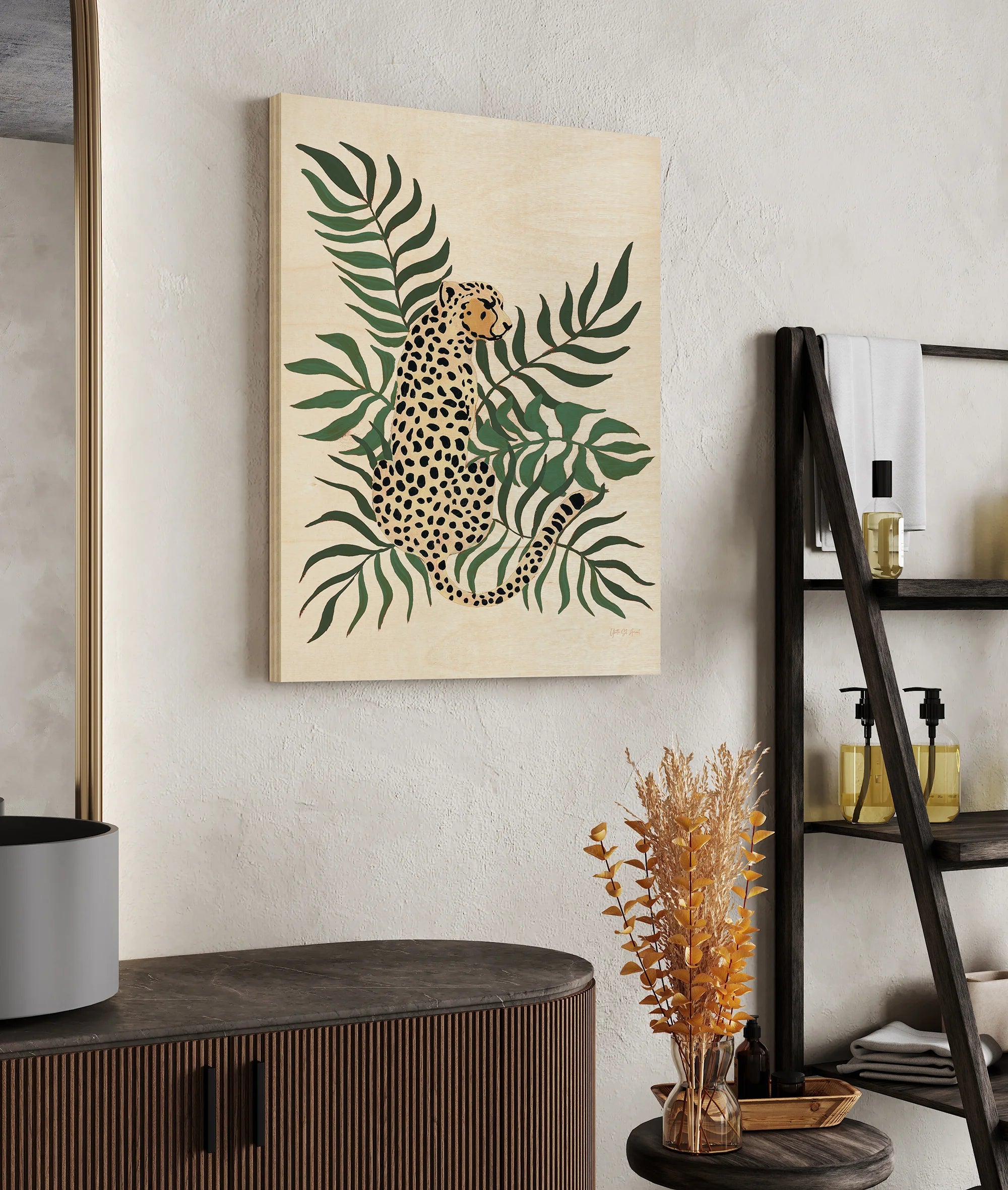 Sitting Cheetah Cream Print by Yvette St. Amant is an abstract art print that adds depth and warmth to contemporary home décor. A versatile statement piece, perfect for living spaces, bedrooms, or creative interiors. Printed on premium 12mm Italian Poplar Plywood – finished & printed in Britain.