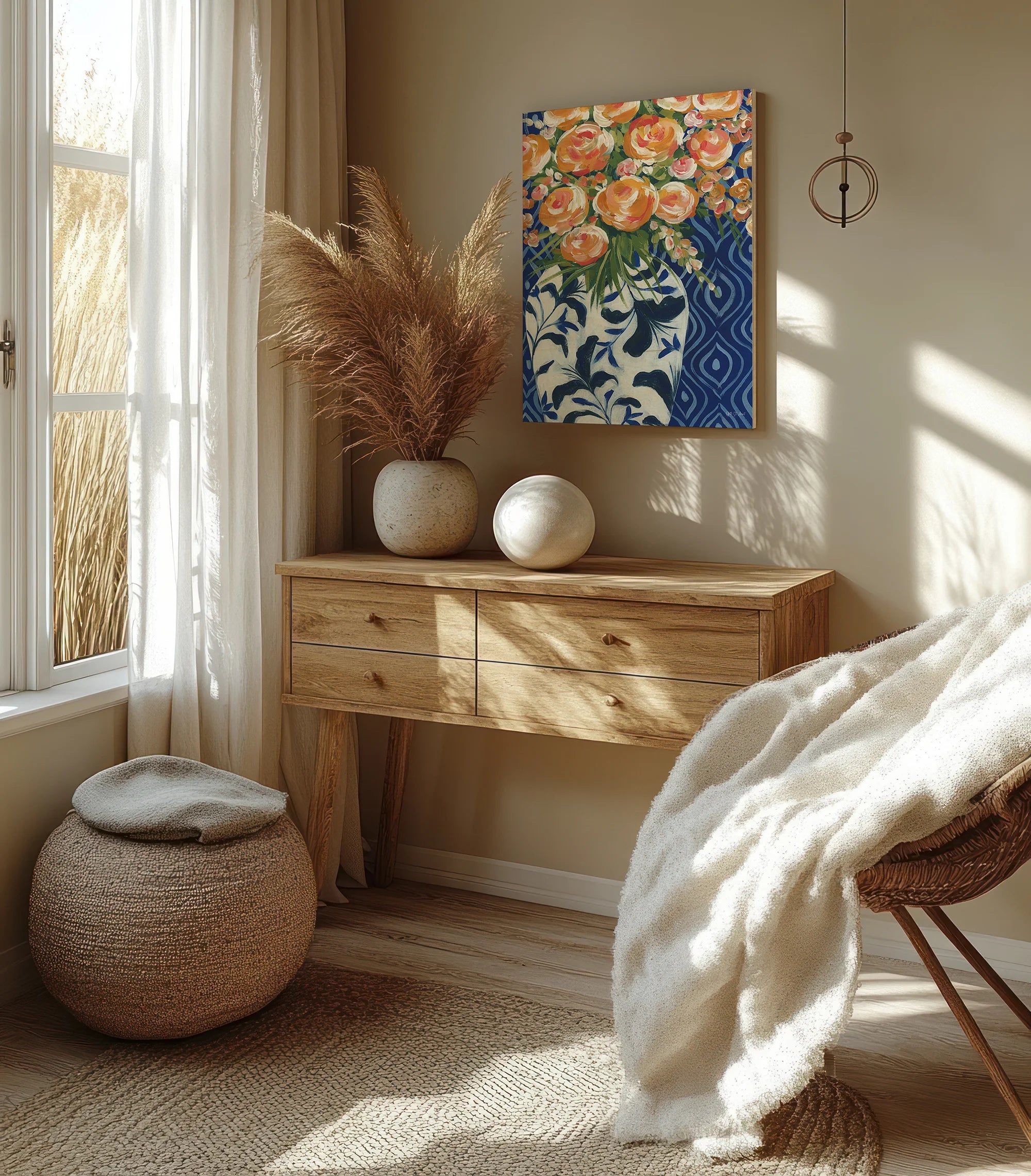 Mediterranean Blooms II Print by Yvette St. Amant is an abstract art print that adds depth and warmth to contemporary home décor. A versatile statement piece, perfect for living spaces, bedrooms, or creative interiors. Printed on premium 12mm Italian Poplar Plywood – finished & printed in Britain.