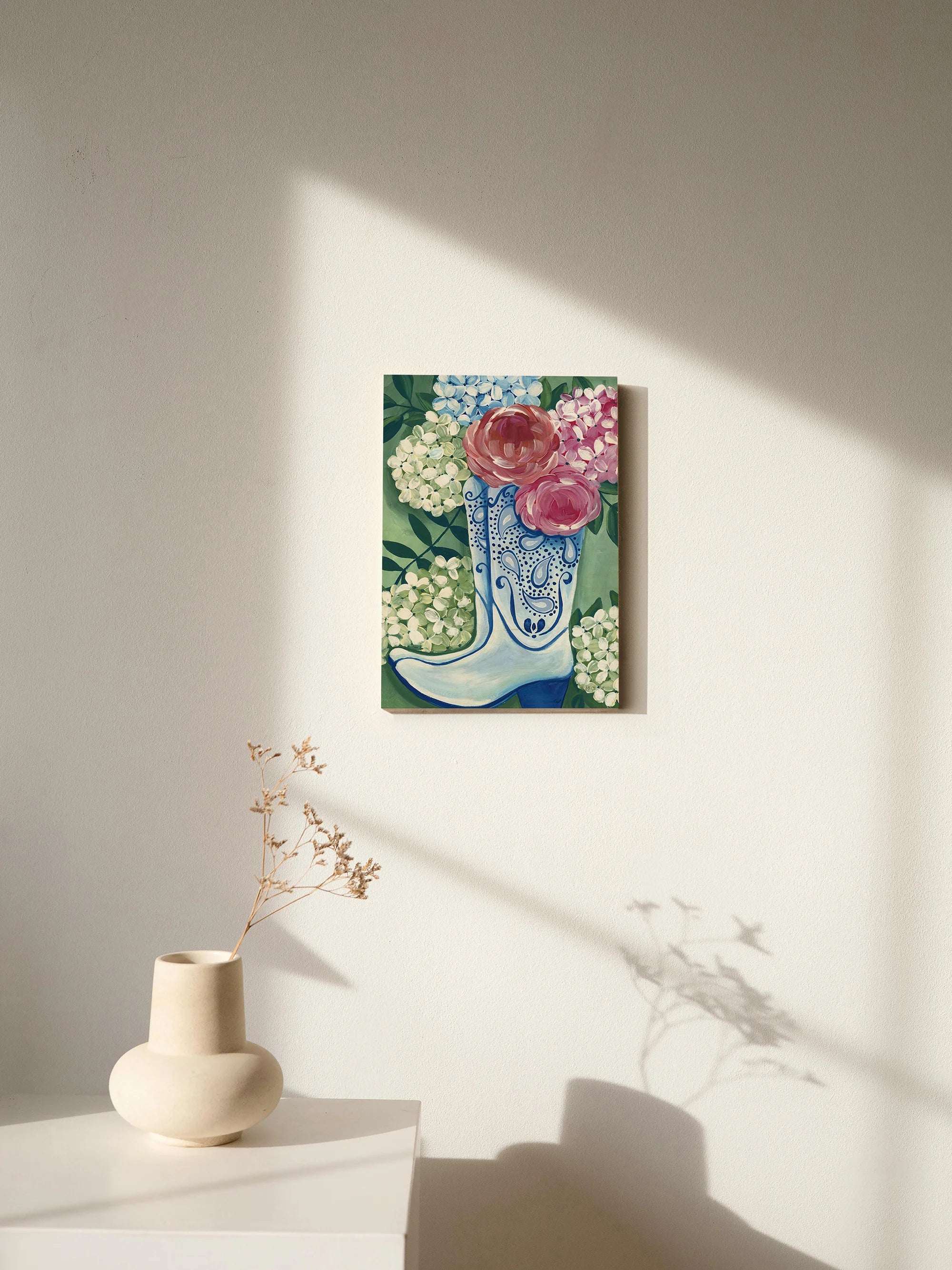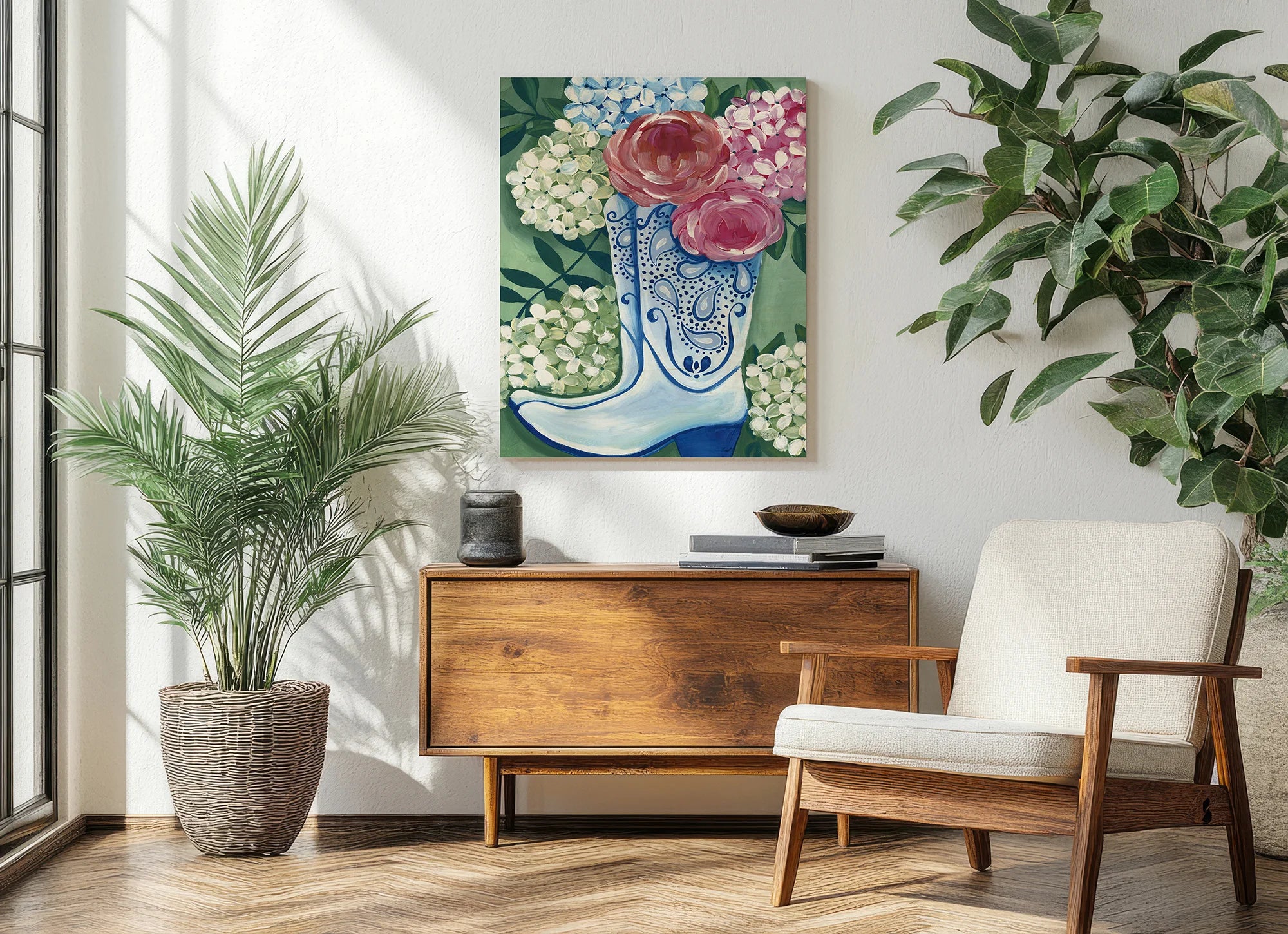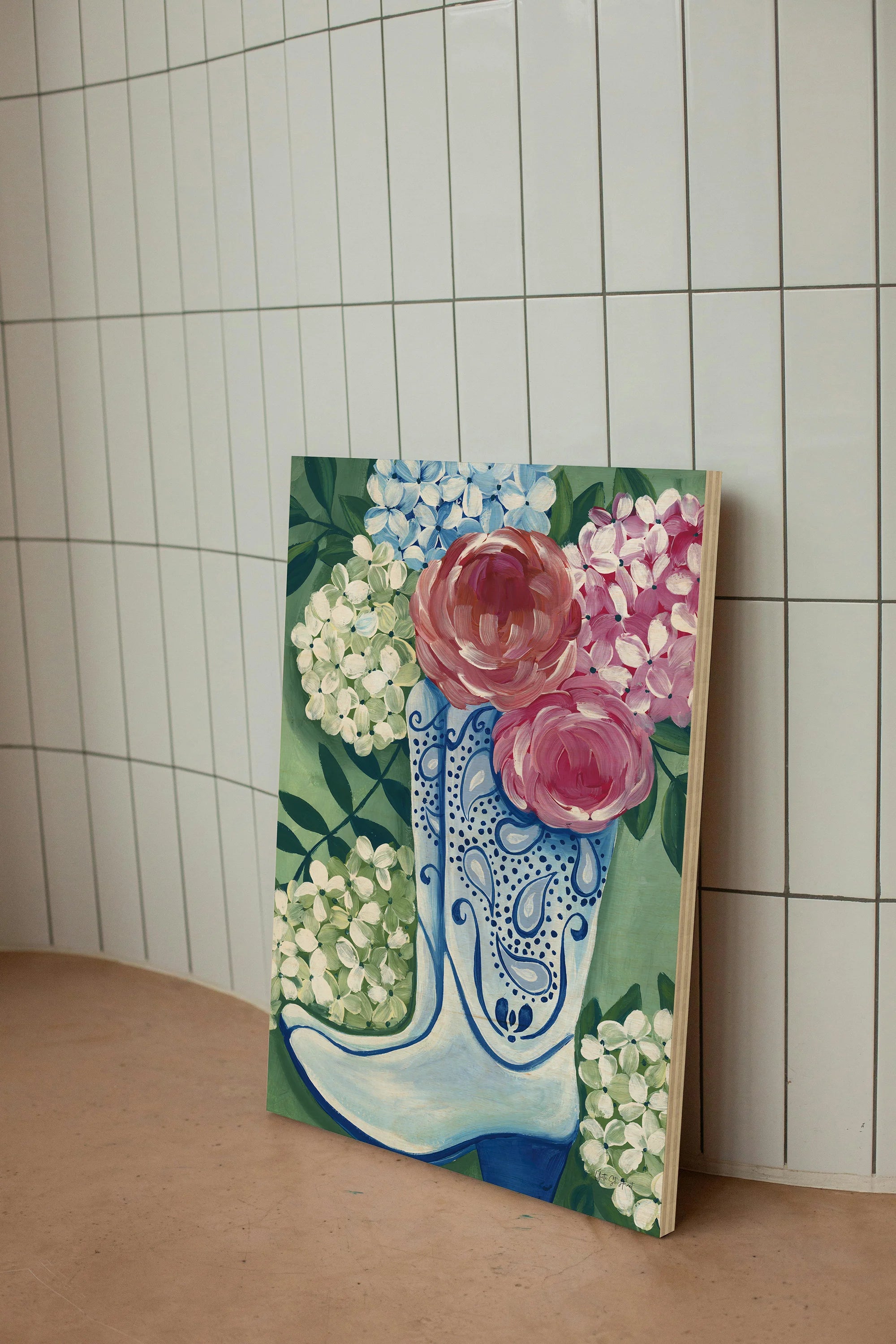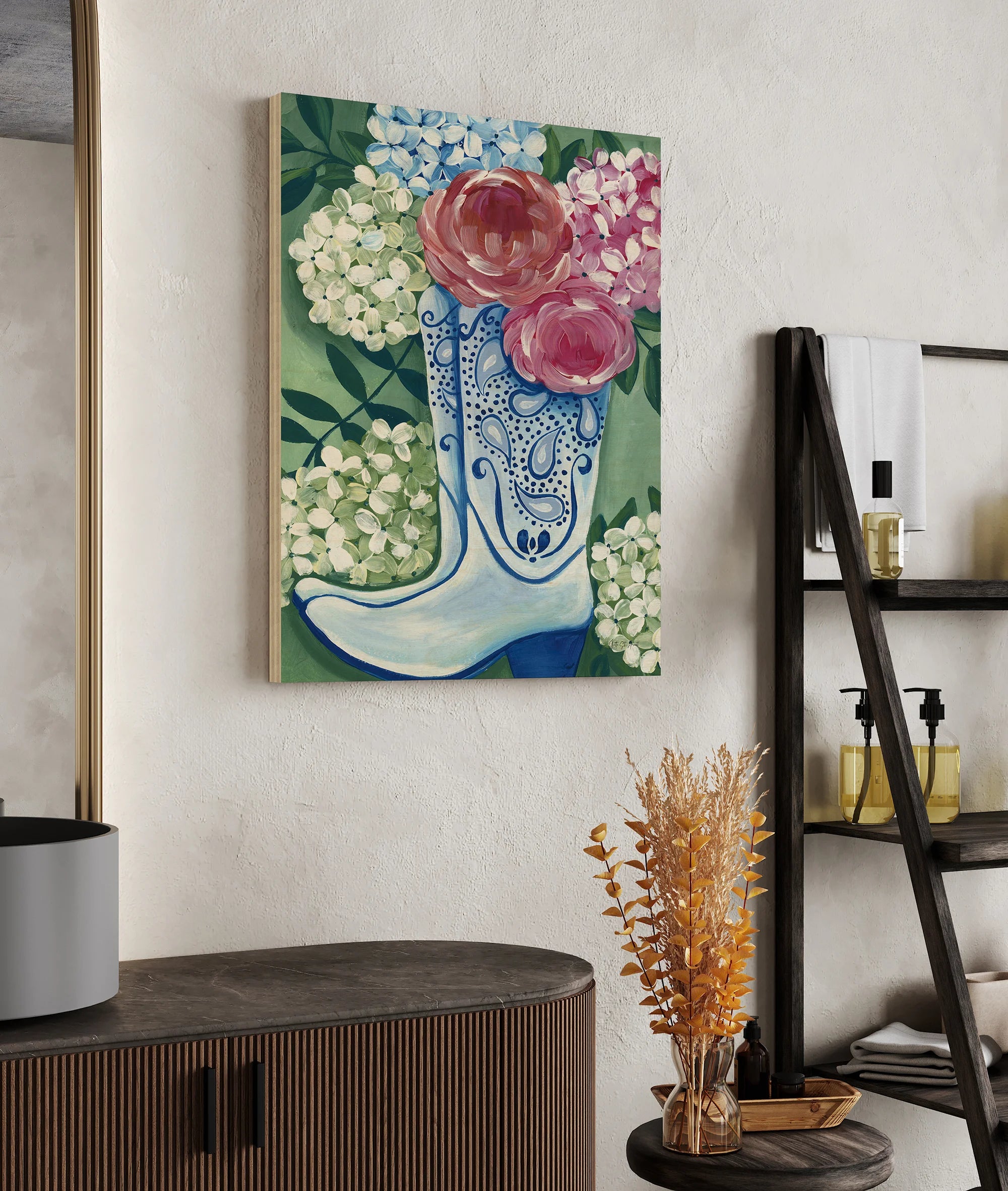 Southern Belle Cowgirl Boots Print by Yvette St. Amant is an abstract art print that adds depth and warmth to contemporary home décor. A versatile statement piece, perfect for living spaces, bedrooms, or creative interiors. Printed on premium 12mm Italian Poplar Plywood – finished & printed in Britain.