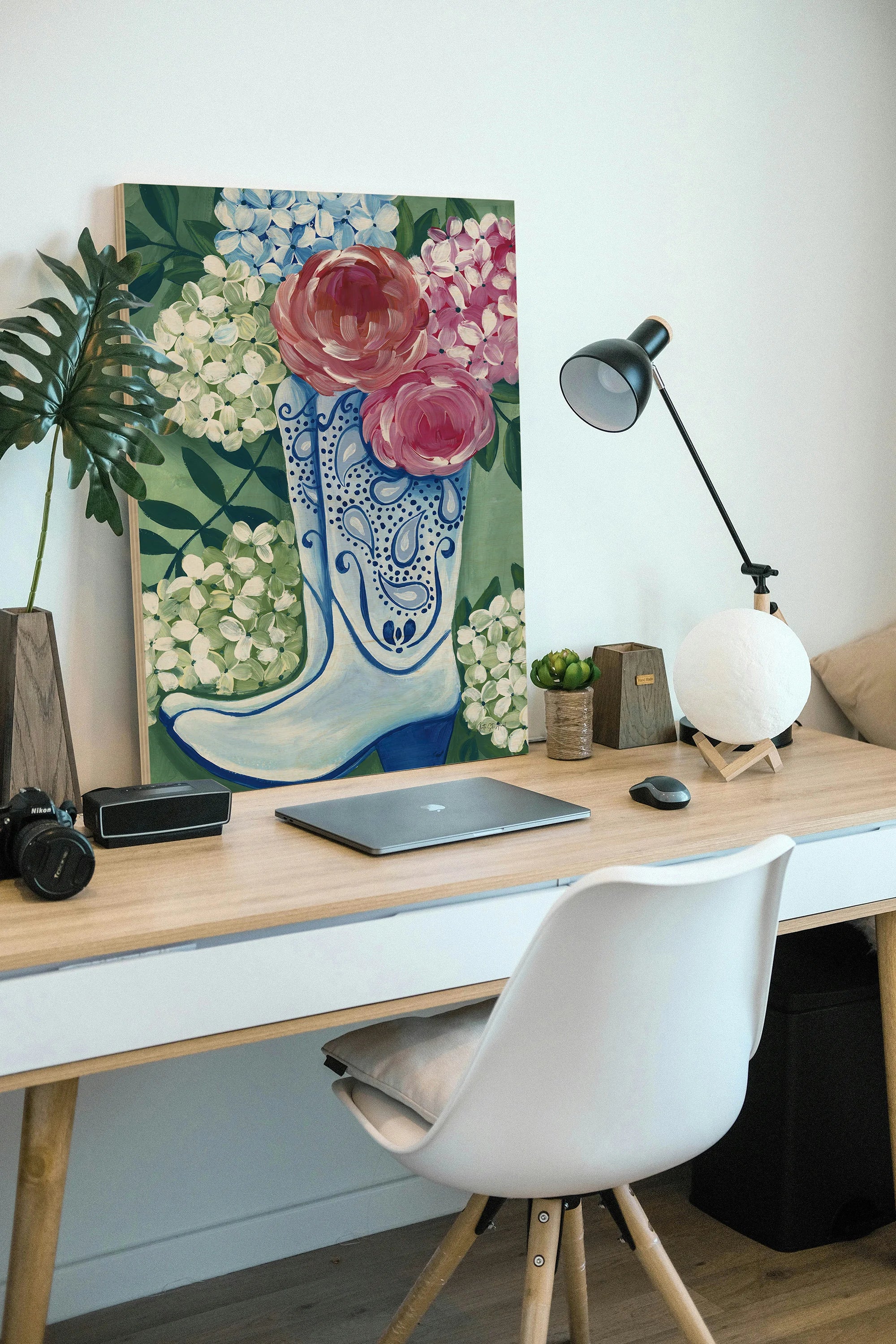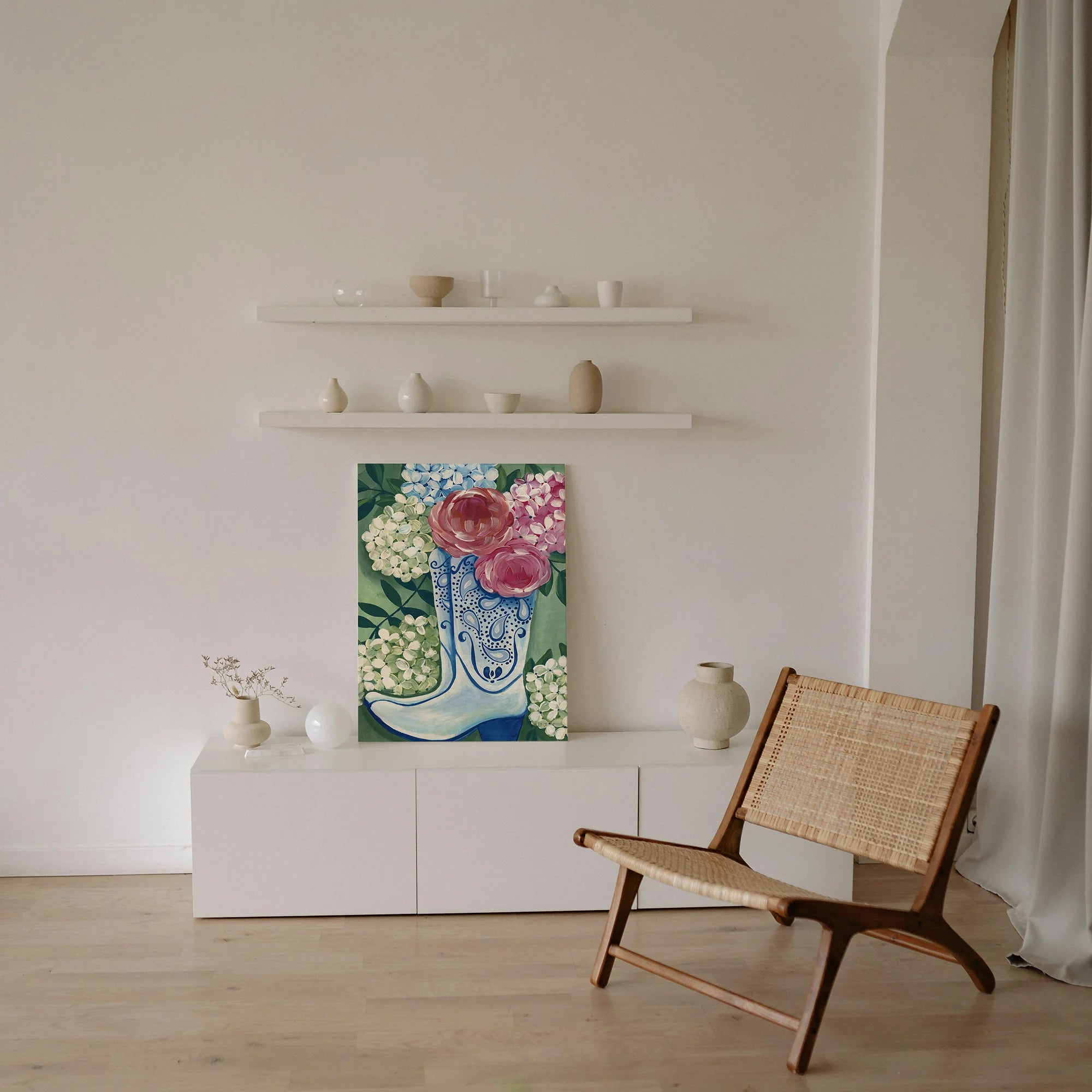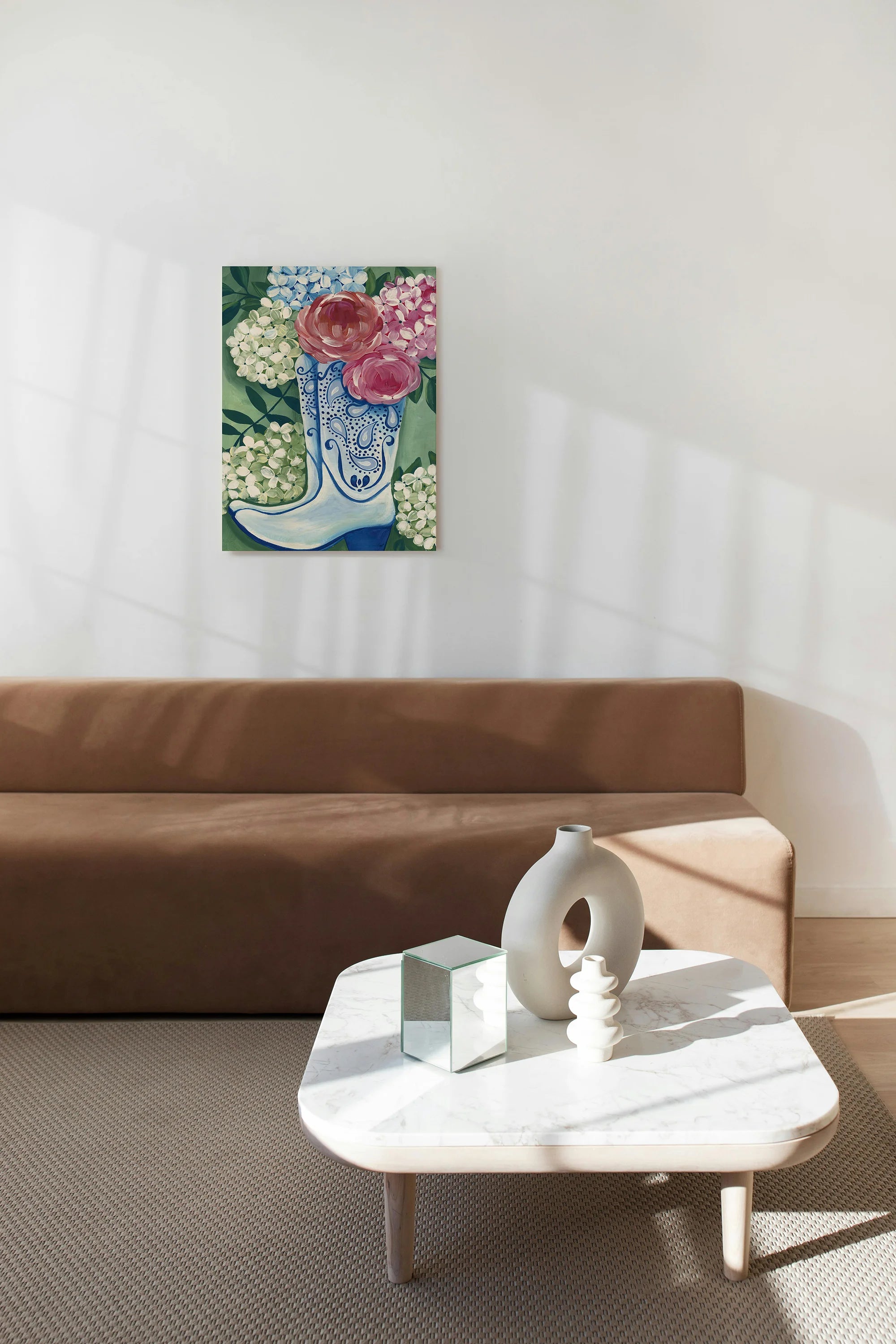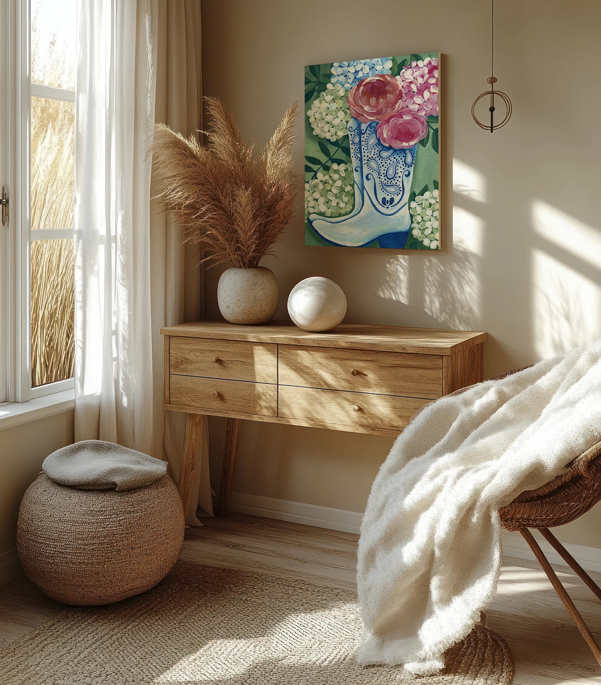 Southern Belle Cowgirl Boots Print by Yvette St. Amant is an abstract art print that adds depth and warmth to contemporary home décor. A versatile statement piece, perfect for living spaces, bedrooms, or creative interiors. Printed on premium 12mm Italian Poplar Plywood – finished & printed in Britain.