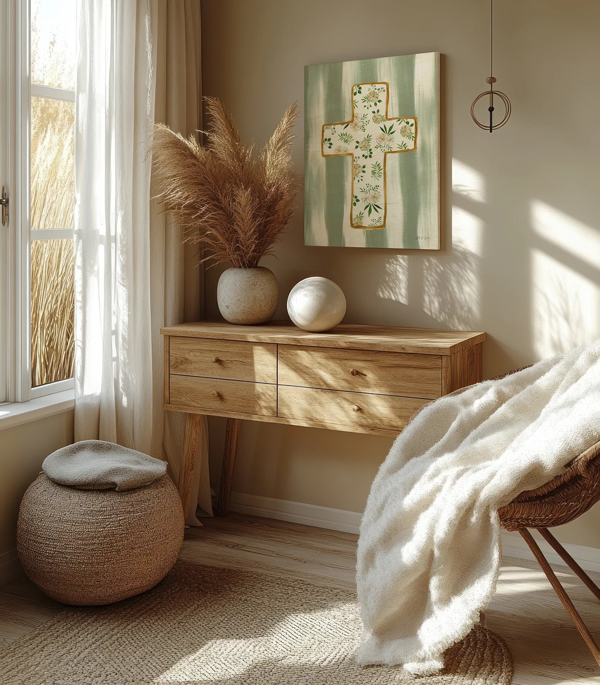 Floral Cross III Print by Yvette St. Amant is an abstract art print that adds depth and warmth to contemporary home décor. A versatile statement piece, perfect for living spaces, bedrooms, or creative interiors. Printed on premium 12mm Italian Poplar Plywood – finished & printed in Britain.