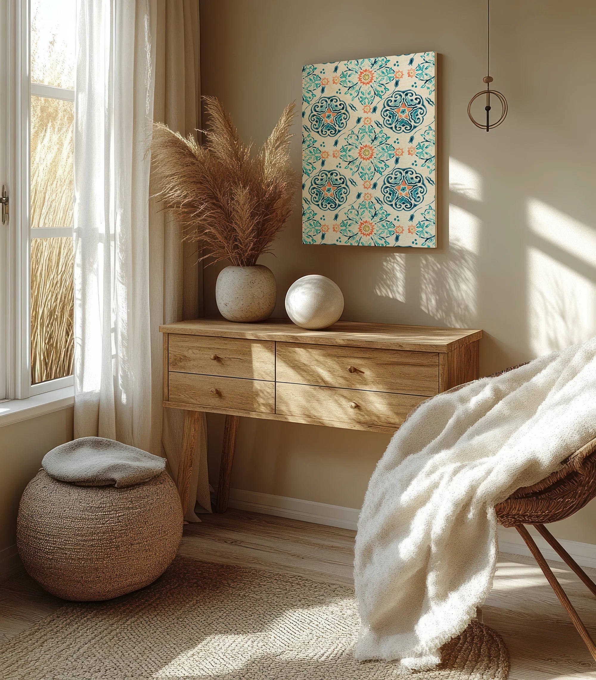 Medallion Medley Collection E by June Erica Vess is an abstract art print that adds depth and warmth to contemporary home décor. A versatile statement piece, perfect for living spaces, bedrooms, or creative interiors. Printed on premium 12mm Italian Poplar Plywood – finished & printed in Britain.