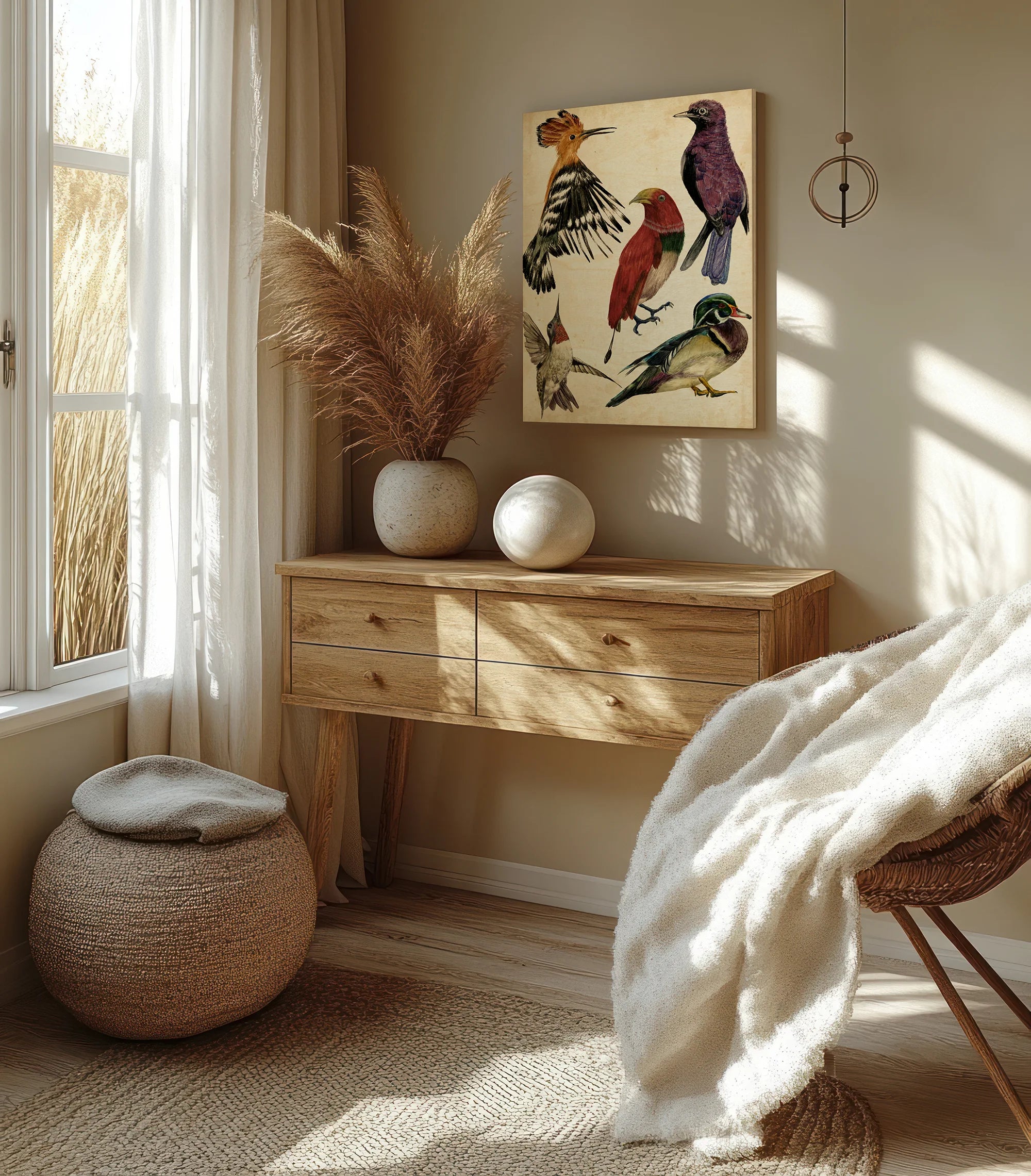 Bird Collection II by Melissa Wang is an abstract art print that adds depth and warmth to contemporary home décor. A versatile statement piece, perfect for living spaces, bedrooms, or creative interiors. Printed on premium 12mm Italian Poplar Plywood – finished & printed in Britain.