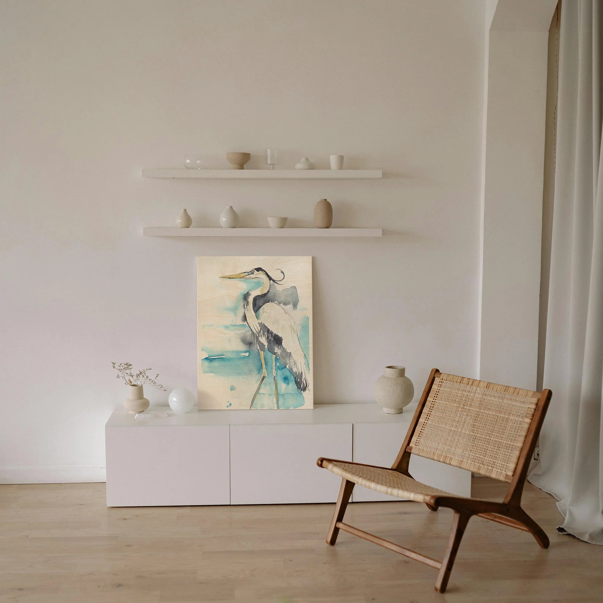 Heron Splash II by Jennifer Goldberger is an abstract art print that adds depth and warmth to contemporary home décor. A versatile statement piece, perfect for living spaces, bedrooms, or creative interiors. Printed on premium 12mm Italian Poplar Plywood – finished & printed in Britain.