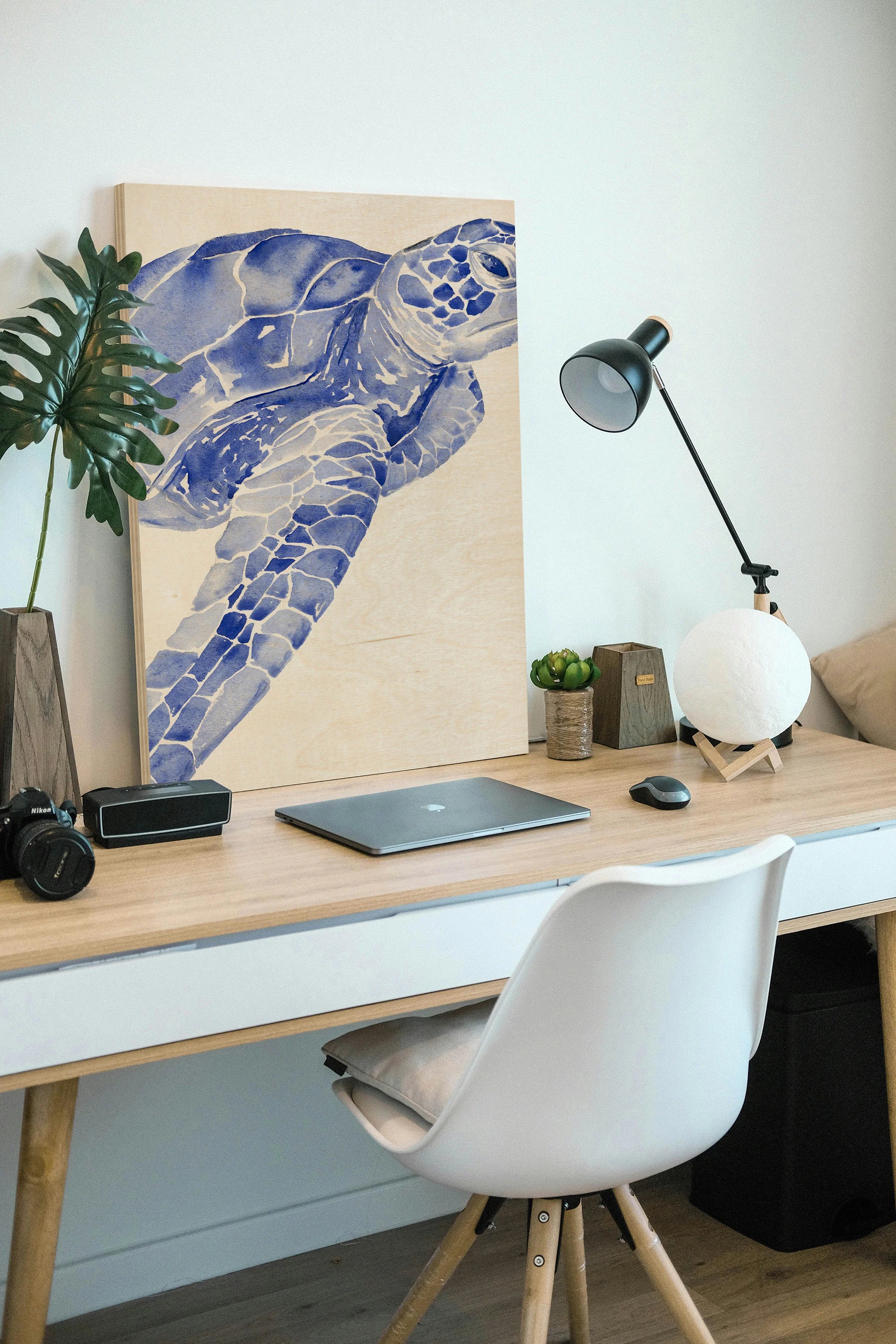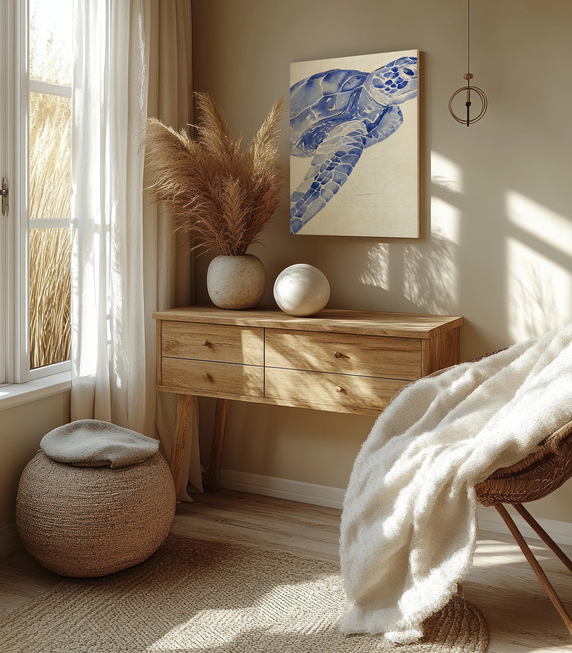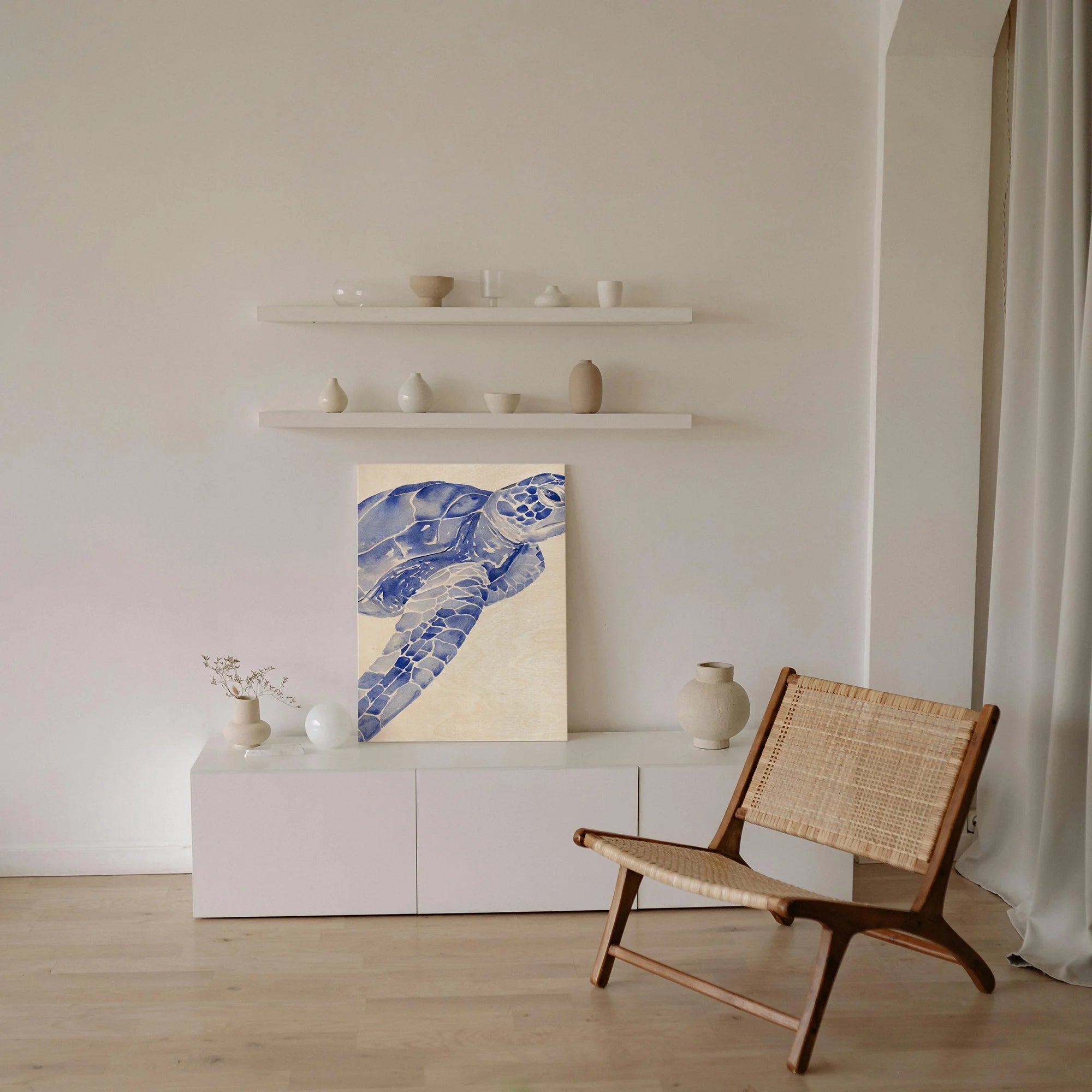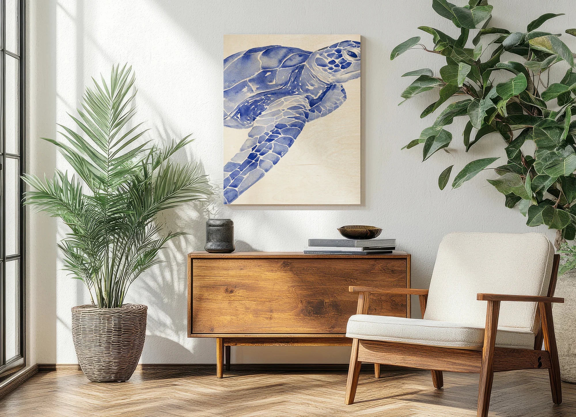 Ultramarine Sea Turtle II by Jennifer Paxton Parker is an abstract art print that adds depth and warmth to contemporary home décor. A versatile statement piece, perfect for living spaces, bedrooms, or creative interiors. Printed on premium 12mm Italian Poplar Plywood – finished & printed in Britain.