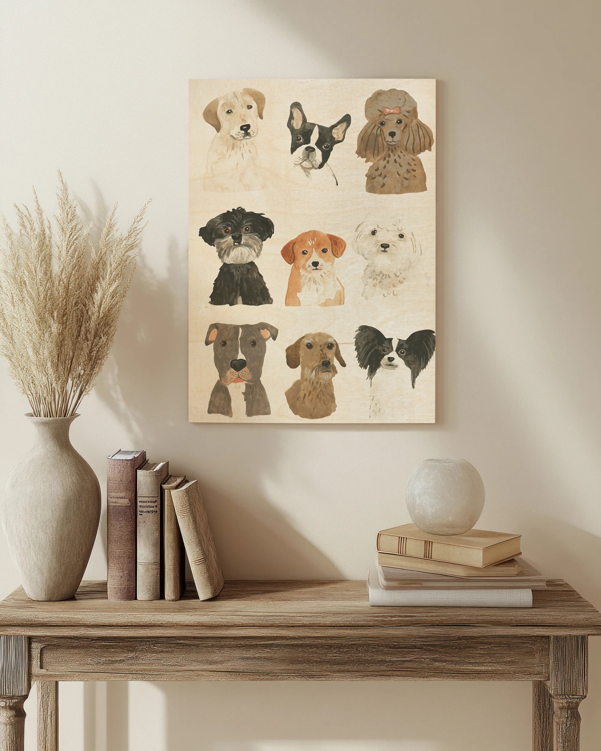 Doggos & Puppers II by June Erica Vess is an abstract art print that adds depth and warmth to contemporary home décor. A versatile statement piece, perfect for living spaces, bedrooms, or creative interiors. Printed on premium 12mm Italian Poplar Plywood – finished & printed in Britain.