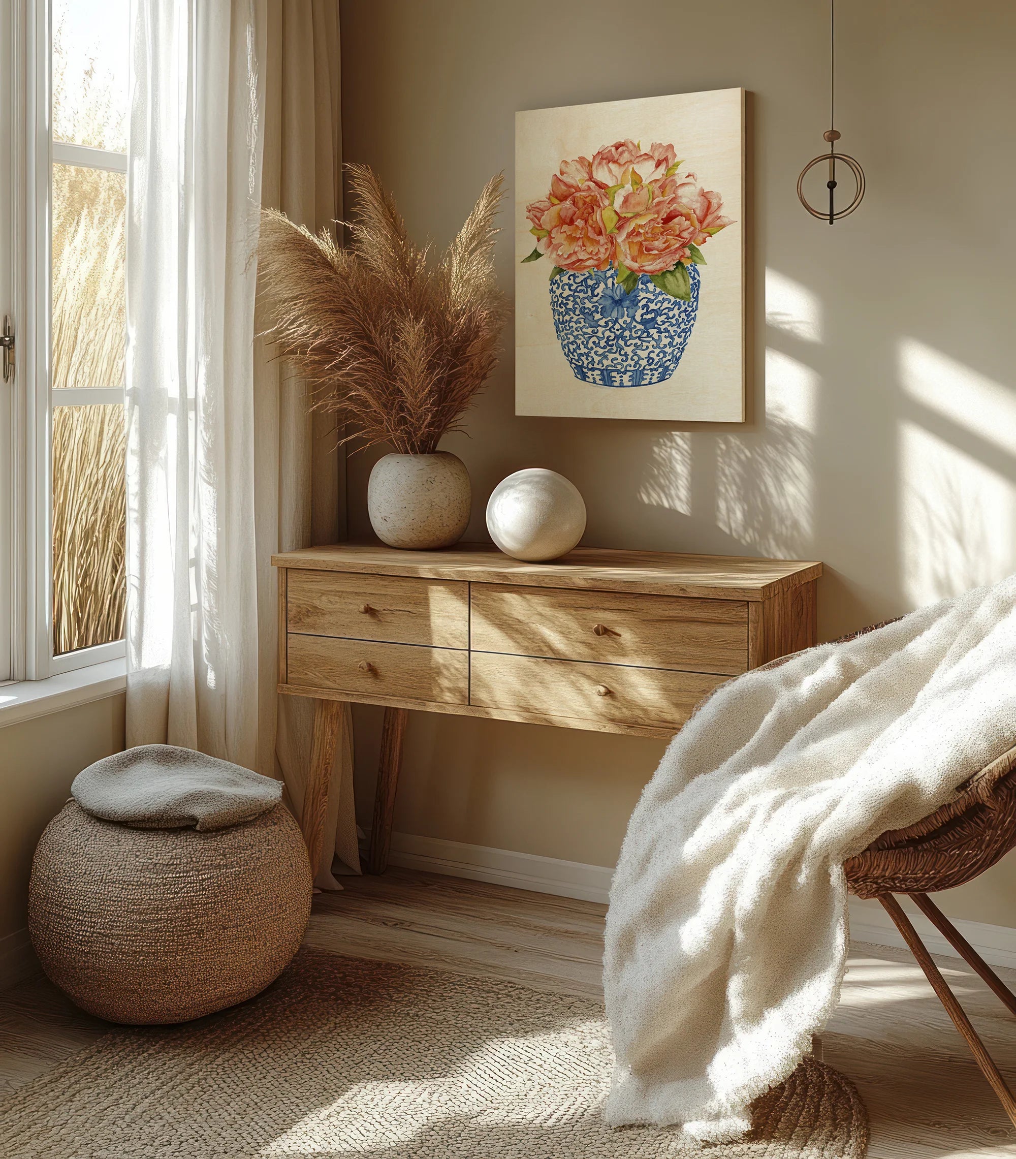 Sweet Peonies I by Melissa Wang is an abstract art print that adds depth and warmth to contemporary home décor. A versatile statement piece, perfect for living spaces, bedrooms, or creative interiors. Printed on premium 12mm Italian Poplar Plywood – finished & printed in Britain.