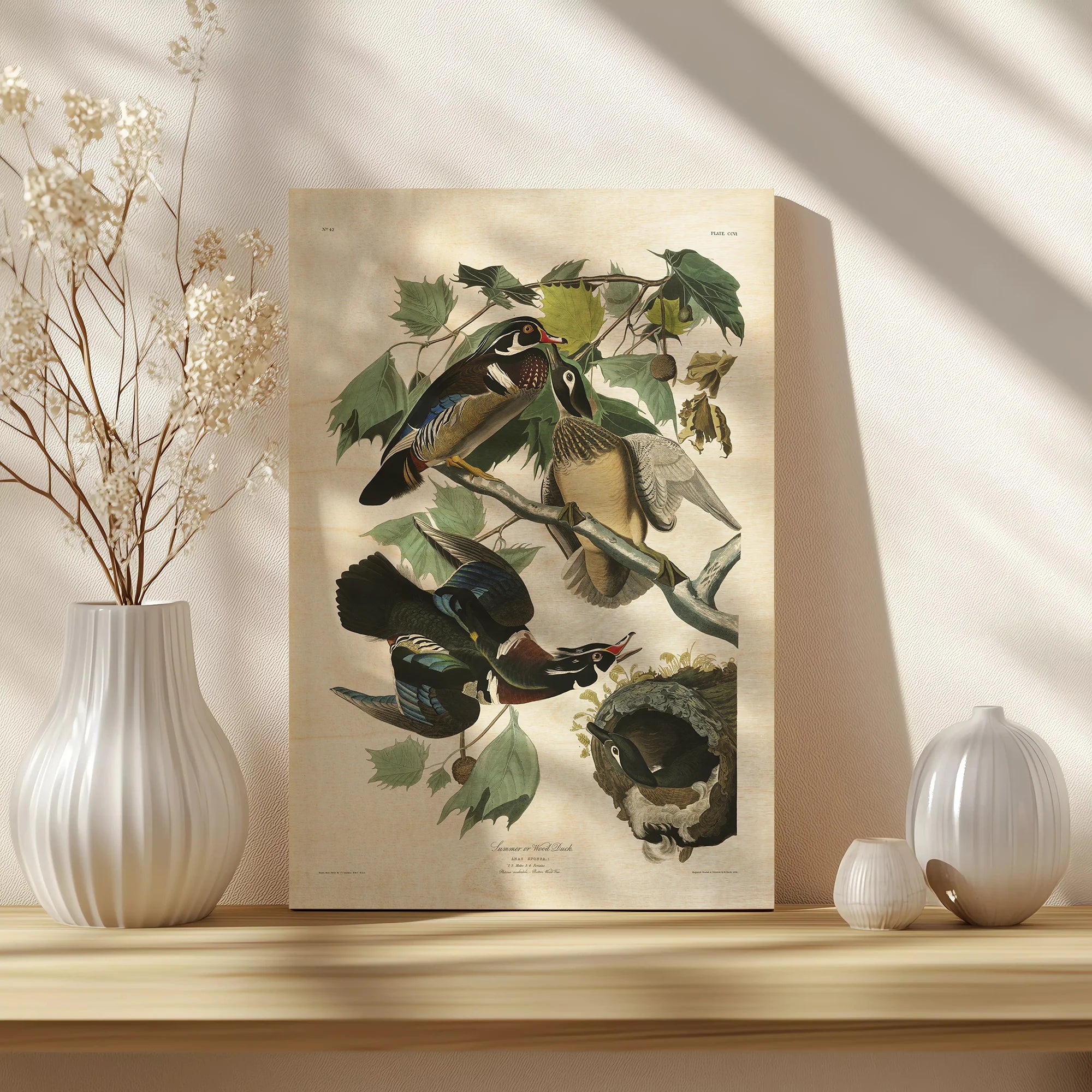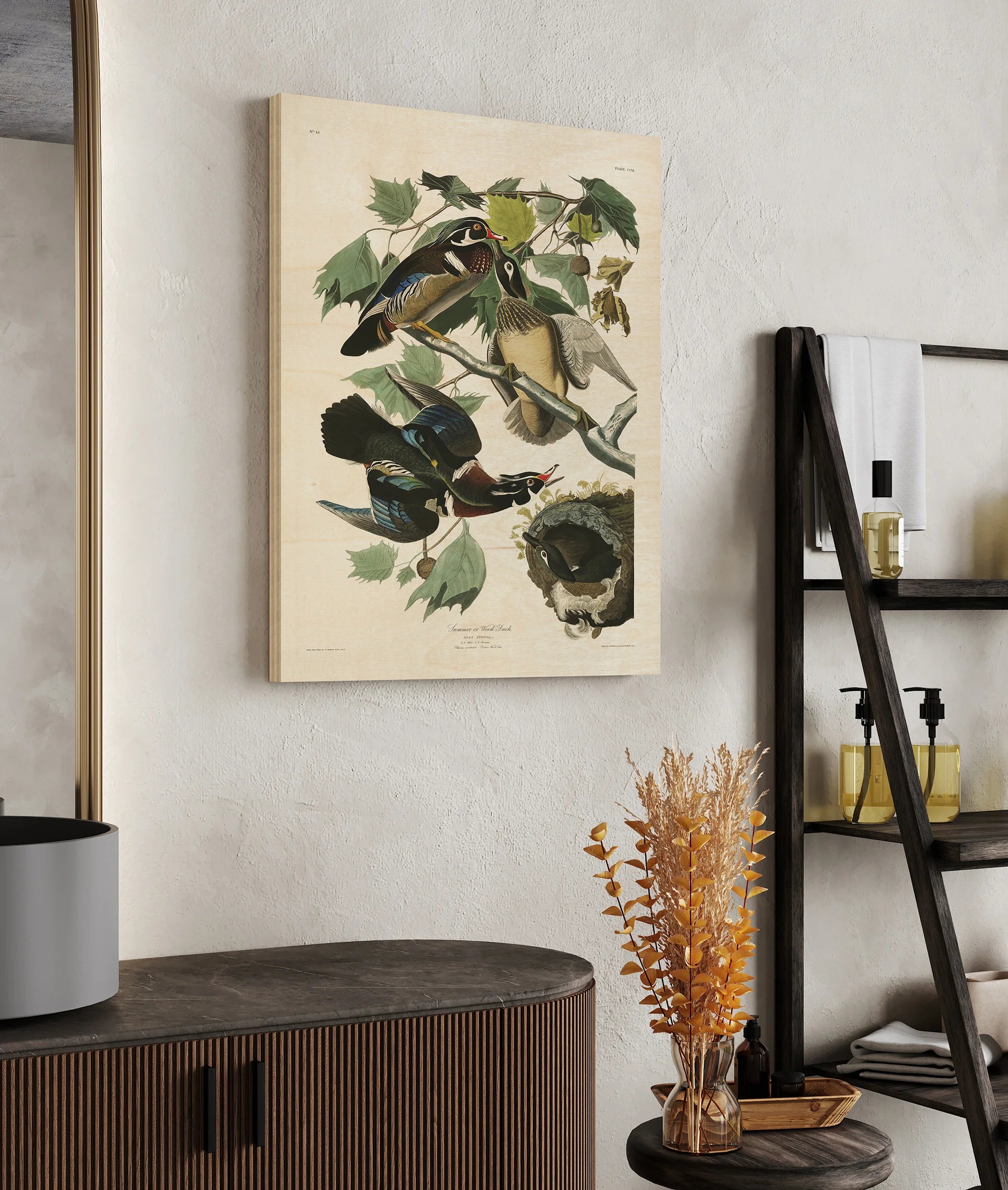 Pl 206 Wood Duck by John James Audubon is an abstract art print that adds depth and warmth to contemporary home décor. A versatile statement piece, perfect for living spaces, bedrooms, or creative interiors. Printed on premium 12mm Italian Poplar Plywood – finished & printed in Britain.