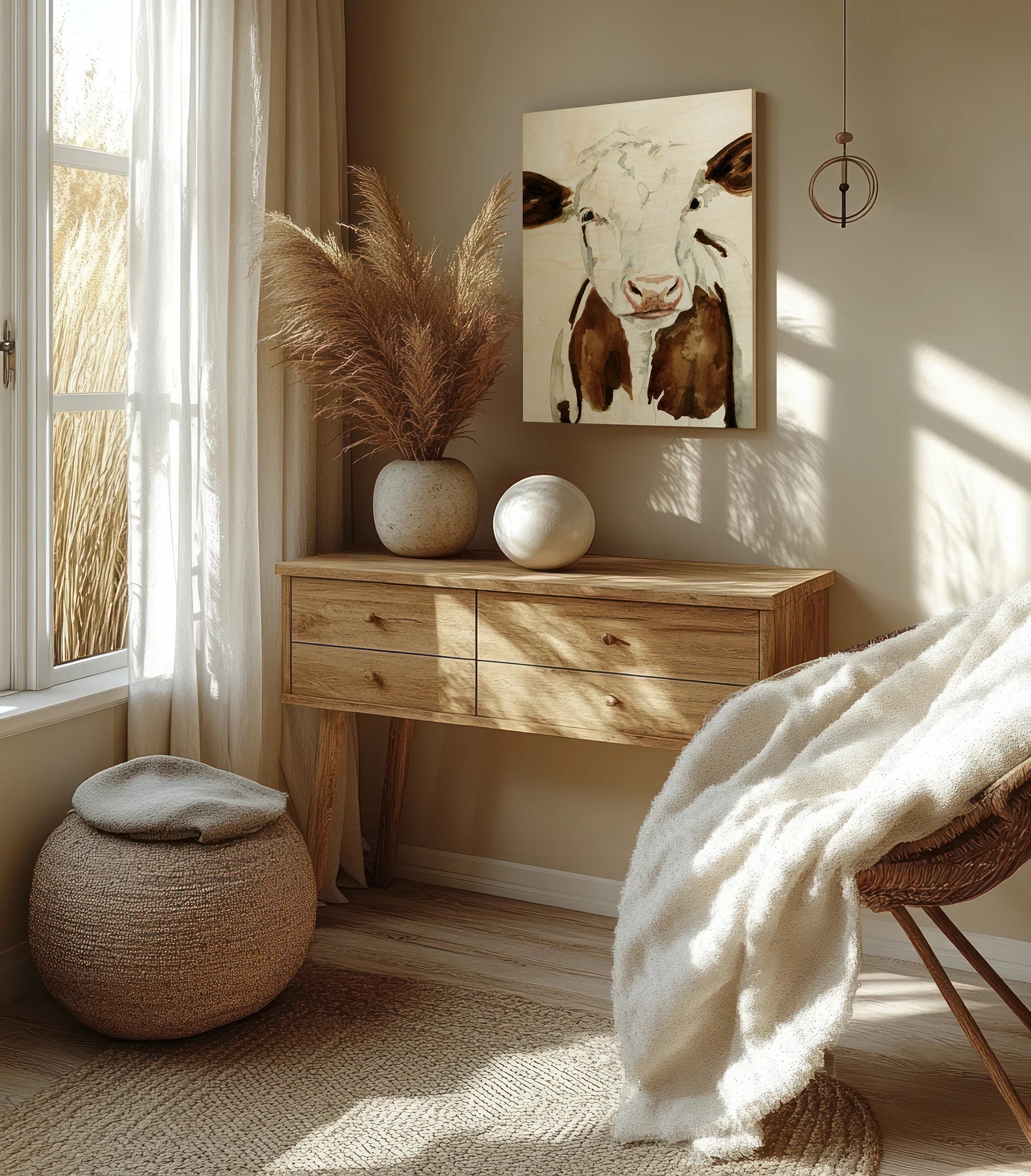 Cow Gaze I by Victoria Barnes is an abstract art print that adds depth and warmth to contemporary home décor. A versatile statement piece, perfect for living spaces, bedrooms, or creative interiors. Printed on premium 12mm Italian Poplar Plywood – finished & printed in Britain.