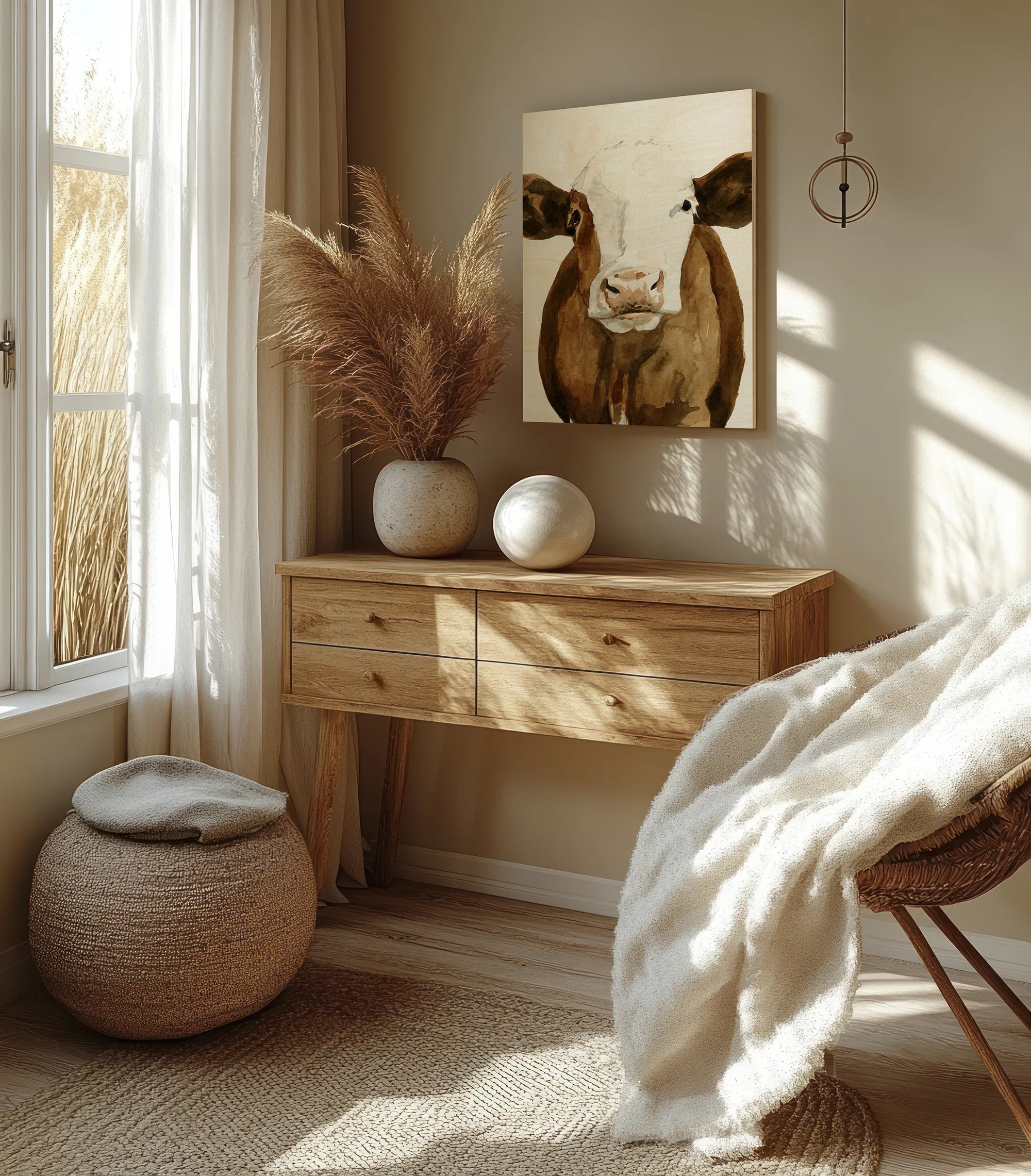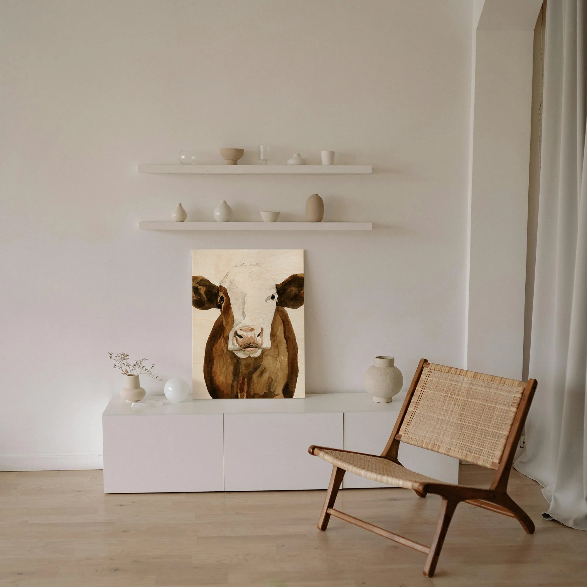 Cow Gaze II by Victoria Barnes is an abstract art print that adds depth and warmth to contemporary home décor. A versatile statement piece, perfect for living spaces, bedrooms, or creative interiors. Printed on premium 12mm Italian Poplar Plywood – finished & printed in Britain.