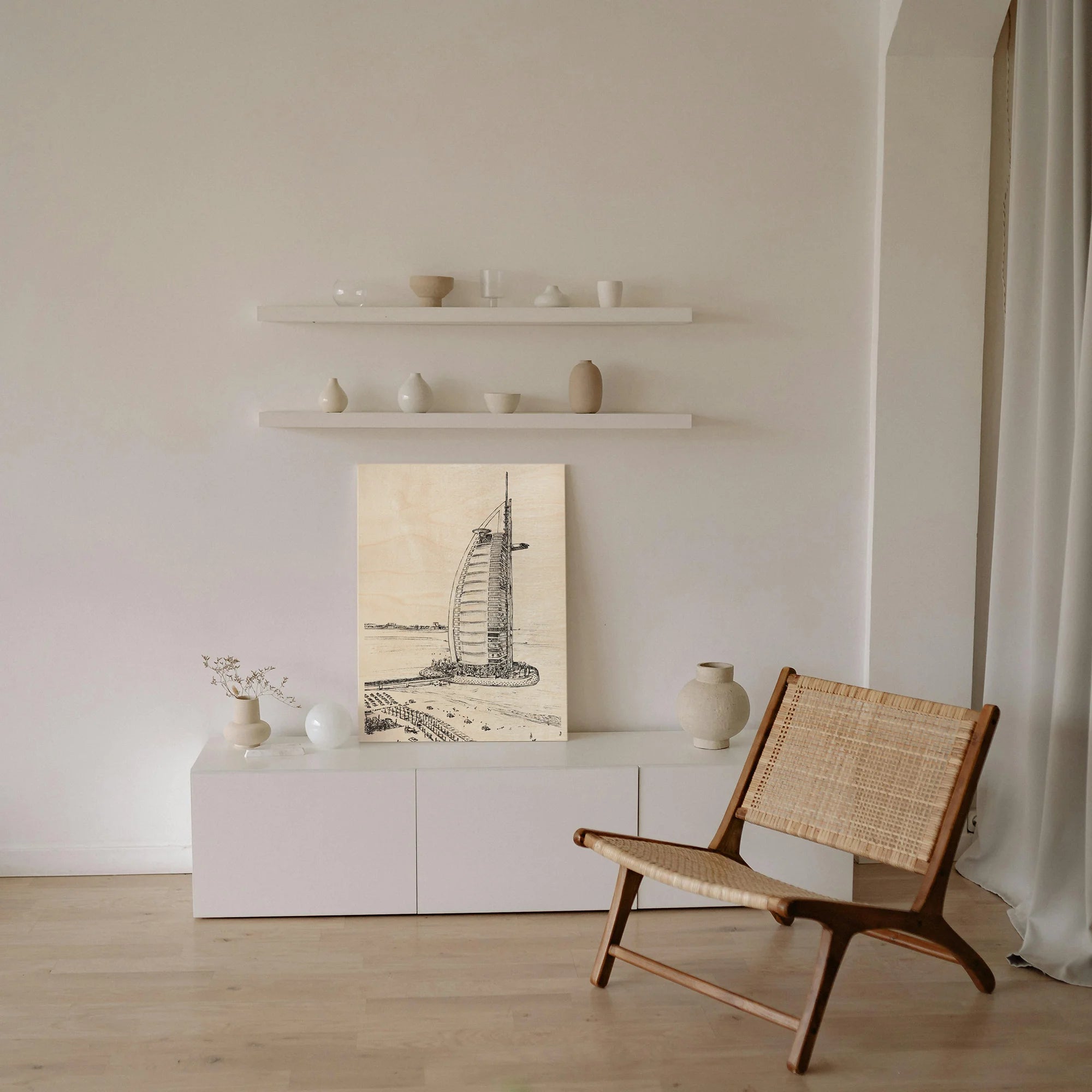 Dubai in Black & White I by Melissa Wang is an abstract art print that adds depth and warmth to contemporary home décor. A versatile statement piece, perfect for living spaces, bedrooms, or creative interiors. Printed on premium 12mm Italian Poplar Plywood – finished & printed in Britain.