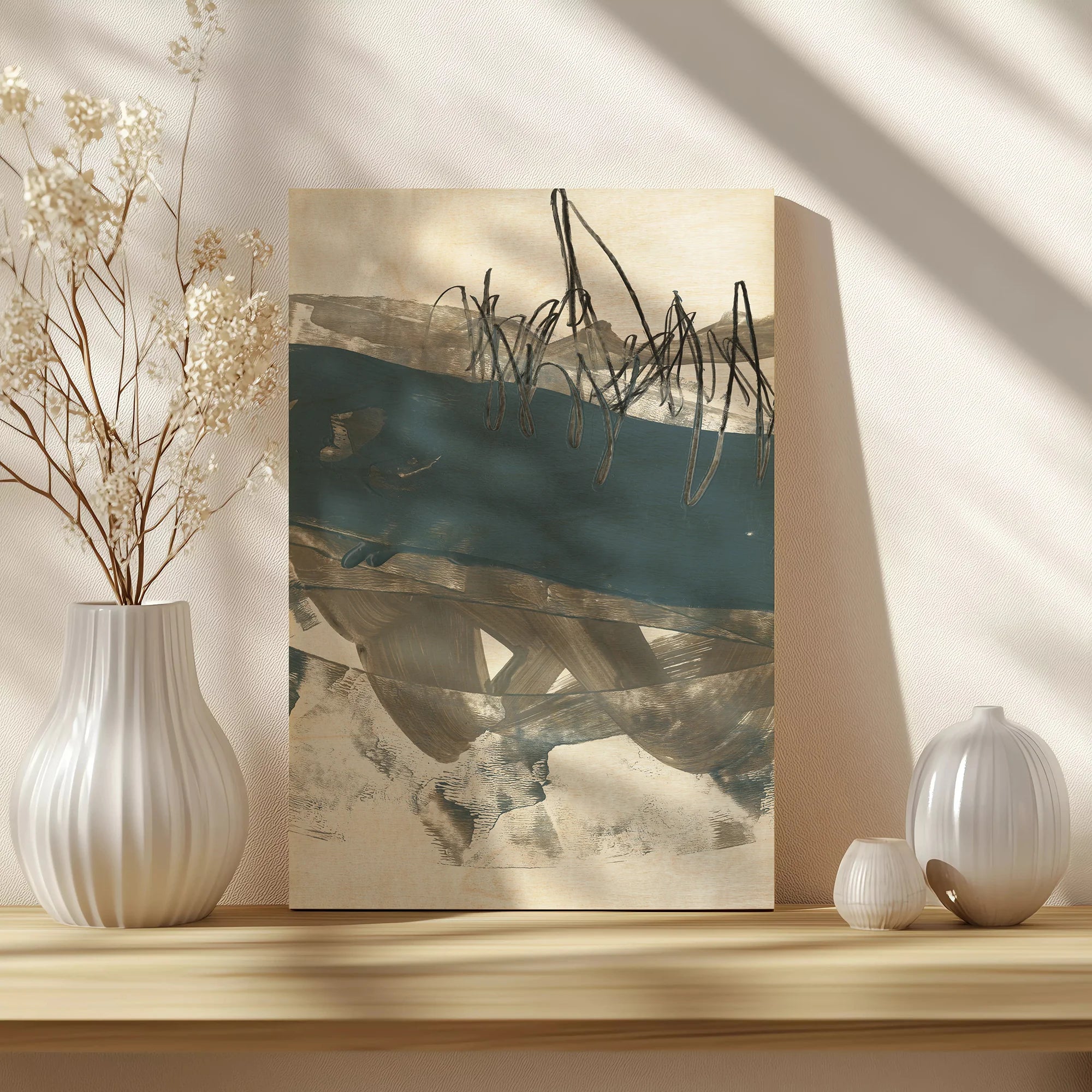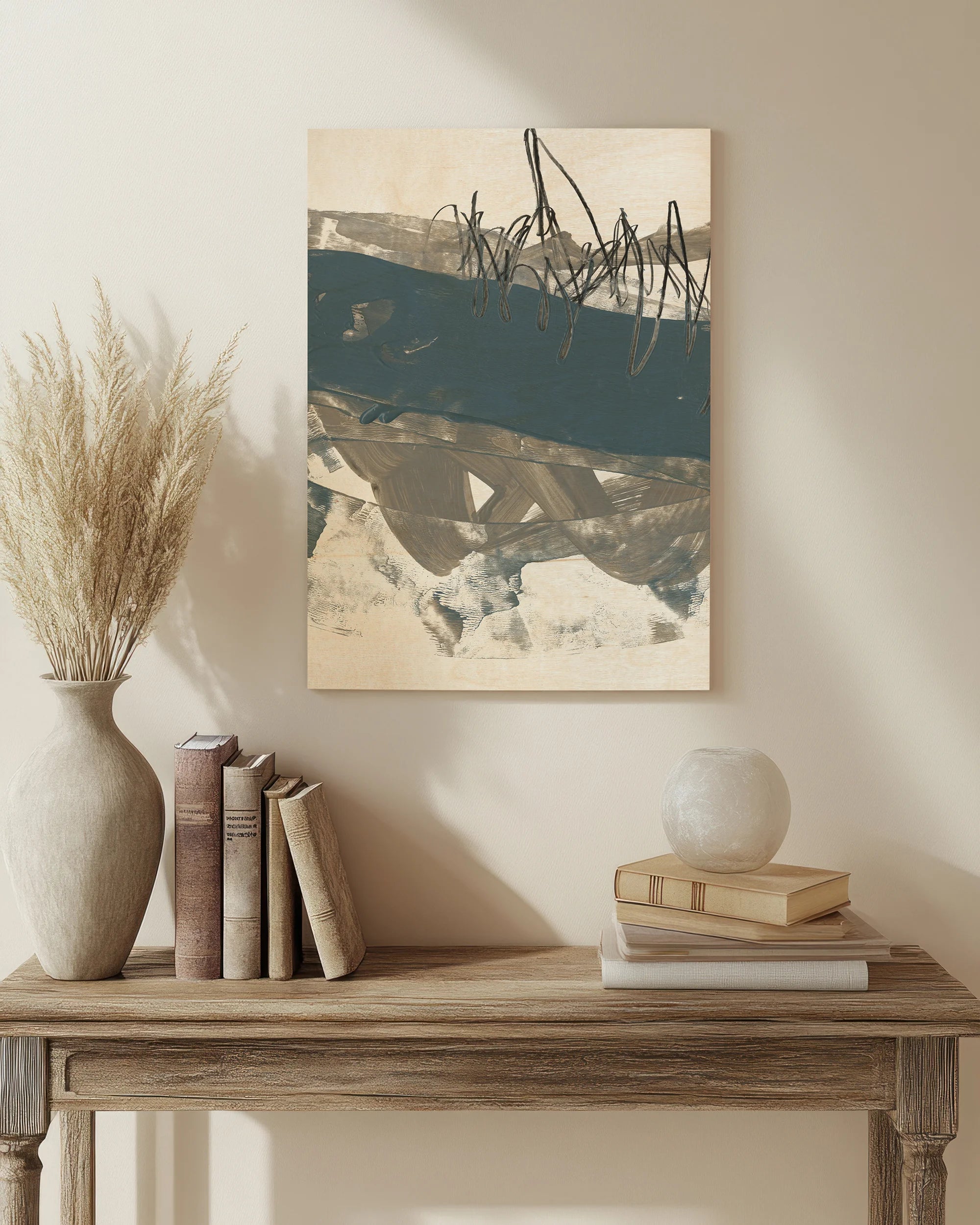 Blue & Grey Swipe II by Jennifer Goldberger is an abstract art print that adds depth and warmth to contemporary home décor. A versatile statement piece, perfect for living spaces, bedrooms, or creative interiors. Printed on premium 12mm Italian Poplar Plywood – finished & printed in Britain.
