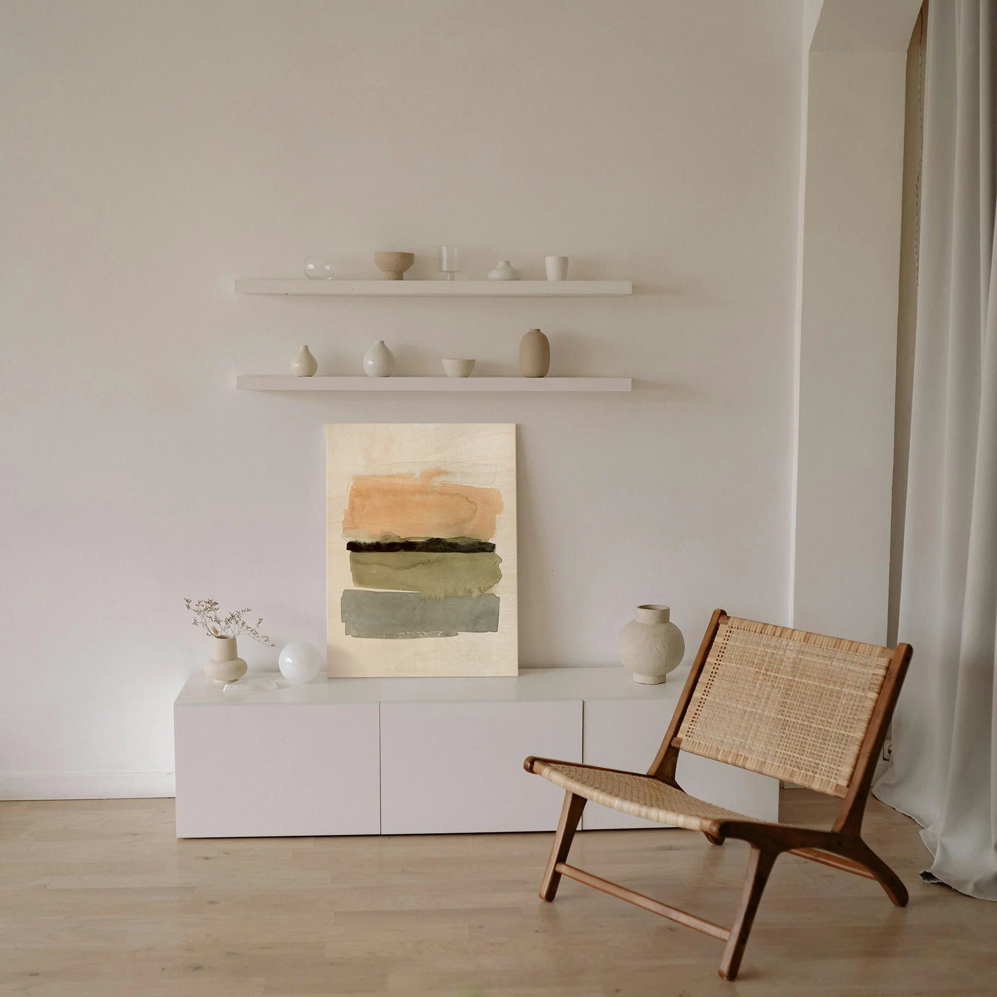 Peachy Horizon II by Victoria Barnes is an abstract art print that adds depth and warmth to contemporary home décor. A versatile statement piece, perfect for living spaces, bedrooms, or creative interiors. Printed on premium 12mm Italian Poplar Plywood – finished & printed in Britain.