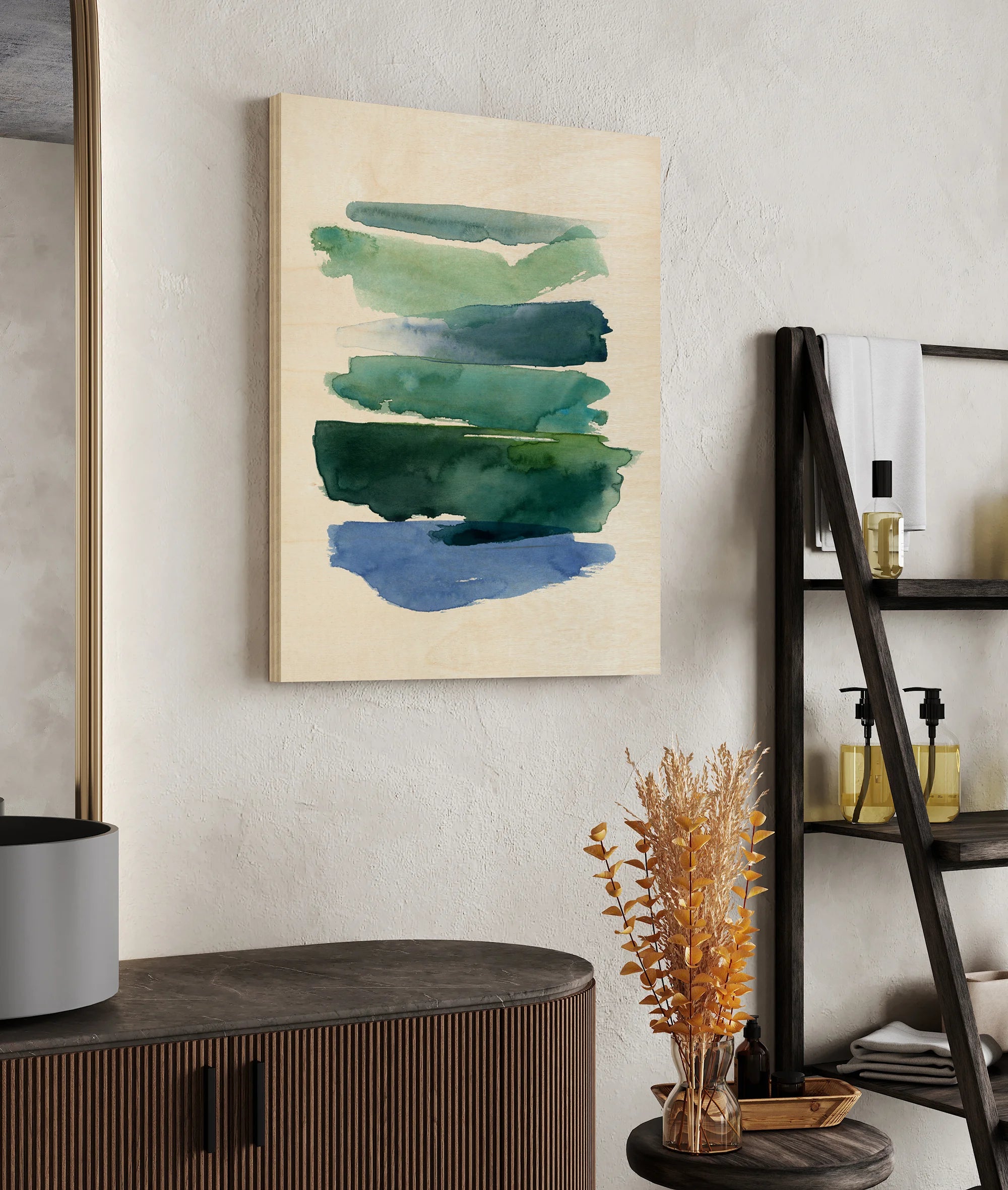 Swatches of Sea II by Grace Popp is an abstract art print that adds depth and warmth to contemporary home décor. A versatile statement piece, perfect for living spaces, bedrooms, or creative interiors. Printed on premium 12mm Italian Poplar Plywood – finished & printed in Britain.
