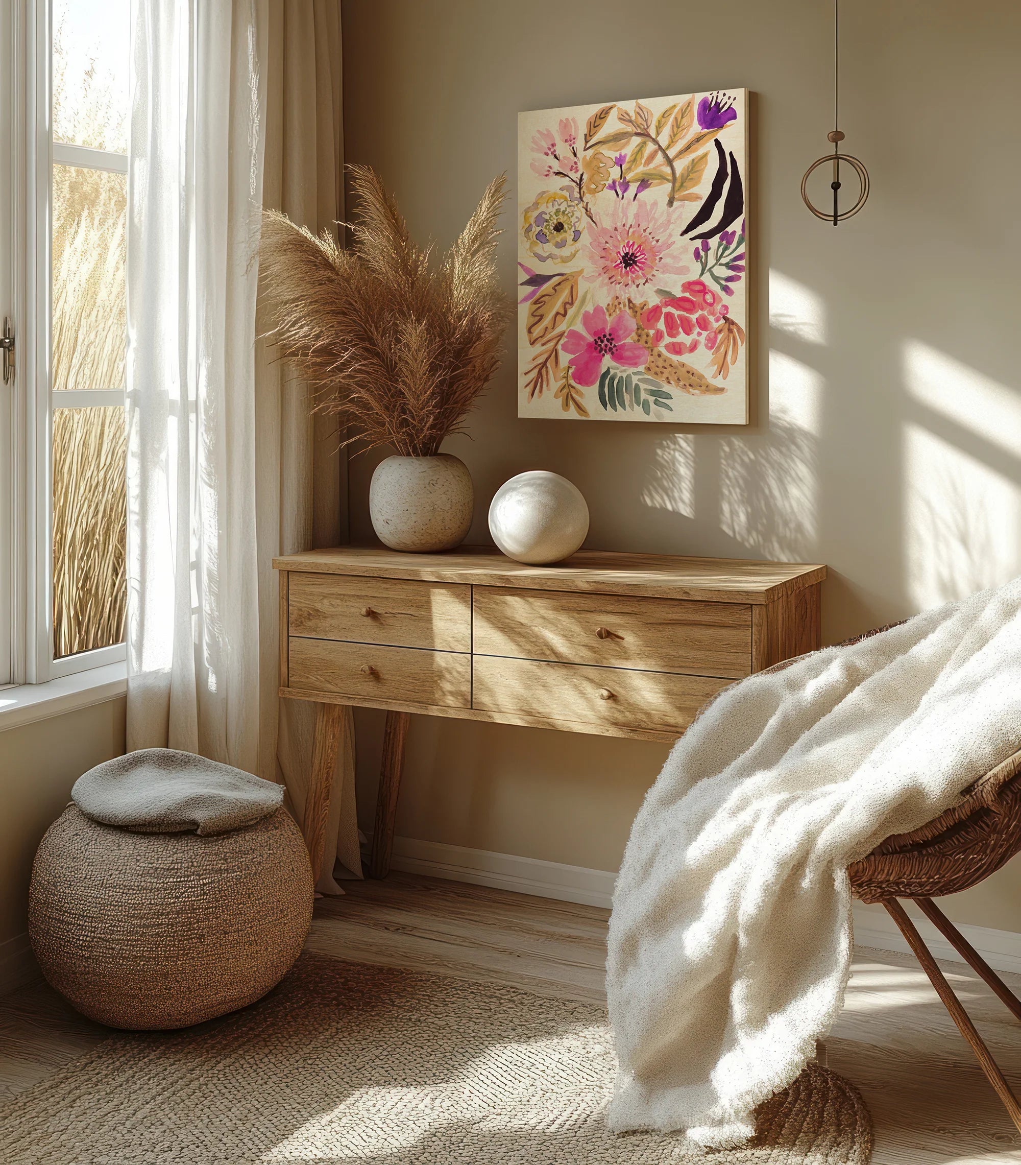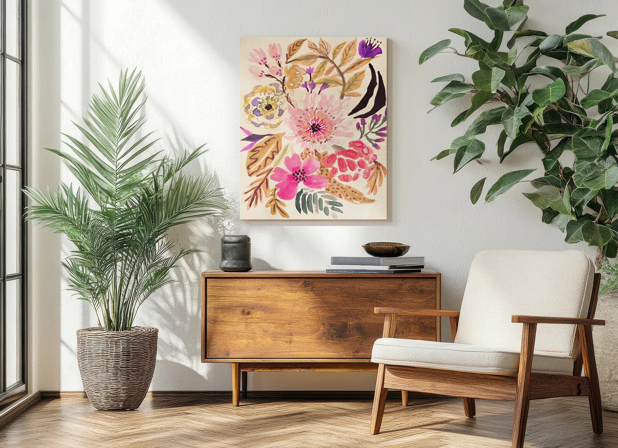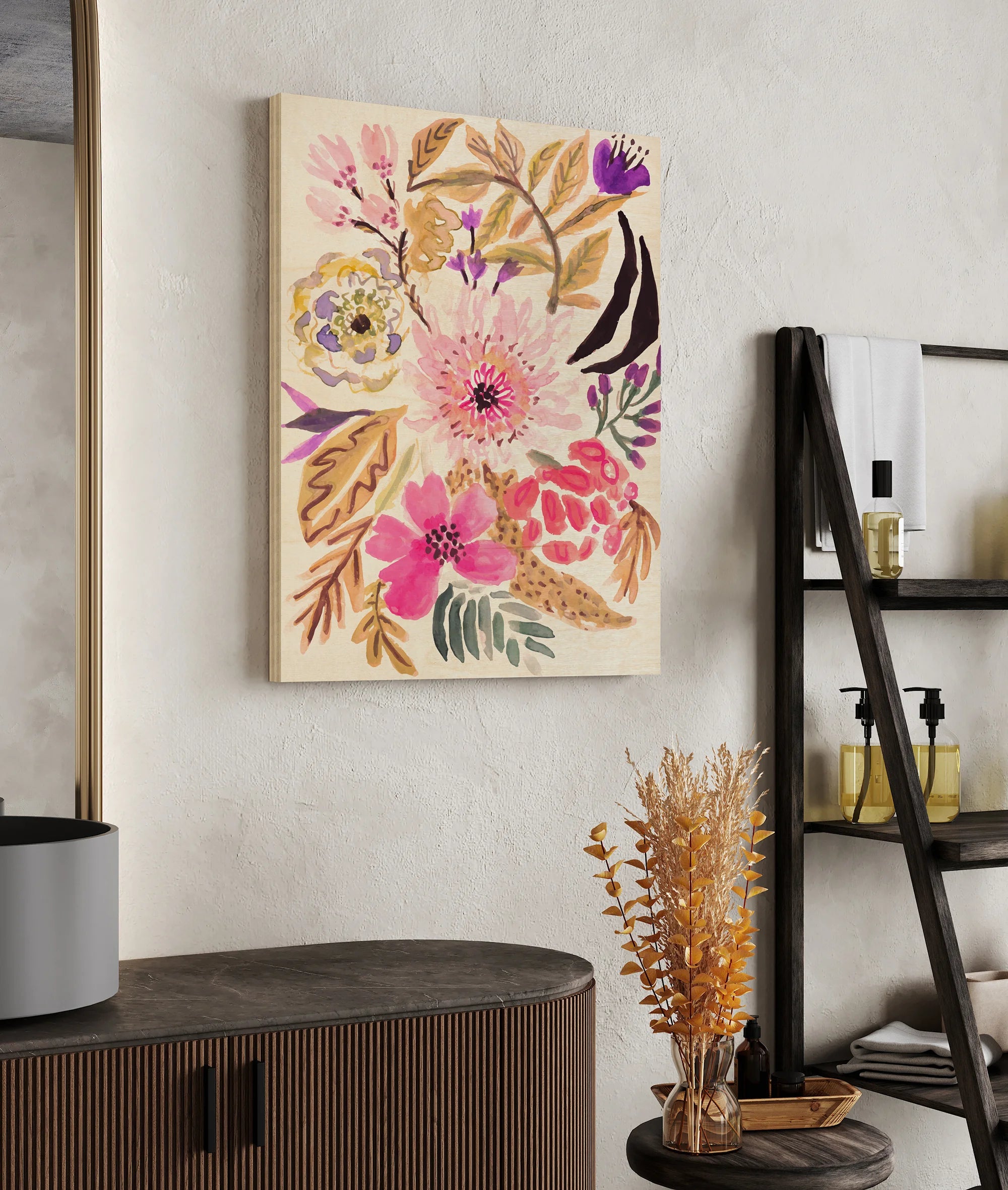 Flower Posy II by Karen Fields is an abstract art print that adds depth and warmth to contemporary home décor. A versatile statement piece, perfect for living spaces, bedrooms, or creative interiors. Printed on premium 12mm Italian Poplar Plywood – finished & printed in Britain.