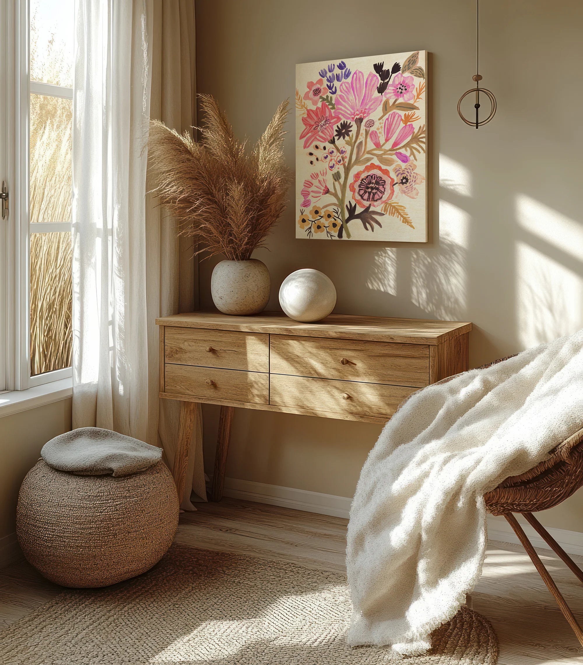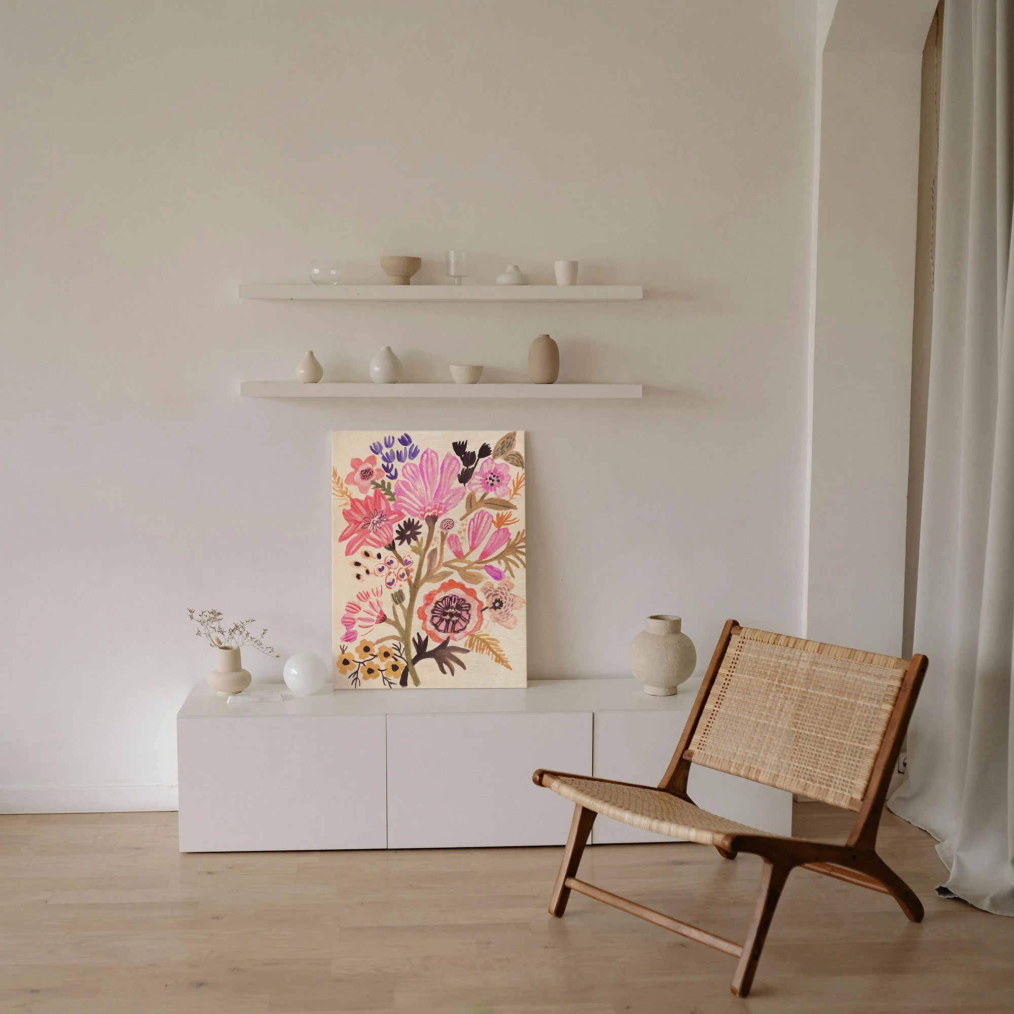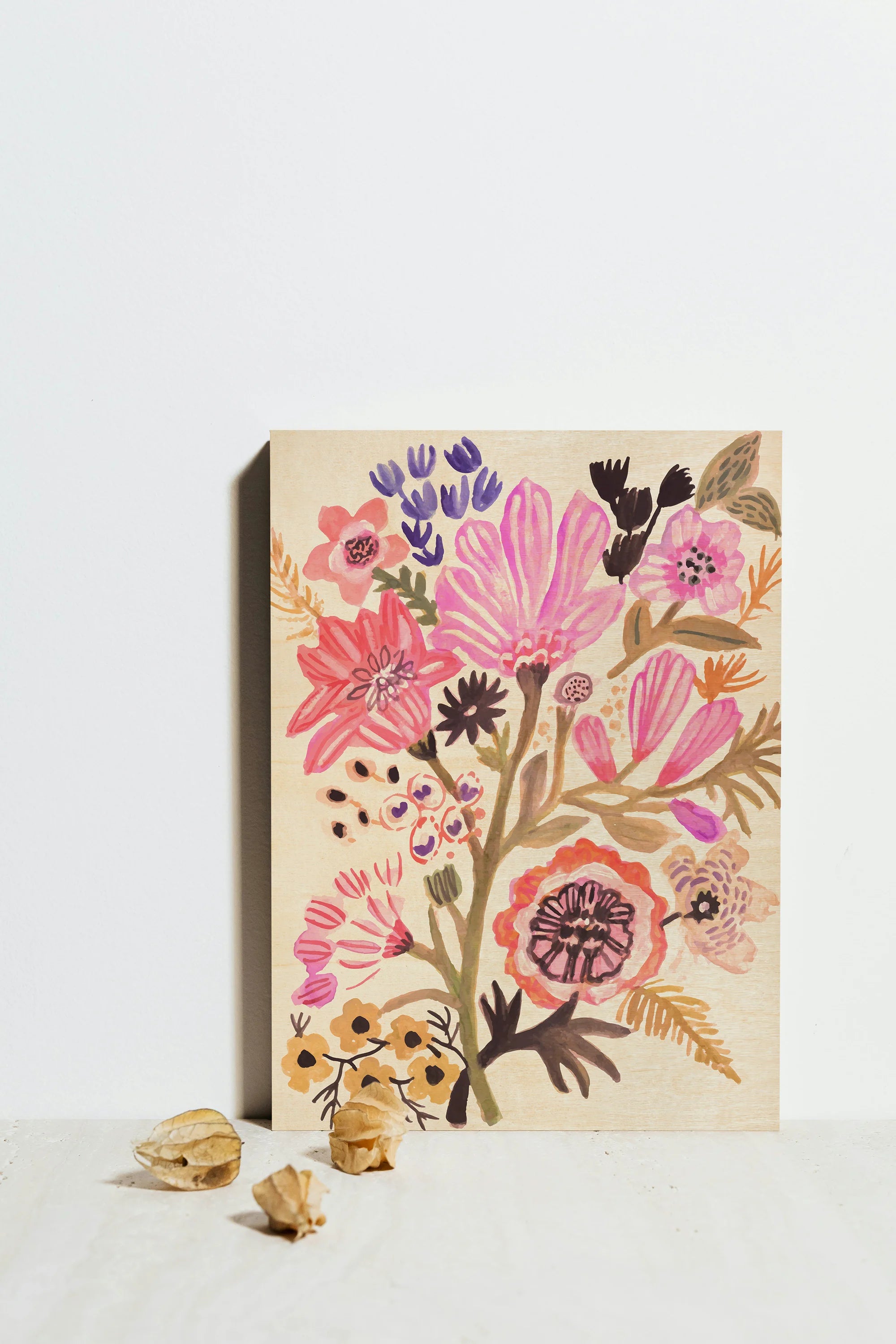 Flower Posy III by Karen Fields is an abstract art print that adds depth and warmth to contemporary home décor. A versatile statement piece, perfect for living spaces, bedrooms, or creative interiors. Printed on premium 12mm Italian Poplar Plywood – finished & printed in Britain.