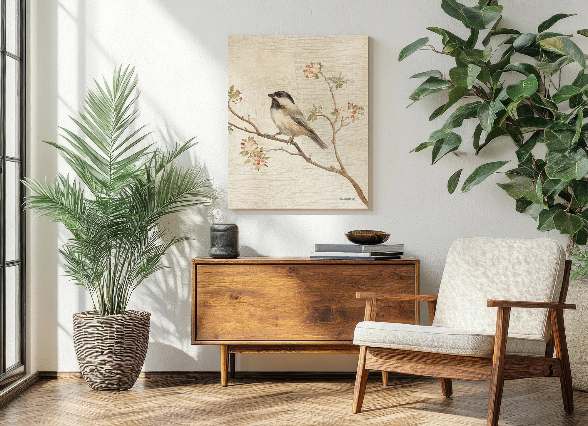 Black Capped Chickadee Vintage v2 Crop Print by Danhui Nai is an abstract art print that adds depth and warmth to contemporary home décor. A versatile statement piece, perfect for living spaces, bedrooms, or creative interiors. Printed on premium 12mm Italian Poplar Plywood – finished & printed in Britain.