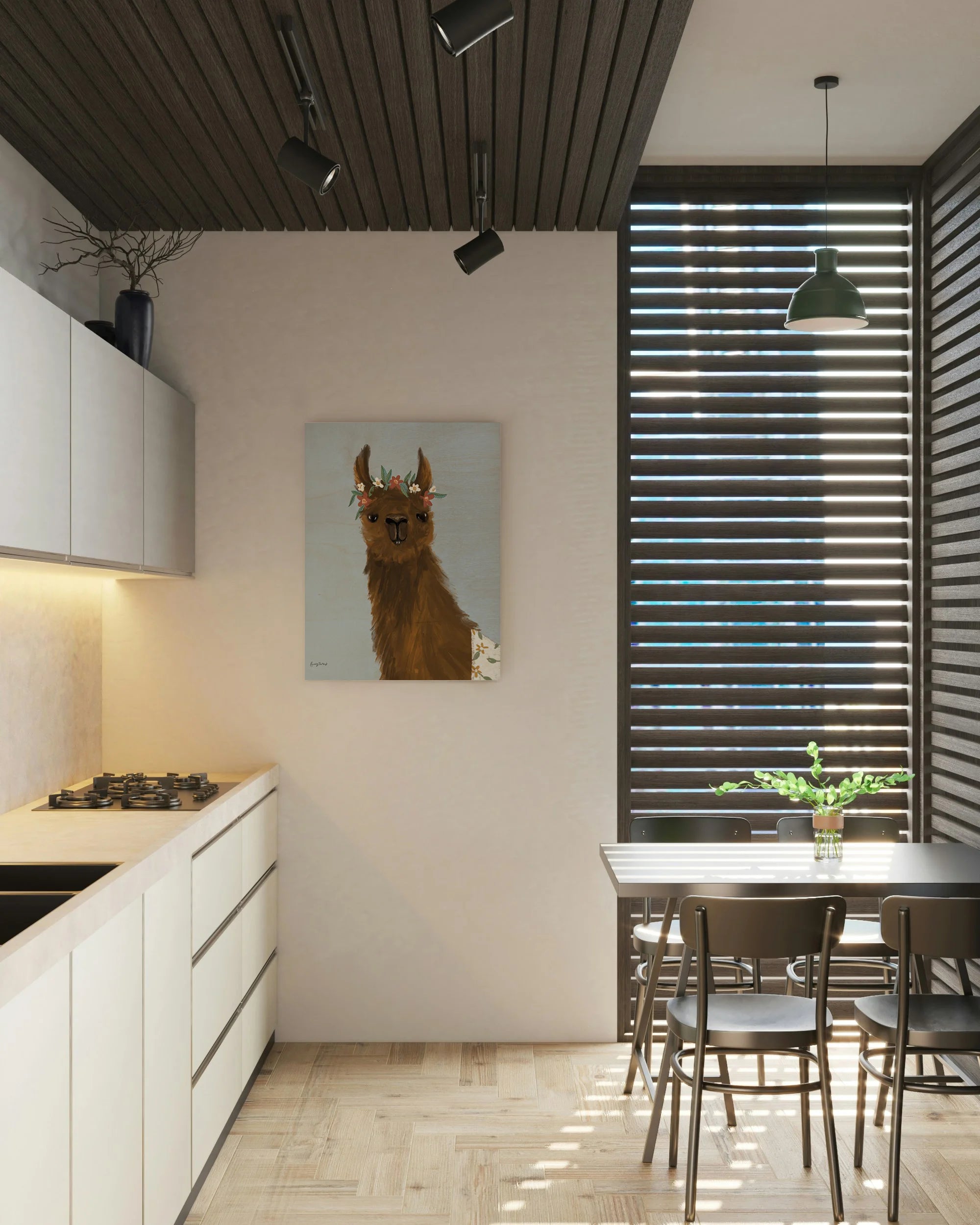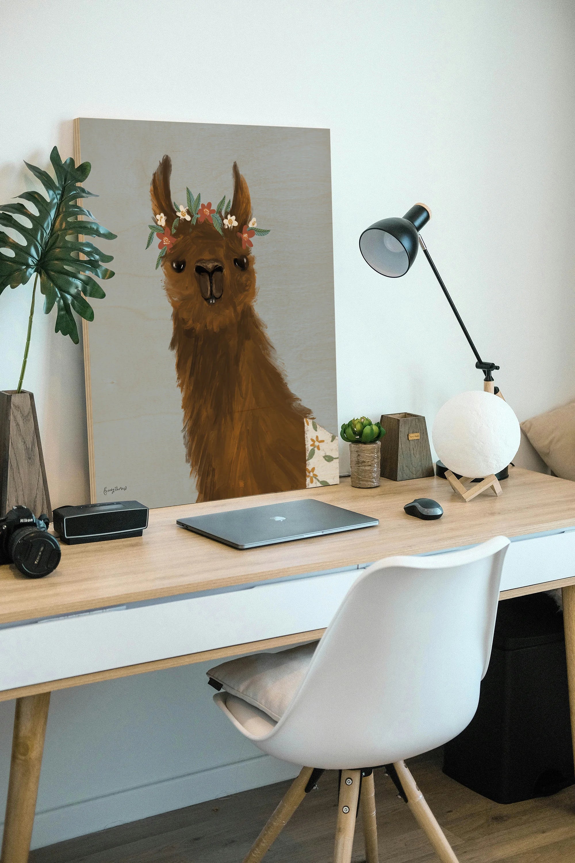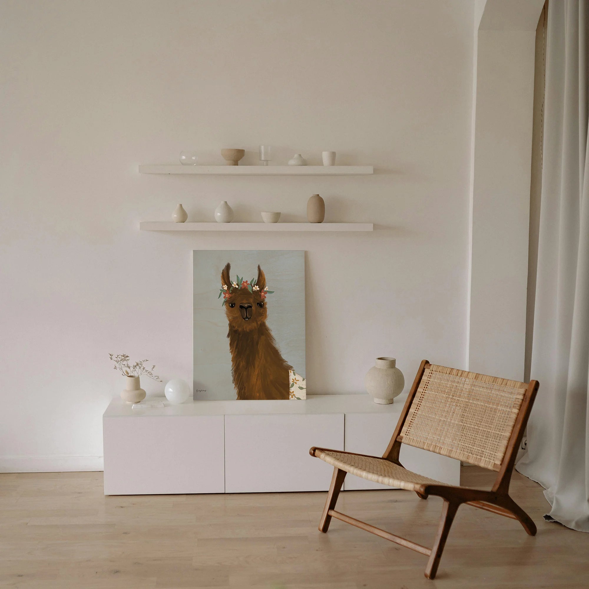 Delightful Alpacas II Print by Becky Thorns is an abstract art print that adds depth and warmth to contemporary home décor. A versatile statement piece, perfect for living spaces, bedrooms, or creative interiors. Printed on premium 12mm Italian Poplar Plywood – finished & printed in Britain.