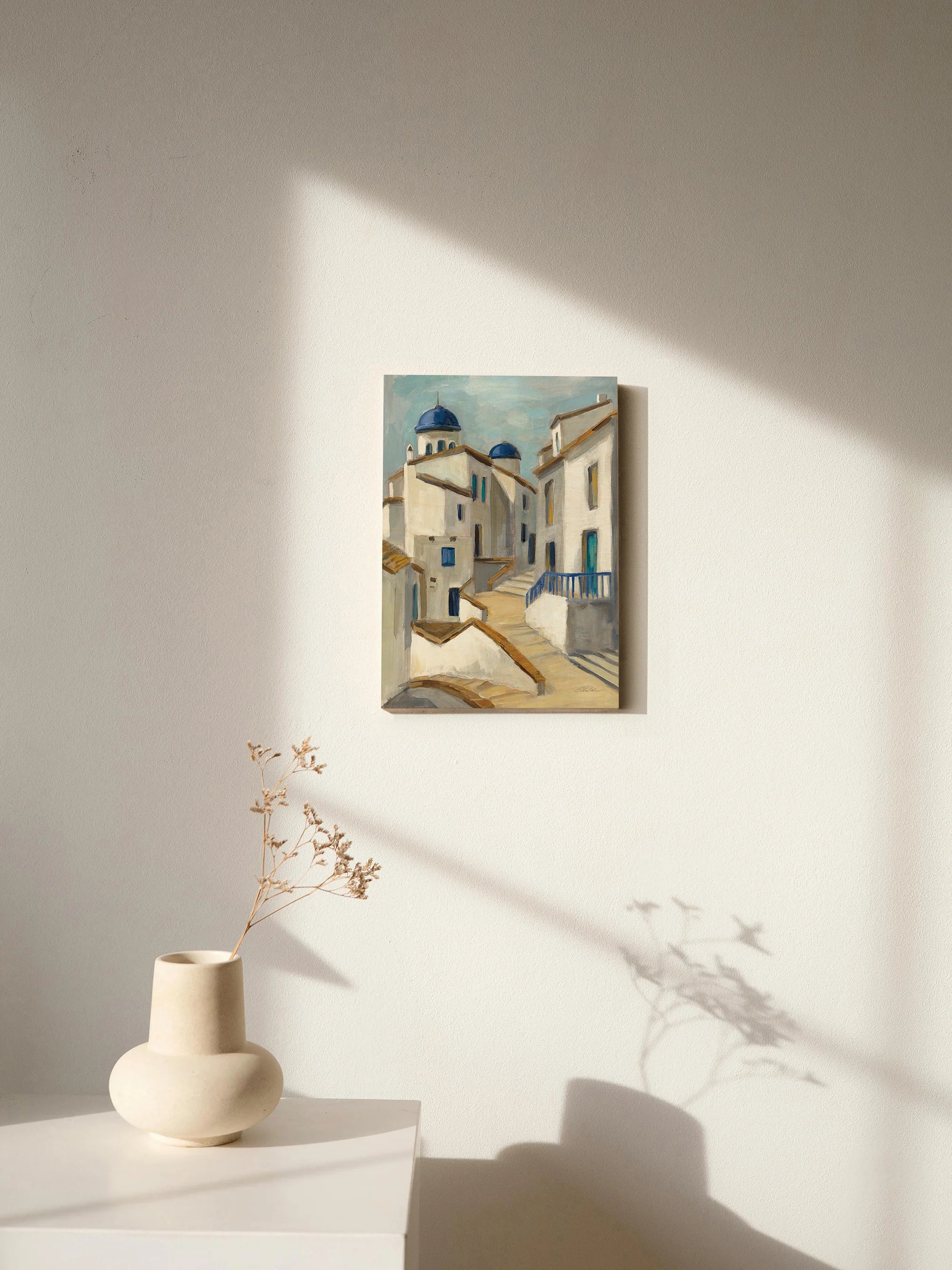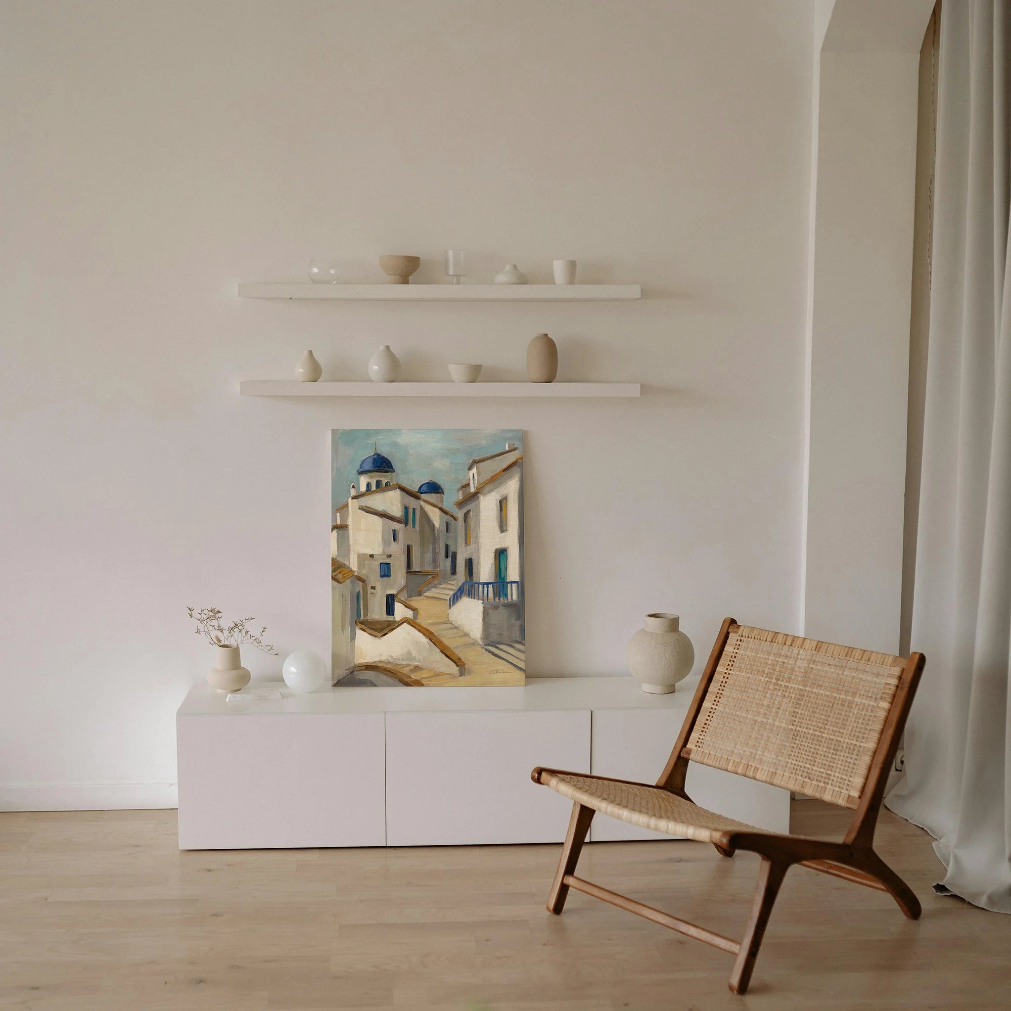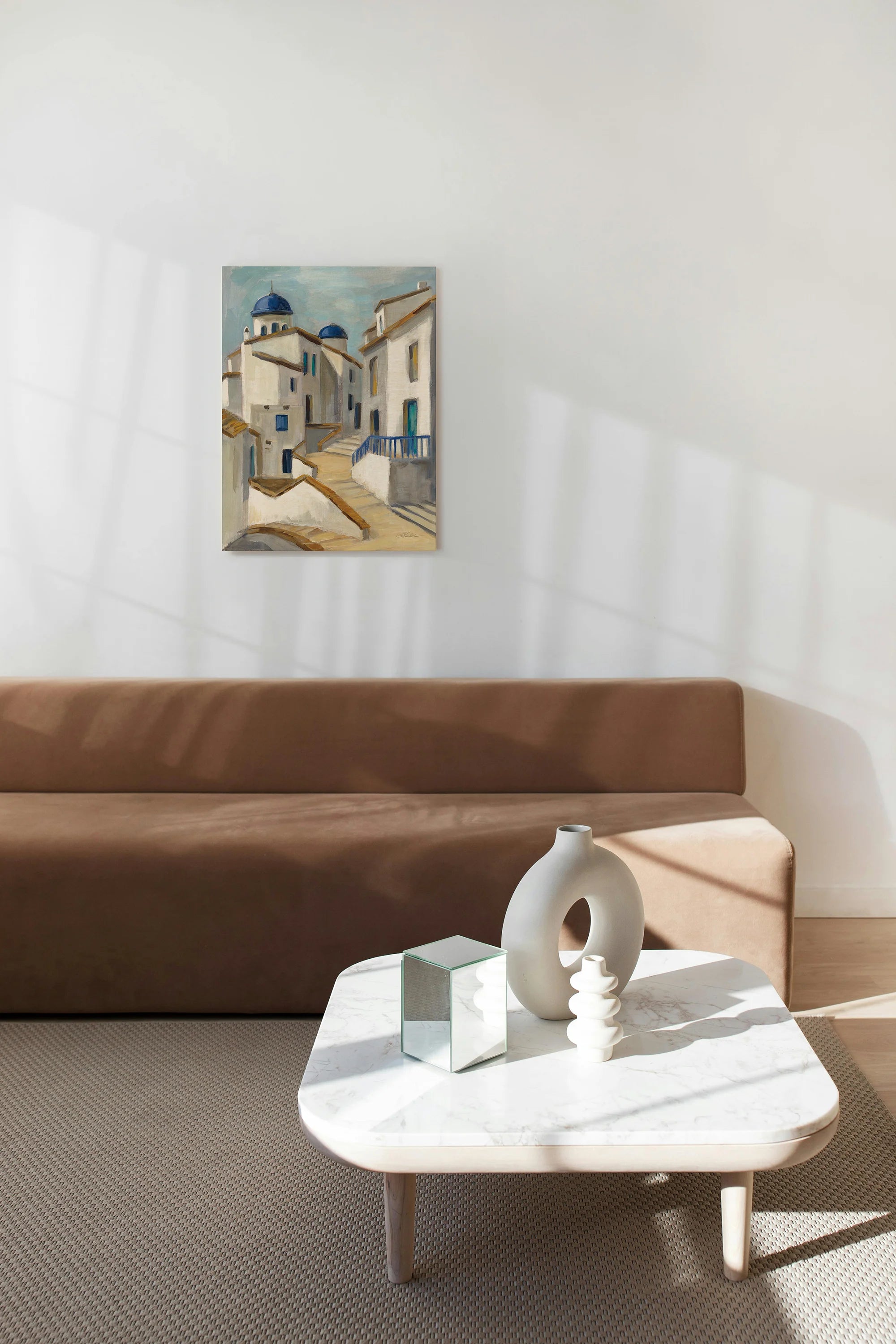 Santorini View II Print by Silvia Vassileva is an abstract art print that adds depth and warmth to contemporary home décor. A versatile statement piece, perfect for living spaces, bedrooms, or creative interiors. Printed on premium 12mm Italian Poplar Plywood – finished & printed in Britain.