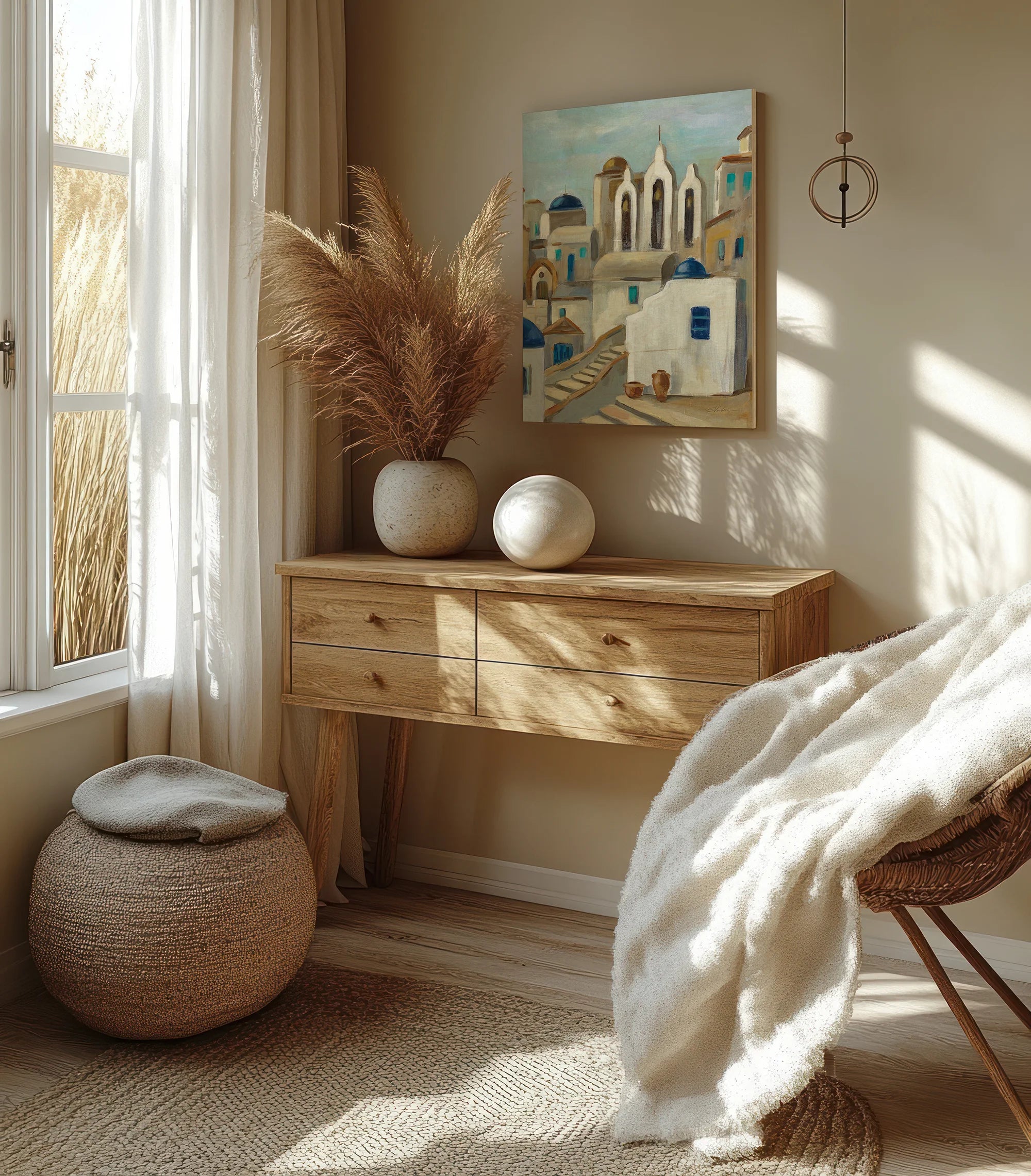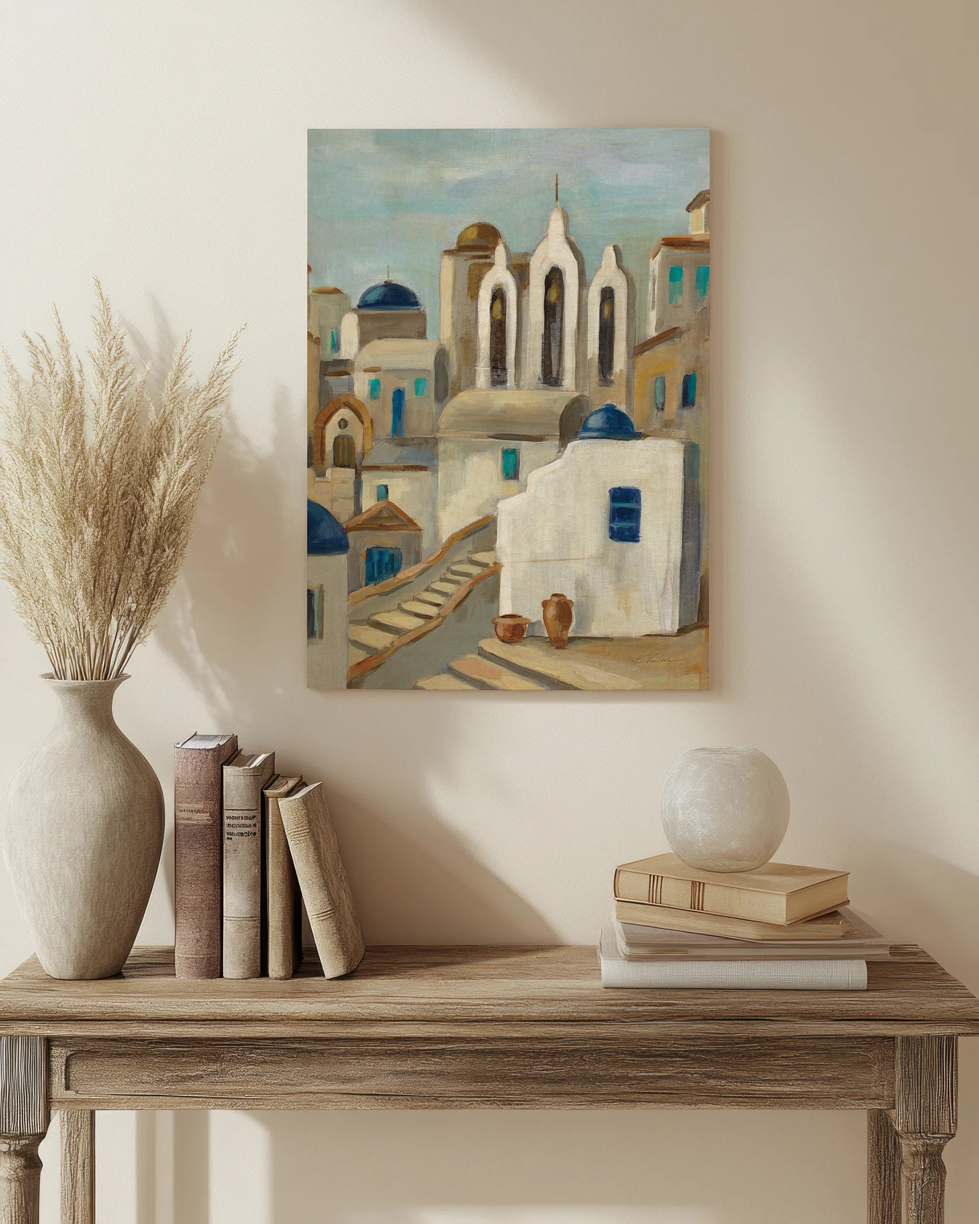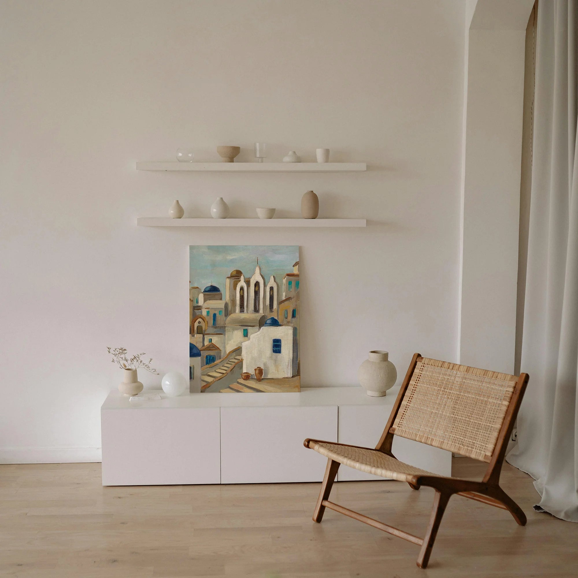 Santorini View III Print by Silvia Vassileva is an abstract art print that adds depth and warmth to contemporary home décor. A versatile statement piece, perfect for living spaces, bedrooms, or creative interiors. Printed on premium 12mm Italian Poplar Plywood – finished & printed in Britain.