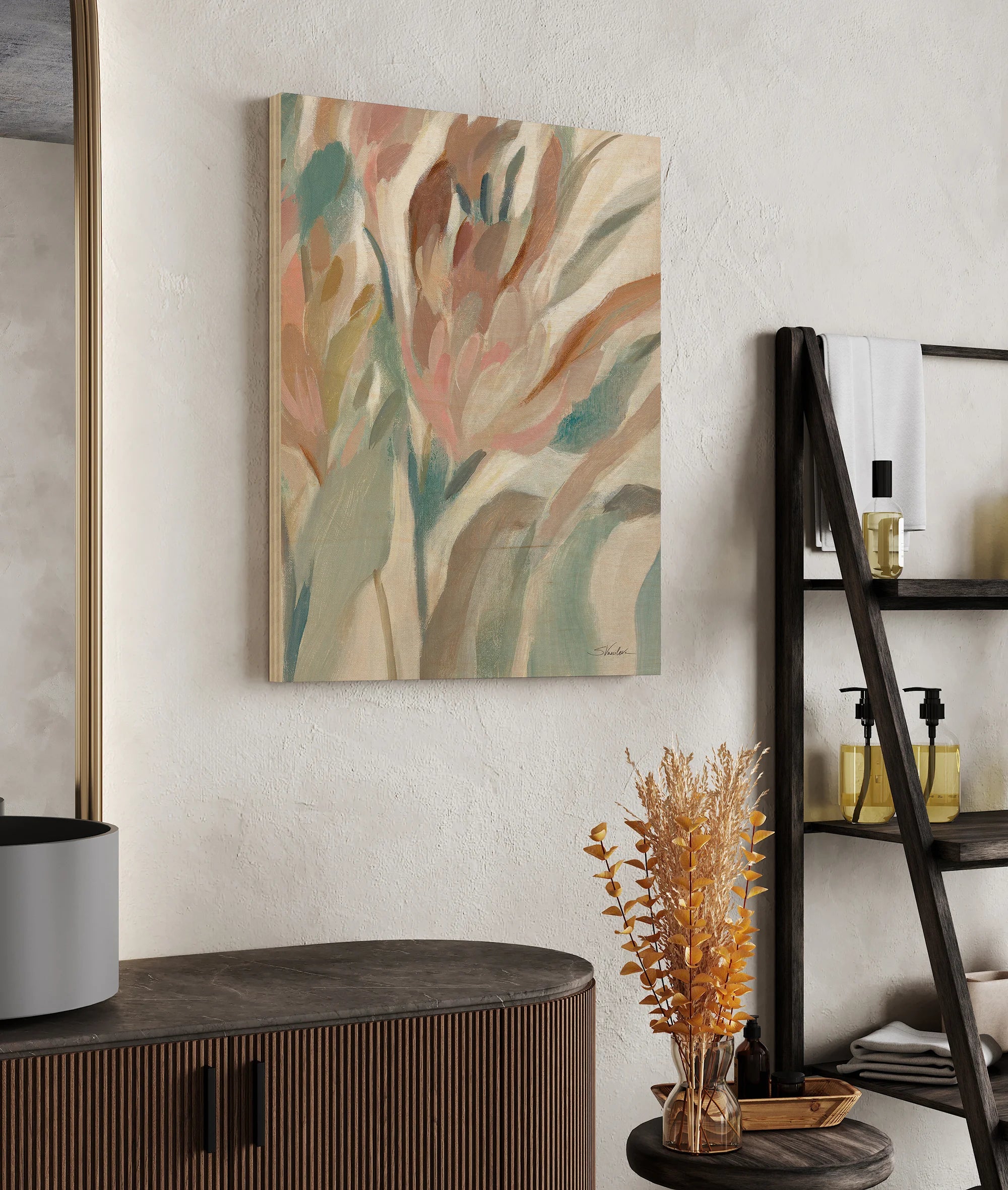 Eden Breeze III Print by Silvia Vassileva is an abstract art print that adds depth and warmth to contemporary home décor. A versatile statement piece, perfect for living spaces, bedrooms, or creative interiors. Printed on premium 12mm Italian Poplar Plywood – finished & printed in Britain.