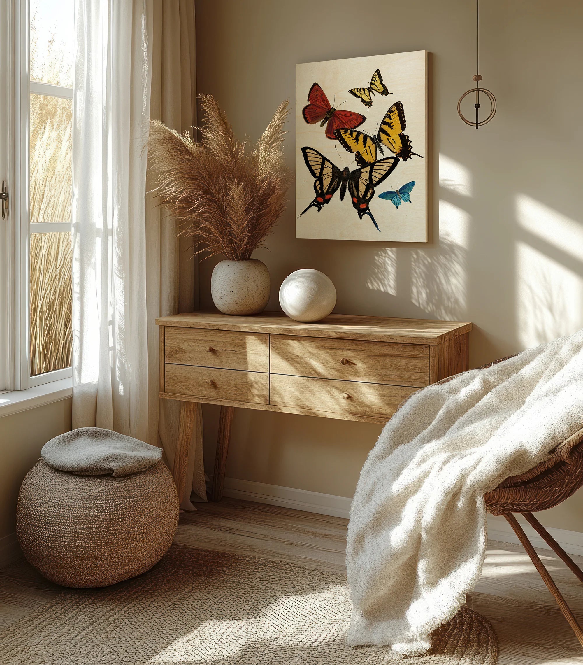 Vintage Butterfly II Print by Wild Apple Portfolio is an abstract art print that adds depth and warmth to contemporary home décor. A versatile statement piece, perfect for living spaces, bedrooms, or creative interiors. Printed on premium 12mm Italian Poplar Plywood – finished & printed in Britain.