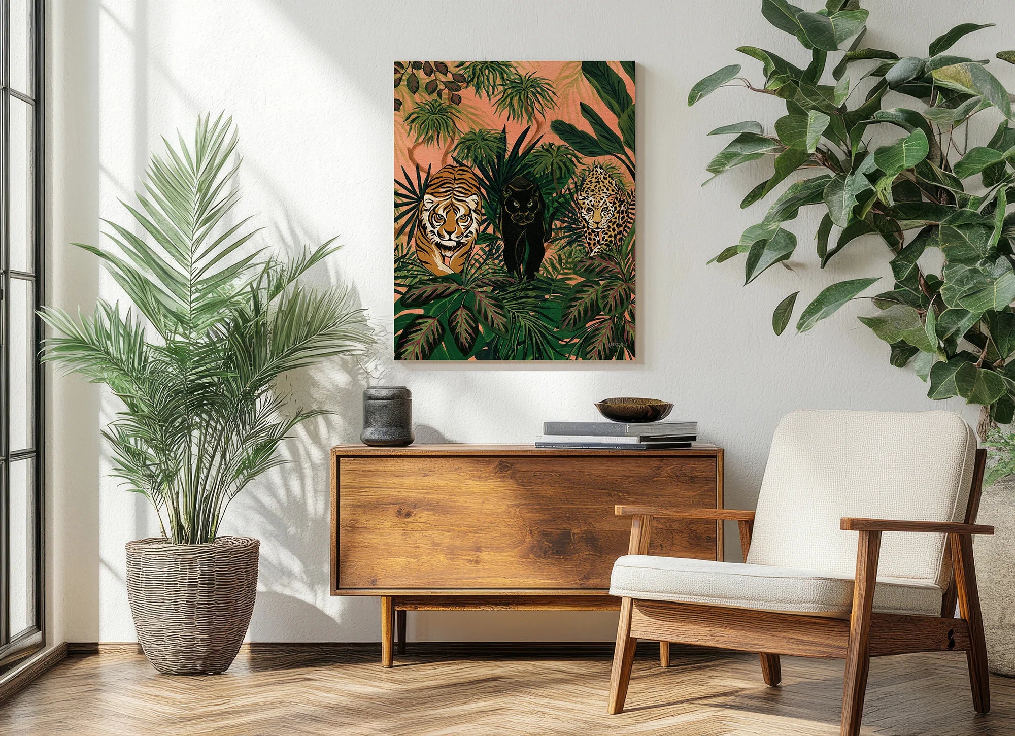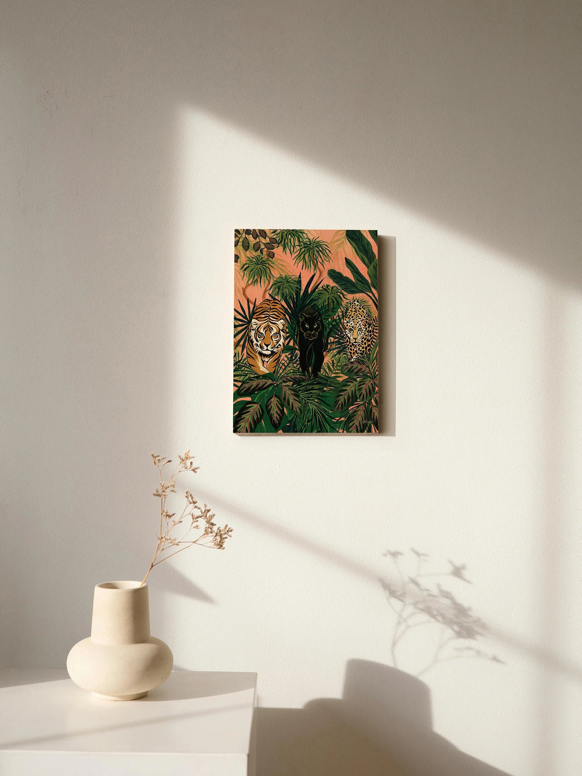 Boho Jungle Prowlers Print by Yvette St. Amant is an abstract art print that adds depth and warmth to contemporary home décor. A versatile statement piece, perfect for living spaces, bedrooms, or creative interiors. Printed on premium 12mm Italian Poplar Plywood – finished & printed in Britain.