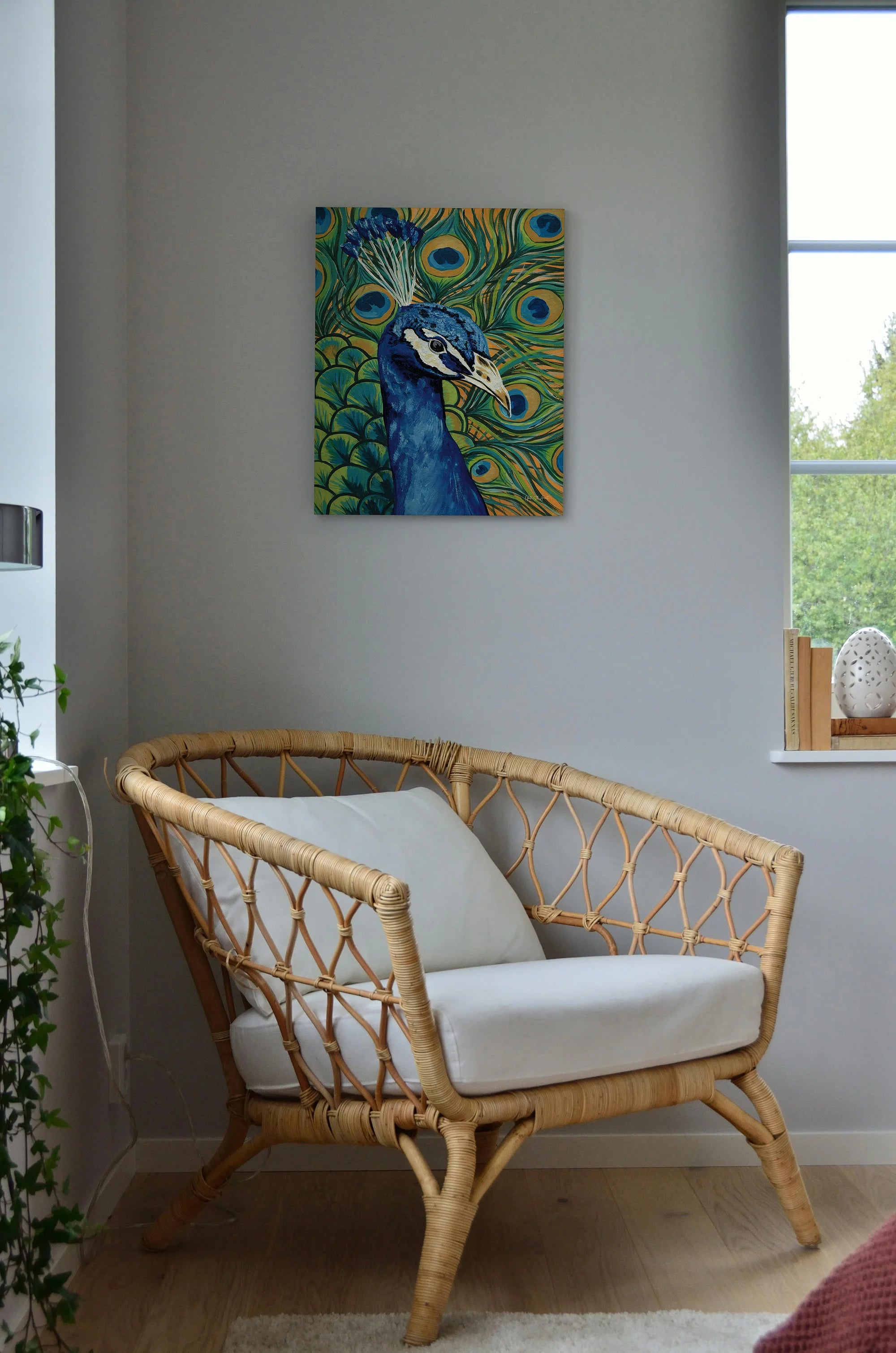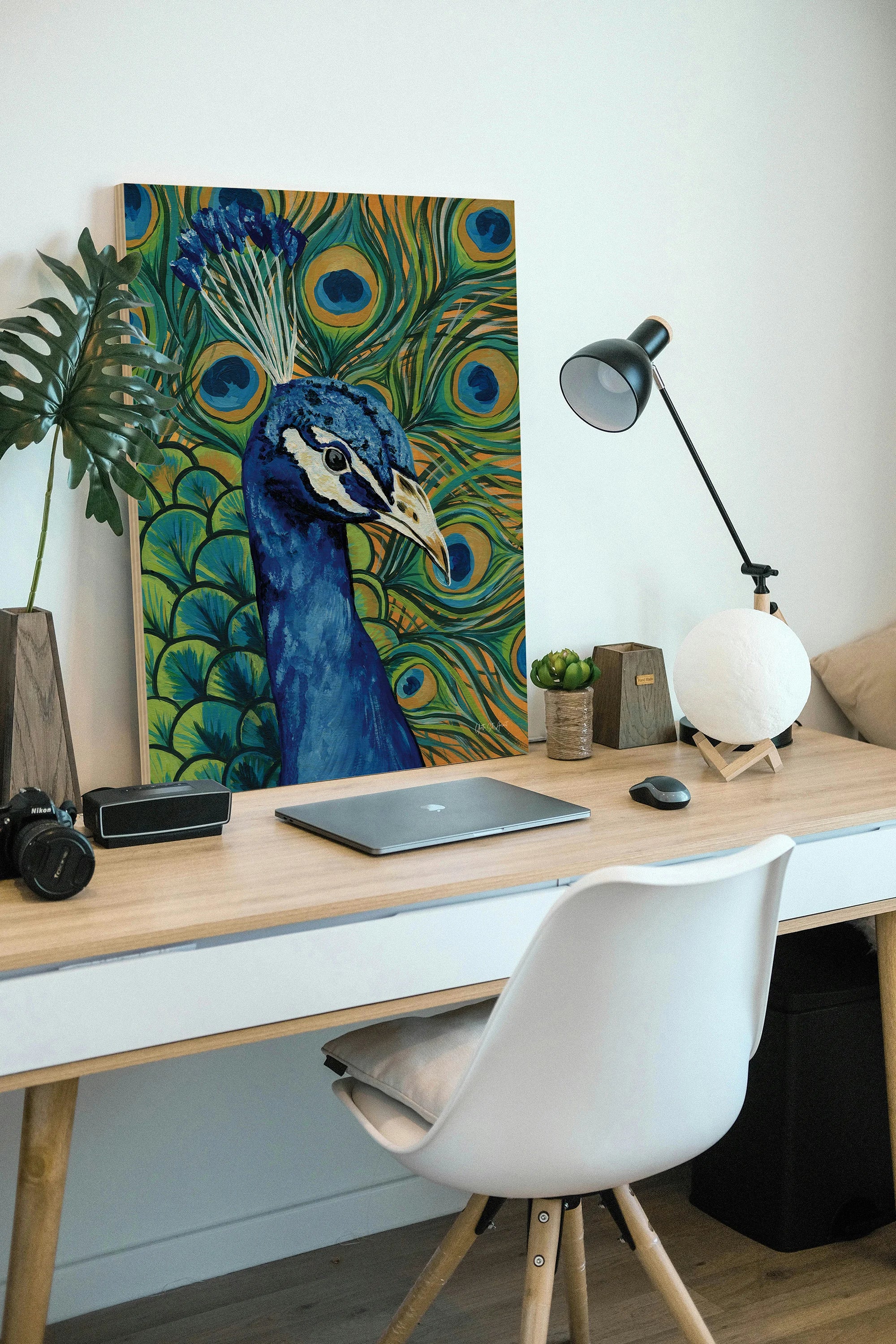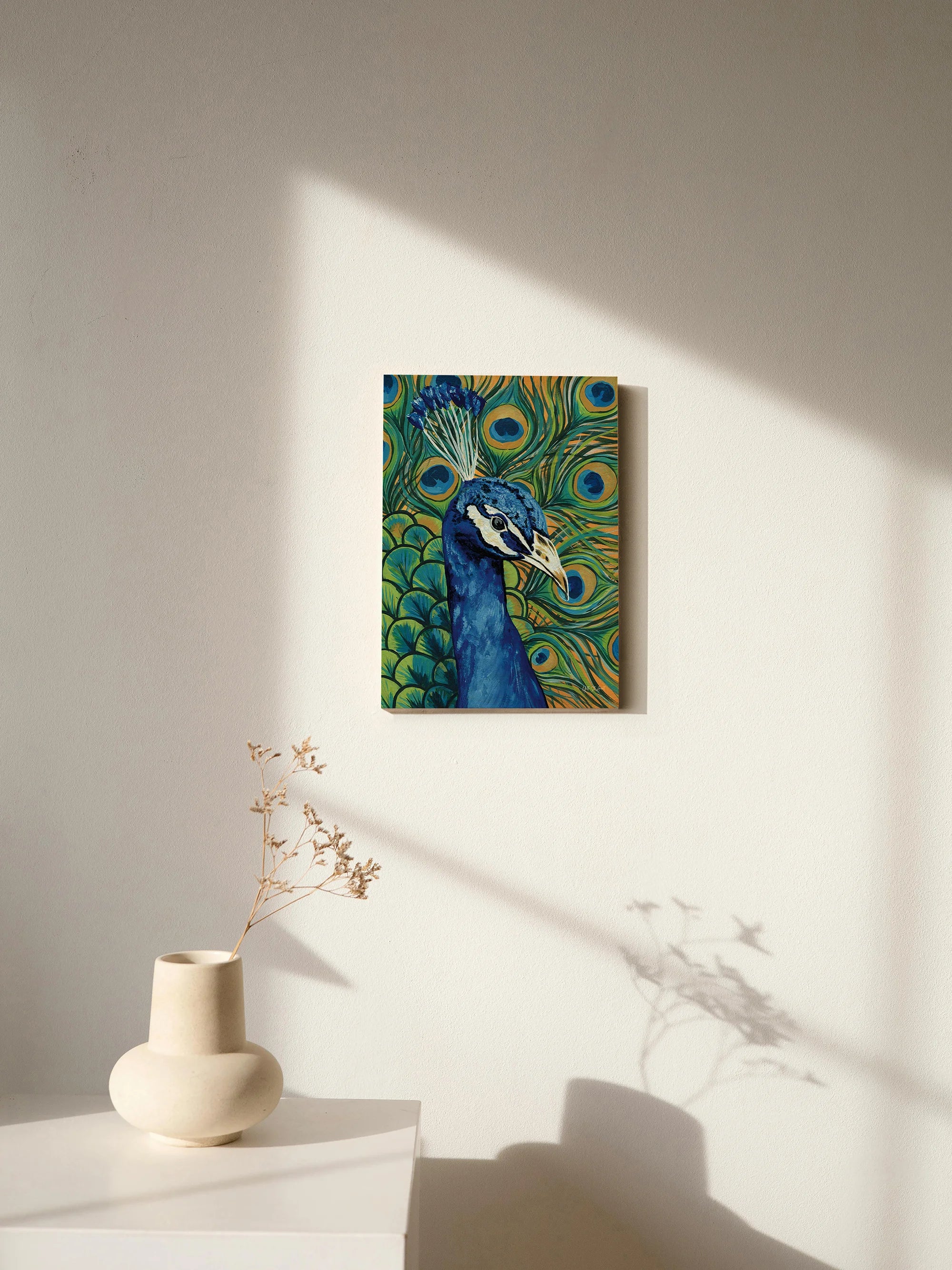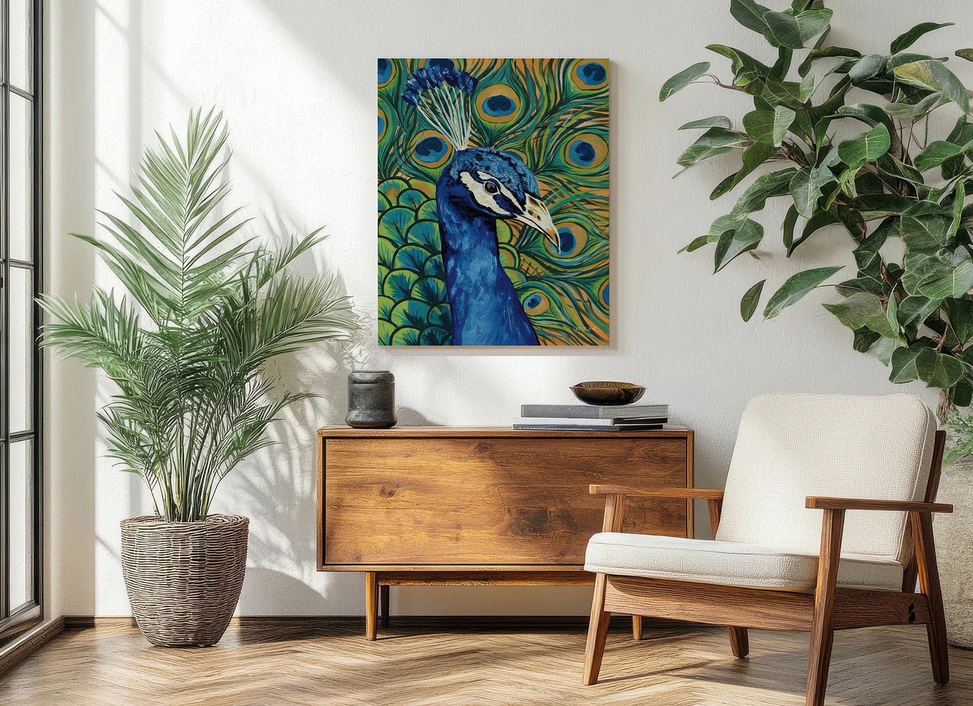 Peacock Profile Print by Yvette St. Amant is an abstract art print that adds depth and warmth to contemporary home décor. A versatile statement piece, perfect for living spaces, bedrooms, or creative interiors. Printed on premium 12mm Italian Poplar Plywood – finished & printed in Britain.