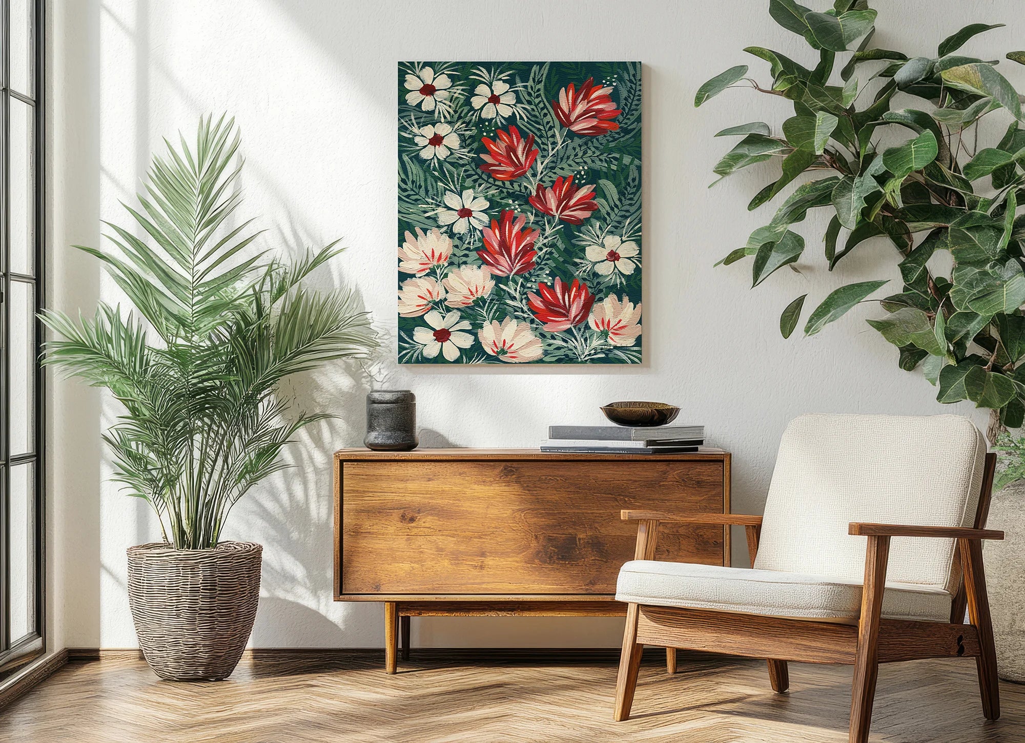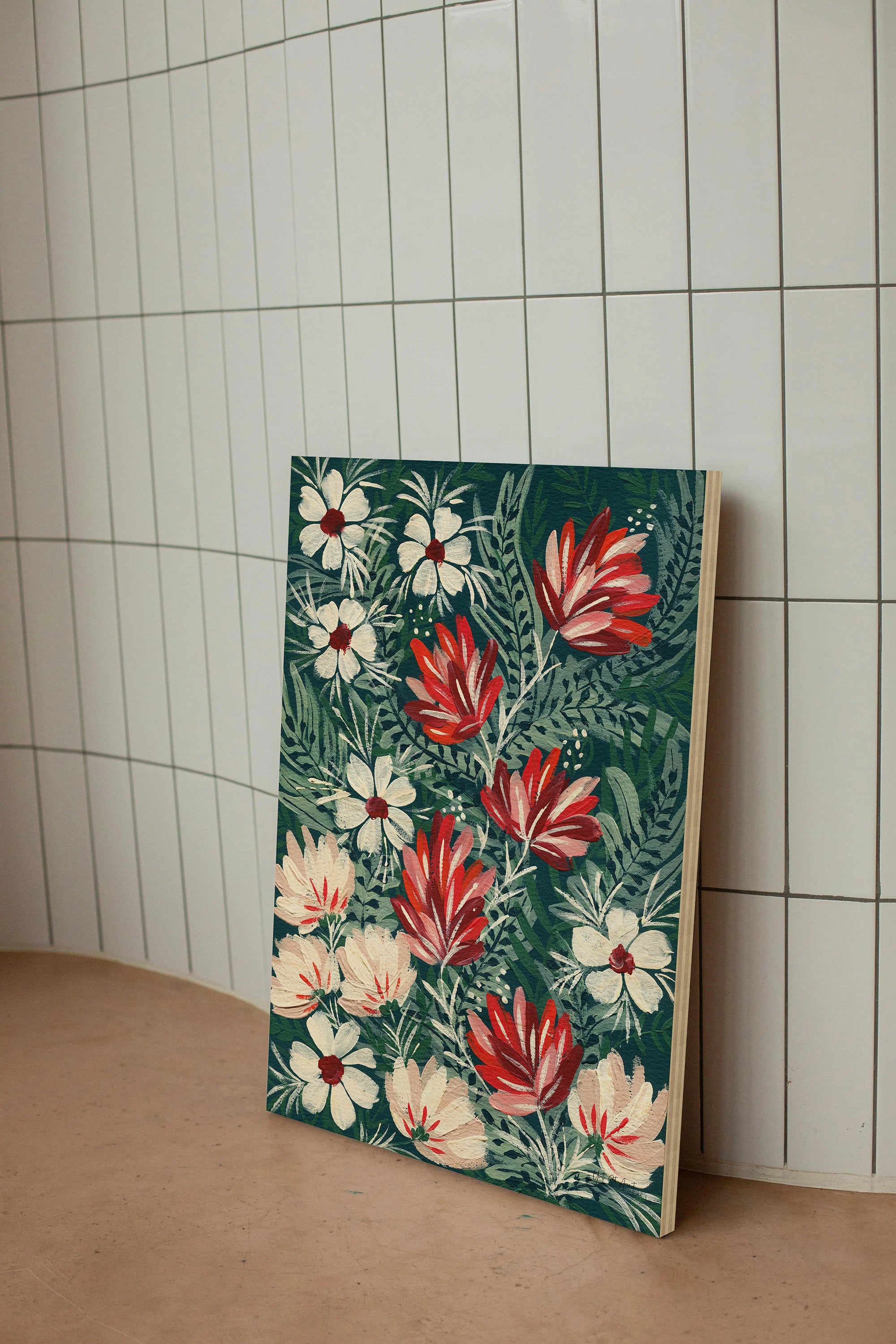 Folksy Floral I Print by Yvette St. Amant is an abstract art print that adds depth and warmth to contemporary home décor. A versatile statement piece, perfect for living spaces, bedrooms, or creative interiors. Printed on premium 12mm Italian Poplar Plywood – finished & printed in Britain.