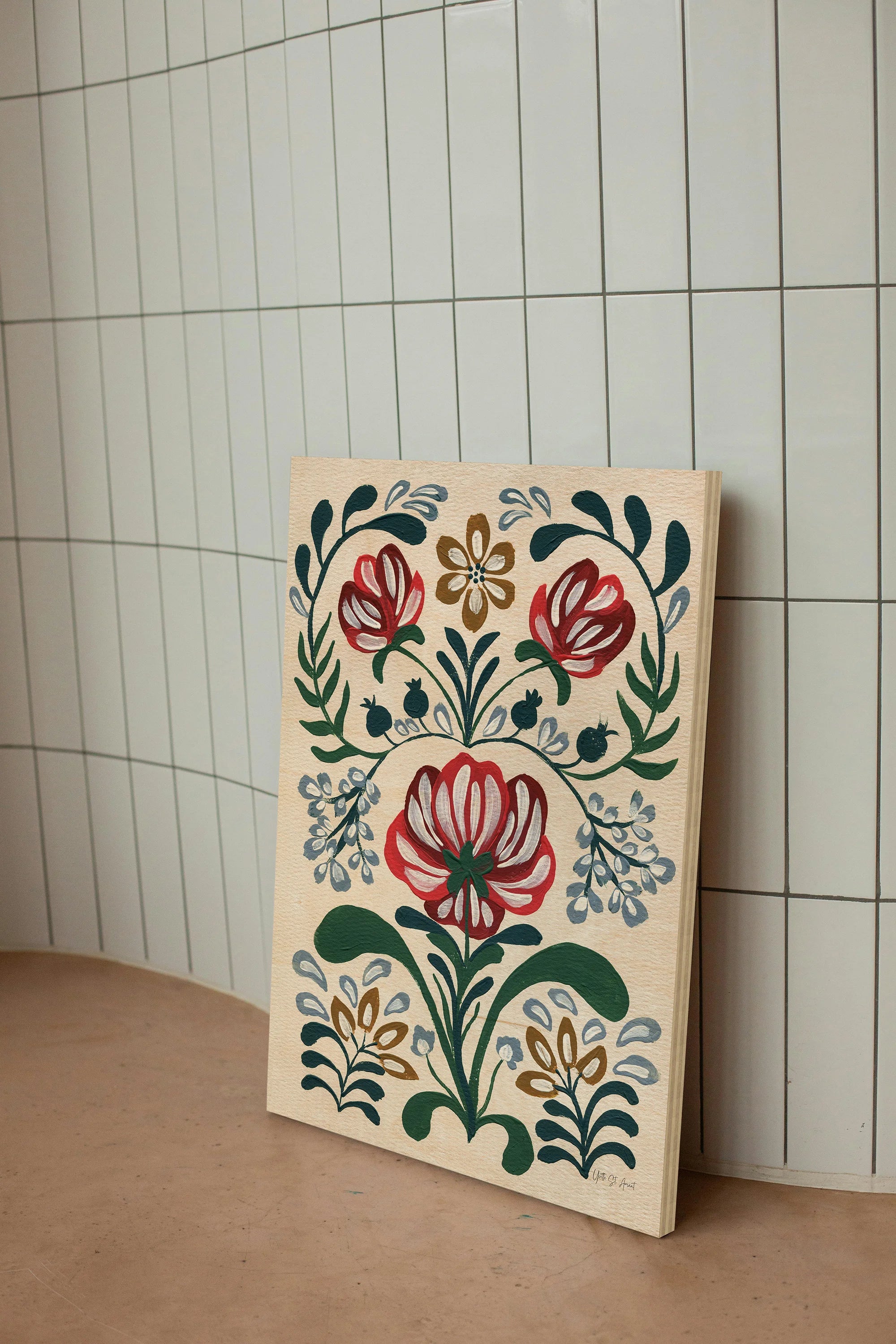 Folksy Floral II Print by Yvette St. Amant is an abstract art print that adds depth and warmth to contemporary home décor. A versatile statement piece, perfect for living spaces, bedrooms, or creative interiors. Printed on premium 12mm Italian Poplar Plywood – finished & printed in Britain.