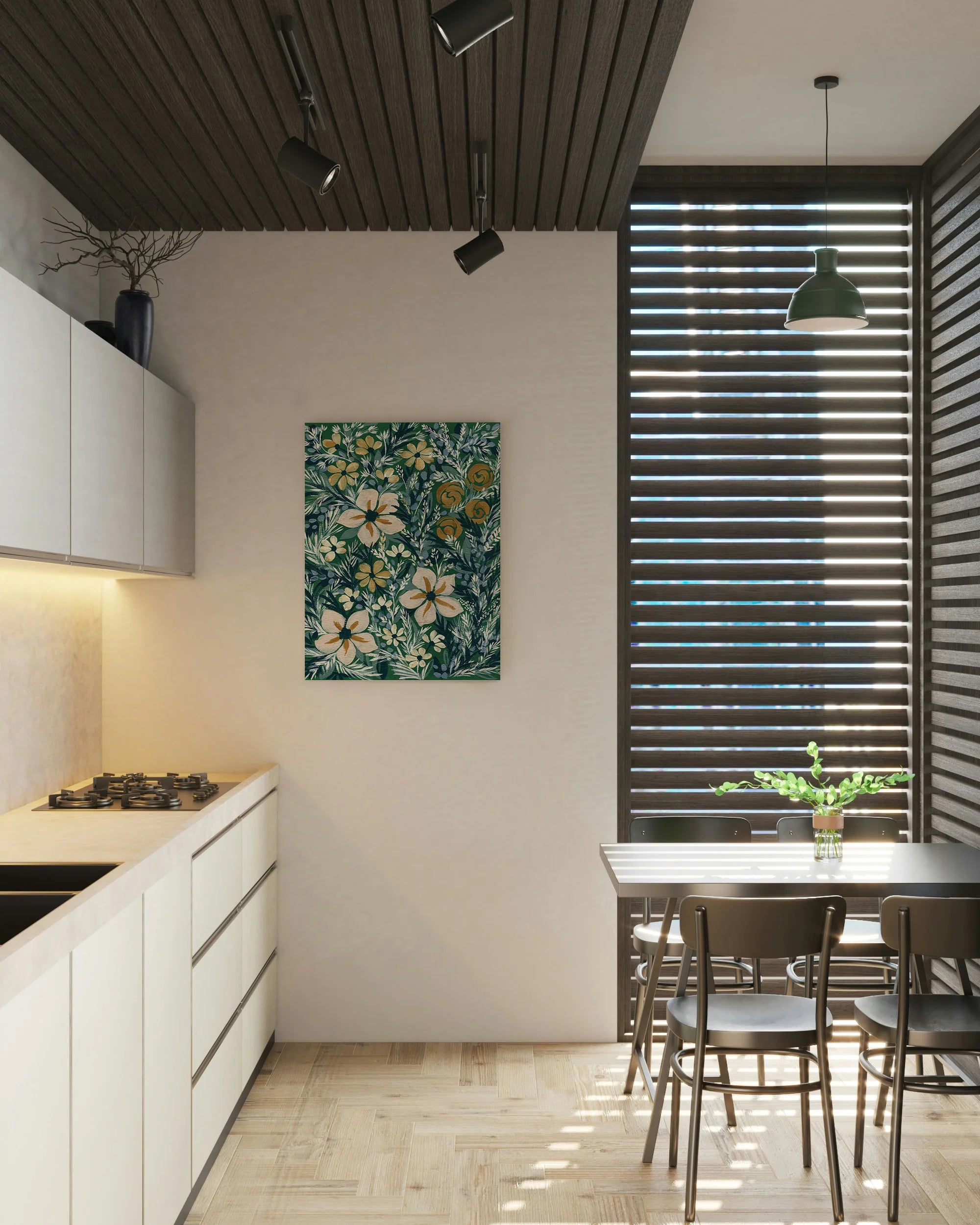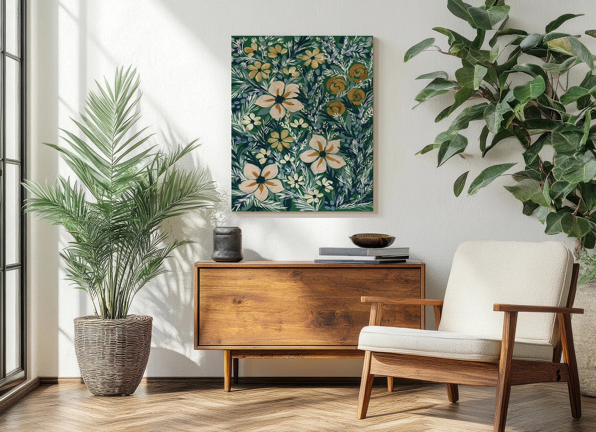 Folksy Floral III Print by Yvette St. Amant is an abstract art print that adds depth and warmth to contemporary home décor. A versatile statement piece, perfect for living spaces, bedrooms, or creative interiors. Printed on premium 12mm Italian Poplar Plywood – finished & printed in Britain.